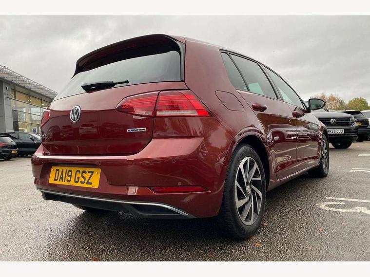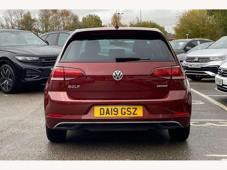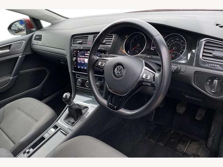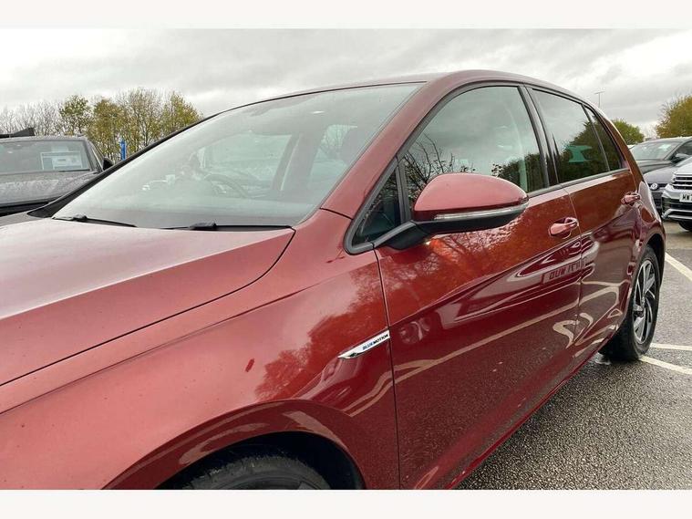 'Lights On' Reminder warning buzzer, ACC - Adaptive cruise control with front assist, forward collision warning, distance monitoring, city emergency brake and speed limiter, Bluetooth telephone and audio connection for compatible devices, Brake pad wear indicator warning light, Driver alert system, Driver profile selection, Driving Mode Selection with four preset modes - Eco, normal, sport or individual modes, Instrument cluster in white, Multifunction computer with visual gear change recommendation for fuel consumption, Power assisted speed sensitive electro-mechanical steering, Push tank flap, Speed limit display, Speedo, rev counter, electronic odometer, trip, service interval display, exterior temperature and fuel gauge, Stop/start system, Warning buzzer and light for front seatbelts unfastened, Battery regeneration during braking, XDS electronic differential lock, Composition media system, DAB Digital radio receiver, Driver Personalisation profile selection, MP3/WMA compatability, Multi device interface (MDI) with USB connection, Personalisation 1.1 profile for media, Premium USB cable in choice of either Apple or Android smartphone compatibility, SD card slot, SMS Functionality, USB and SD card connectivity, Black front air intake and radiator grille with chrome insert, Black rear diffuser, Body colour bumpers, Body colour door handles, Body colour door mirrors with integrated indicators, Dusk sensor + automatic driving lights, Electric front windows, Electric rear windows, Electrically adjustable and heated door mirrors, Fully galvanised body, Heated rear windscreen, Hidden exhaust pipe, High level 3rd brake light incorporating LED Technology, LED daytime running lights, LED front fog lights with static cornering light function, Rear fog lamp, Rear tinted glass 65% light absorbing from B pillar backwards, Rear window aerial, Rear window wash/wipe with intermittent wipe, Reflectors in all doors, Tailgate with integrated rear roof spoiler, Windscreen wipers/ intermittent wipe + 4 position delay, 12V socket in luggage compartment, 3 rear headrests, 4 load lashing points in luggage compartment, 60/40 split folding rear seat backrest, Auto fold down lever in rear seat backrest, Bag hook in luggage compartment x 2, Cooled glovebox, Cupholder cover, Dust/pollen filter, Front and rear reading lights incorporating LED technology, Front centre armrest with storage compartment and two rear air vents, Front seat back storage pockets, Grab handles front x 2, rear x 2 with integrated coat hooks, Height and reach adjustable steering wheel, Illuminated vanity mirrors, Instrument lighting white adjustable panel illumination, Interior light delay, Isofix preparation for 2 rear child seats, Load through provision with rear centre armrest and cupholders x2, Luggage compartment lighting, Overhead storage box, Passenger underseat drawer, Pearl grey headlining, Storage box in luggage compartment, Storage compartment in roof console with cover, Storage compartments in centre console, Storage compartments in front doors, Storage compartments in rear doors, Stowable luggage compartment cover, Sun visors, Variable boot floor, height adjustable and removable, Convenience Pack - Golf, Light and Sight pack - Golf, Mirror pack - Golf, 3 rear three point seatbelts, Airbags - Driver's and front passenger's, curtain airbag, Driver's knee, front side impact and passenger's airbag deactivation switch, Anti-lock Braking System (ABS) with Hydraulic Brake Assist (HBA), Automatic post collision braking system, Child locks on rear doors, Driver/Passenger optimised head restraints, Electronic parking brake with auto hold, Electronic stability control (ESC) including Electronic differential lock (EDL) and ASR (Traction control) with deactivation via infotainment system, Front ventilated disc brakes and rear disc brakes, Pre crash preventive occupant protection, Three point height adjustable front seatbelts with tensioners, Tyre pressure loss indicator, Alarm with interior protection and deactivation via infotainment system, Electronic engine immobiliser, Remote central locking with 2 remote folding keys, Brushed dark silver decorative inserts in dash and door panels, Chrome plated air vent surround, Chrome plated electric mirror adjustment light switch surround, Polar night black centre console, Steel space saver spare wheel,
