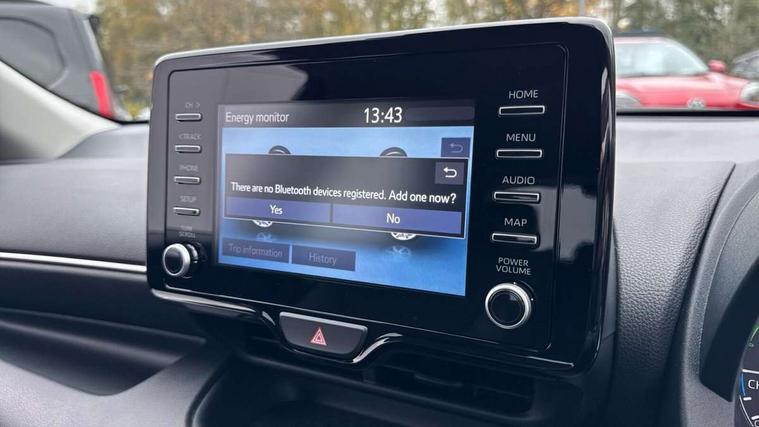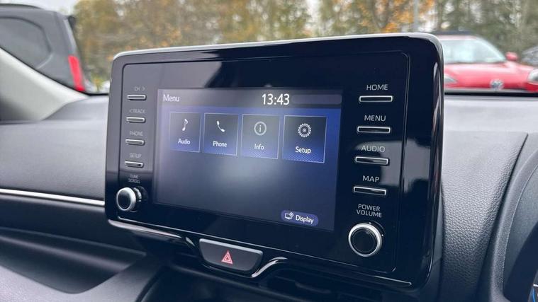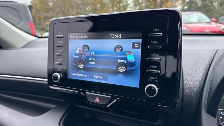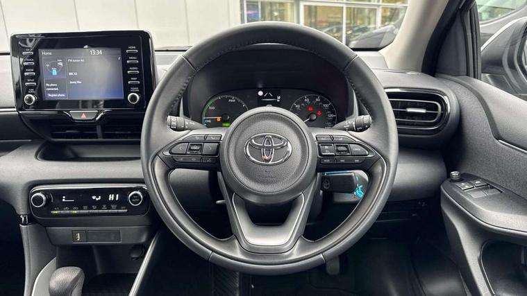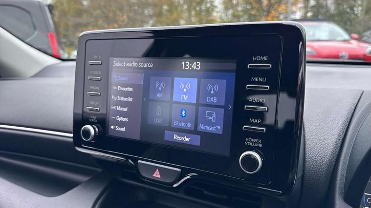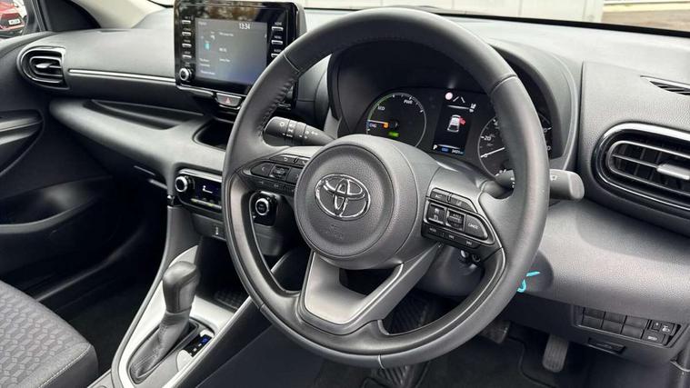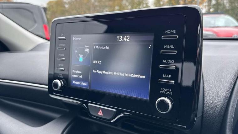 4.2" coloured TFT multi information display with analogue speedometer, Adaptive cruise control, Adjustable speed limit with speed warning, Bluetooth connectivity, E-call, Electric power steering, Hybrid energy display, Multi information display switches on steering wheel, Reversing camera, Smartphone integration with Apple CarPlay and Android auto, Smartphone integration with Apple CarPlay/Android Auto, Tailgate, Voice recognition, Vehicle Stability Control (VSC), 4 speakers, 9" Multimedia touch display, Toyota Touch 3 system with DAB radio, USB connection, Acoustic windscreen glass, Auto windscreen wipers, Automatic headlights, Body coloured door mirrors, Bulb indicators, Chequered front grille, Daytime running lights, Electric adjustable heated door mirrors, Follow me home headlights, Front auto power windows with anti jam protection, Front halogen fog lights, Halogen projector headlights, LED High mounted stop lamp, Manual headlight levelling, Rain sensor, Rear auto power windows with anti jam protection, Rear side wing doors, Rear spoiler, Rear wiper, Shark fin antenna, Turning signal integrated indicators in door mirrors, Variable front intermittent wipers, 3 adjustable rear headrests, 3 seat bench in 2nd row, 3 spoke leather steering wheel, 60/40 split folding rear seat, Active headrests, Adjustable boot height, Auto air conditioning, Coat hooks in rear grab handles, Cup holders (2 front & door), Data Communication Module (DCM) connected services, Fabric upholstery, Front armrest, Glovebox, Grey roof lining, Height adjustable driver's seat, Isofix seat fixing, Leather gearshift, Pollen filter, Shopping bag hooks, Single front passenger seat, Tilt/telescopic steering column, 3 point seatbelts on all rear seats, ABS+EBD+Brake assist, Electronic parking brake, Emergency brake light system (EBS), Front passenger airbag on/off switch, Front seatbelt reminder, Hill start assist control (HAC), Rear child proof door locks, Rear seat belt reminder, Supplemental Restraint System (SRS) 8 airbags: Driver & passenger's airbags, dual side curtain airbags, side impact airbags, front centre airbag, Toyota Safety Sense 3 with over the air updates, Tyre pressure warning system, 2x Master key, Alarm/immobiliser, Remote powered central double locking doors, Soft touch instrument panel, Space saver spare wheel,