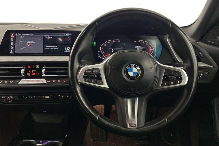Active guard plus, Attentiveness assist, Auto start-stop, BMW Intelligent Personal Assistant, BMW Live Cockpit Professional with 10.25" high resolution instrument and control display, BMW Online services, BMW operating system with 7.0 mid interface, BMW Teleservices, Check Control warning system for monitoring of lights and door/luggage compartment open warning, Cruise control with braking function, iDrive controller with 7 short cut favourite buttons on centre console, Integrated navigation data with map data via USB +features such as 3D landmarks and micro city models, Integrated owners handbook, Intelligent voice assistant, Lane departure warning system, M Sports steering, On board computer - average speed+fuel consumption, service interval, clock/date, odometer/trip meter, outside temperature display and ice warning, Optimum shift indicator, Personal Profile, Pull away assistant, Speed limiting function, Aluminium lightweight construction, Balancer shaft, Double VANOS, Drive performance control with ECO PRO comfort + sport mode, Dual clutch automatic transmission, Electronic differential lock, High precision injection, M Sport suspension with stiffer spring/damper set-up and vehicle lowered by 10mm + twin tube gasfilled shock absorbers and Anti roll bars, Performance Control, Petrol Particulate Filter, VALVETRONIC engine management, 2x USB Type C ports (for charging and data transfer), 4G LTE Connectivity with hard wied 4G network sim card, DAB digital radio, MP3 players and RDS double tuner, Auto wipers, Automatic headlight beam throw control, Automatically dimming rear view mirror, Body colour door handles, Body colour mirror caps, Chrome 'M' logo side designation, Chrome exhaust single tailpipe, round, Direction indicator side lights integrated exterior mirrors, Electric windows - front and rear, with open/close fingertip control and trap release, Exterior mirrors - electrically folding with anti-dazzle, Fading support, Follow me home headlights, Front and rear bumper system with replaceable deformation elements, Front door sill finishers in black plastic with M designation in metallic look, Heated, electrically adjustable exterior mirror aspheric on driver side, convex on passenger side, High gloss black B pillar finish, High gloss shadow line exterior trim, High level third brake light, LED daytime running lights, LED front fog lights, LED Headlights, Lightweight engineering, Model designation on right side of tailgate, Preparation for high beam assistant, Rain sensor with automatic headlight activation, Rear boot, Rear fog lights, Rear side wing doors, Reversing light in rear light cluster, Welcome lighting, 12V power socket in centre console, 2 cupholders in front centre console, 3 rear seat head restraints, 3 rear seats, 3 spoke M sports design leather steering wheel finished in nappa leather with specific M badge, Anthracite finished floor mats with contrasting surround, Anthracite headlining, Automatic two zone climate control air conditioning, Child seat ISOFIX attachment for two outer rear seats and front passenger seat with anchorage points, Conditioned based service, Driver and front passenger seat heating, Front and rear door pockets including bottle trays, Front and rear side armrests integrated into door trim, Front armrest foldable with integrated storage compartment, Front centre interior light over interior mirror and rear centre automatic interior light when door is opened/ignition switched off or via remote key, Front head restraints, Front passenger seat, Front sports seats with electric side bolster adjustment, Glove compartment, Glovebox with light, Luggage compartment lighting, Manually adjustment steering wheel column, Multi-function controls for steering wheel, Sun visors with vanity mirrors and insert tab, Through loading system with 40/20/40 split folding rear seat, Two lashing eyes, Additional interior lighting pack - 2 Series Gran Coupe, Extended storage pack - 2 Series Gran Coupe, M Sport exterior styling aerodynamics pack - 2 Series Gran Coupe, 2 tone horn, Airbag - Front driver and passenger, front and rear head, front side, curtain head protection, manual deactivation of front passenger airbag possible, Anti lock braking system (ABS) with cornering brake control, BMW emergency call, Brake drying, Braking readiness, City braking function, Crash sensor activating of airbags, Unlocking doors, hazard warning lights, interior light, safety battery terminal, Dynamic stability control + (DSC+), Dynamic Traction Control - DTC, Electrically operated hand brake, Rear brake discs, Rear child proof door locks, Seat belt security check for driver and front passenger, Seatbelt warning, Side impact protection, Three point seat belts on all seats including front belt stopper, pyrotechnic belt tensioners and belt force limiters, Trailer stability control, Tyre pressure monitoring system, Ventilated front disc brakes, Warning triangle and first aid kit, Central locking switch for all doors, fuel filler cap and luggage compartment, Deadlocking function system to all doors, Drive away locking system on all doors and luggage compartment, Locking wheel bolts, Start/Stop button (illuminated) in centre console with keyless engine start and Auto Start-Stop deactivation button, Thatcham Cat.1 alarm and immobiliser, Two remote control key with integrated key - open/close doors/fuel flap/tailgate +1 button for unlock compartment with M design high gloss black inlay, Contrast stitching on instrument panel, 18" Burnished M double spoke bi-colour alloy wheels finished in orbit grey - style 819M, Reduced rolling resistance tyres,
