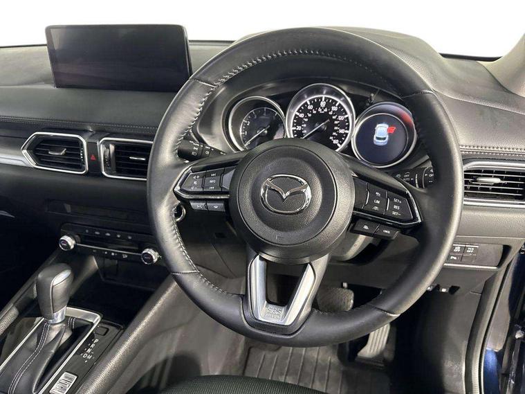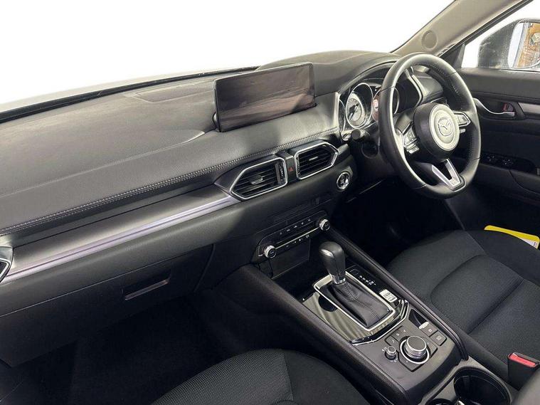 10.25" display with Mazda Connect infotainment, Advanced blind spot monitoring, Bluetooth connectivity with voice control, Collision prevention assist, Connected services, Cruising Traffic Support, Drive mode selector, Electric power steering, Emergency stop signalling system, Engine start/stop button, Forward collision warning, Front and rear parking sensors, High meter TFT display, Integrated navigation system, Intelligent speed assist, Lane departure warning system, Lane keep assist, Radar cruise control with Stop and Go, Rear cross traffic alert, Service indicator, Trip computer, Wireless apple car play/android Auto, Cylinder Deactivation, i-stop, 6 speakers, AM/FM radio, Bluetooth audio streaming, DAB Digital radio, Multimedia Commander including separate volume dial, Steering wheel mounted audio controls, Adaptive front lighting system, Auto dimming rear view mirror, Automatic headlights, Body colour door mirrors, Body colour roof spoiler, Body coloured front and rear black lower bumper mouldings, Cloth with gunmetal inlay door trim panel, Coming/leaving home lighting function, Door mirror integrated indicators, Dual chrome tailpipes, Electric front/rear windows with one touch auto up/down, Front grille in gloss black finish with chrome signature wing, Gunmetal inlay dashboard panel, High beam assist, Intermittent rear wash/wipe, LED auto levelling, LED daytime running lights, LED front fog lights, LED Headlights, LED third brake light, Power folding and heated door mirrors, Privacy glass (rear side windows only), Rain sensing front wipers, Rear side wing doors, Satin black B and C pillars, Satin black side mouldings, Scuff plates, Shark fin antenna, Signature LED rear combination lights, Variable intermittent front wash/wipe, 12v electrical power outlet, 3 seat bench in 2nd row, 40:20:40 Karakuri fold-flat seat system, Cargo room flat floor board with waterproof undertray, Driver seat lumbar adjustment, Driver seat manual slide, recline and height adjust, Driver, Front passenger and two rear grab handles with coat hooks, Driver/passenger front seatback pockets, Driver/passenger sunvisors + illuminated vanity mirrors (drivers with ticket holder), Dual zone climate control, Folding centre armrest with 2 cup holders, Front and rear door pockets, Front centre storage with two cupholders, Front passenger seat manual slide, recline and height adjust, Height adjustable passenger seat, Humidity sensor, Illuminated glovebox, Interior dome light with integral spotlight, ISOFIX child seat anchorage points attached on outer rear seats, Karakuri tonneau cover, Leather wrapped steering wheel and gear knob, Light roof lining, Luggage compartment LED lighting, Luggage compartment power outlet, Premium cloth upholstery, Rear air vents, Rear headrests, Rear seat recline, Roof mounted sunglasses holder, Single front passenger seat, Three height adjustable head restraints, Tilt/height adjustable steering wheel, USB Connectivity (2x front Type-C, 2x rear Type-B), White interior LED illumination lighting, 3 point front seatbelts with pre-tensioners, 3 rear 3 point seatbelts, ABS, Advanced Smart City Brake Support - SCBS, Child locks on rear doors, Driver and front passenger side airbags, DSTC-Dynamic Stability and Traction Control, Dual front airbags, Electronic brake force distribution, Electronic parking brake with auto hold, ESP, Front and rear curtain airbags, Front passenger airbag deactivation, G-Vectoring control, Hill hold assist, Seatbelt reminder front and rear, Single stage passenger airbags, Smart brake support with forward obstruction warning, Tyre pressure monitoring system, Automatic door locking when moving off, Deadlock, Immobiliser, Power door locks, Remote central locking, Thatcham Cat.1 alarm, 17" Silver alloy wheels, Tyre repair kit,
