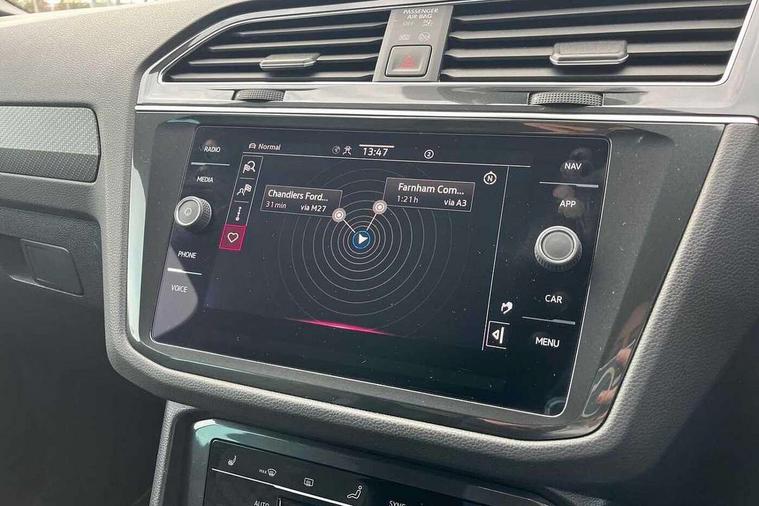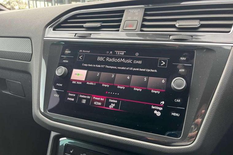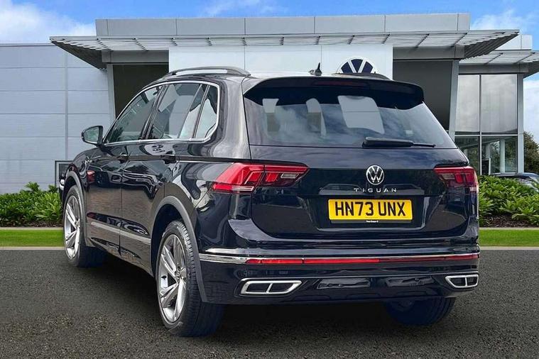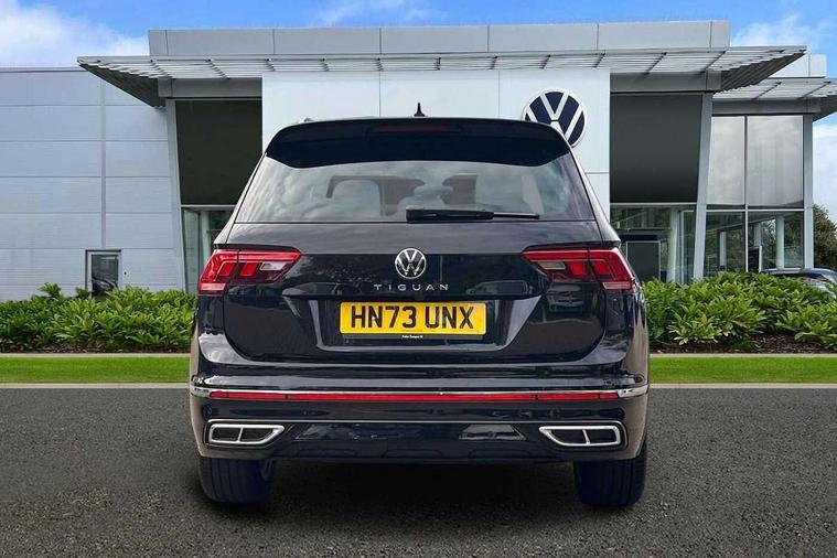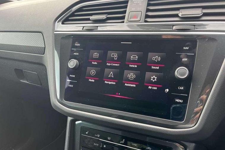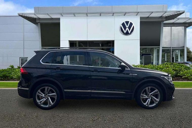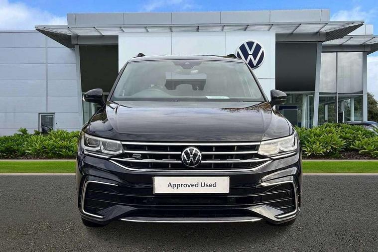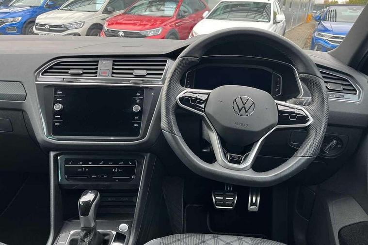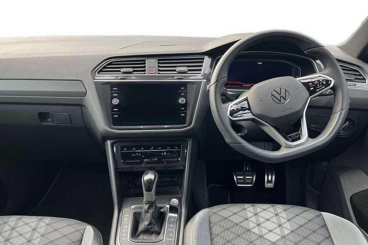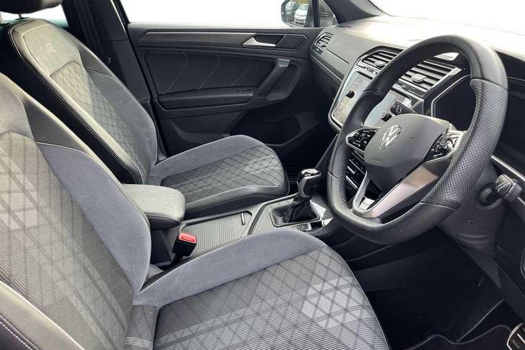 Adaptive cruise control ACC stop and go including speed limiter, App-Connect incl. App-Connect Wireless for Apple CarPlay and Android Auto, Bluetooth phone integration system, Comfort drive travel assist, Digital cockpit pro, Driver alert system, Driver profile selection, Dynamic road sign display, eCall emergency call system, Electromechanical speed sensitive power steering, Emergency assist, Front and rear parking distance sensors, Instrument cluster mph speedometer Great Britain, Lane keeping system Lane Assist, Lights on warning, Multifunction front facing camera, Outside temperature display, Premium multifunction display with multi colour display, Rev counter, Service interval indicator, Speed limit display, Start/stop system with regenerative braking, Trip computer, Warning sound and light for doors and tailgate open, Battery regeneration during braking, Digital radio reception DAB+, Diversity antenna for FM reception, Radio, Auto dimming interior rear view mirror, Automatic headlight control system, Body colored bumpers in R-Line style, Body colored exterior mirror housings, Body colour door handles, Chrome moldings on the side windows, Coming/leaving home lighting function, Dynamic headlight range control, Front and rear electric windows, Heated rear window, High level 3rd brake light, Laminated safety glass windshield, heat and sound insulating, LED rear combination lamps, LED rear number plate lights, License plate carrier in front and rear, Poor weather light and cornering light, Privacy glass for rear side windows and rear window, R Line body kit, R Line side sills, Rain sensor, Rear exhaust tailpipe, Rear fog lamp, Rear side wing doors, Rear spoiler in R style, Rear windscreen washer and wiper with interval delay, Side and rear windows in heat insulating glass, Trailer Stability Programme, Unique R Line badging, Windscreen wipers/ intermittent wipe + 4 position delay, 12V outlet in center console rear and in luggage compartment, 12V outlet in front and tray, 2 LED front reading lights, 2 LED rear reading lights, 3 bench rear seats in 2nd row, 3 rear headrests, Air Care Climatronic 3 zone automatic climate control with enhanced air filter and controls in the rear, Backrest release for left front seat, Black headlining, Brushed stainless steel pedals and footrest, Carpet mats in front and rear with decorative stitching in Gray, Climate control unit rear with touch function, Door and side trim panel in foam film, insert in leatherette, Front footwell illumination, Front scuff plates in aluminum with R-Line logo, Front seats head restraints (x-adjustment), Height/reach adjust steering wheel, Isofix Preparation 2 Rear child seats, Leather gear knob, Rear bench seat asymetrically split folding, longitudinally movable and folding with load-through hatch and center armrest, Remote unlocking for rear seat backrest, Single front passenger seat, Sun visors with illuminated vanity mirrors, Tool kit, Driver assistance pack plus - Tiguan DSG, 3 point seat belt for centre rear seats, 3 point seat belts with seat belt pretensioners for the outer rear seats, Curtain airbags for front and rear passengers, Driver/Front Passenger airbags, Drivers knee airbag, Electronic parking brake with auto hold, Electronic Stability Control with driver steering recommendation, ABS, ASR, EDL, EDTC and trailer stabilization, Front assist with autonomous emergency braking (for Adaptive Cruise Control ACC up to 130 mph), Front disc brakes, Front passenger airbag deactivation, Front side airbags, Height adjustable front 3 point seatbelts + pretensioners, Manual child proof rear door locks, Pedestrian monitoring system, Proactive passenger protection system in combination with front assist, Rear disc brakes, Two tone horn, Warning sound and light for front seat belts if unfastened, Warning triangle, Anti theft alarm system with interior monitoring, backup horn and towing protection, Anti theft wheel bolts, Electronic engine immobiliser, Chrome elements on the mirror switch power window switches and door pulls, Decorative inserts Carbon Gray for dashboard and front door trim panels, Interior door handle in matte chrome,