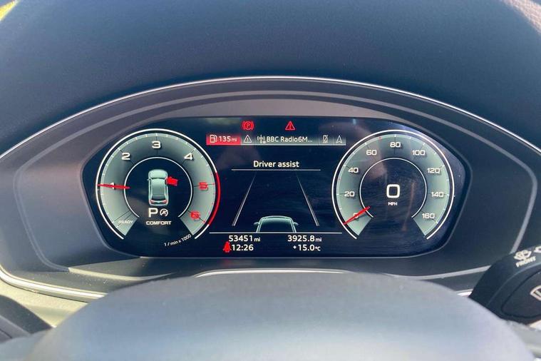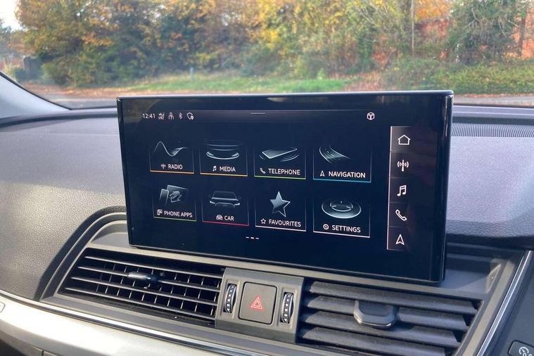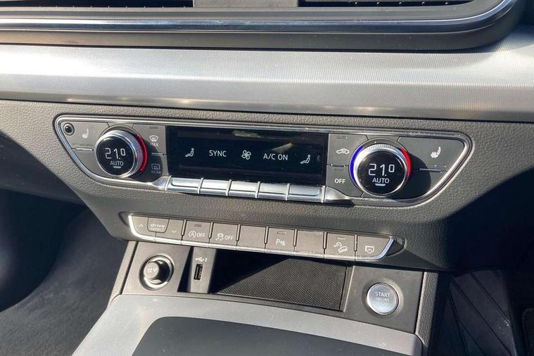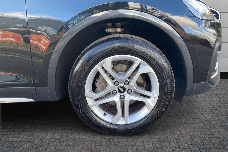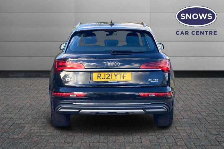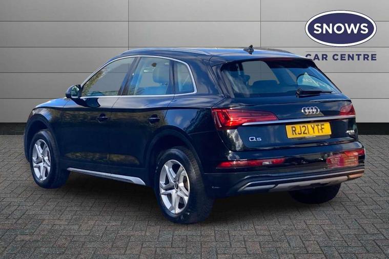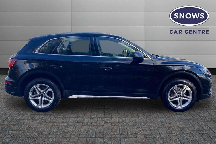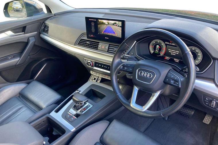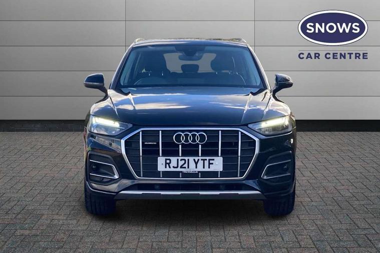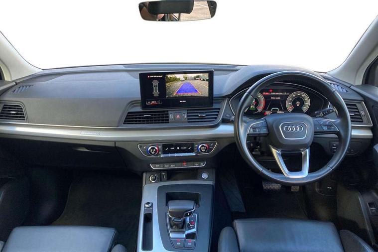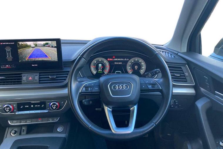 Audi connect safety and service (e-call), Audi connect with Amazon Alexa Integration, Audi drive select, Audi virtual cockpit plus with 12.3" screen and three different layout designs, Audi wireless smartphone interface, Automatic start-stop system with coasting functionality and efficiency programme, Bluetooth interface, Cruise control + speed limiter, Electro - mechanical power assisted steering, MMI navigation plus with 10.1" touch screen, Power tailgate, Reversing camera, Service interval indicator, Voice control system with Audi hotword activation "Hey Audi", Diesel particulate filter, Dynamic suspension, Quattro on demand, DAB Digital radio, Acoustic windscreen, Air inlets in matt titanium black with blades in matt aluminium silver, Aluminium roof rails, Auto dimming rear view mirror, Automatic headlights and windscreen wipers, Body colour bumpers, Body colour door mirrors, Chrome plated exhaust trims, Door sills in Selenite silver, Electric adjustable/heated/folding door mirrors, Front and rear electric windows, LED headlights and LED tail lights, Lower bumpers painted in contrast Manhattan grey, Matt selenite silver underbody protection, Matt twilight grey radiator grille with chrome vertical struts, Rear chrome trim strip below lights, Rear diffuser strip in selenite silver, Rear spoiler, Rear wiper, Roof bars, 2 x USB charging port with aux input socket, 3 rear headrests, 3 spoke multifunction leather steering wheel with shift paddles, 40:20:40 split folding rear seat with rear centre armrest, Comfort front centre armrest, Deluxe 3 zone electronic climate control, Door sills trims with aluminium inlays, Front/rear floor mats, Heated front seats, Height adjustable front head restraints, Height/reach adjustable steering column, ISOFIX child seat mounting and top tether, Luggage compartment cover, Manual seat adjustment with 4-way electric lumbar support, Removable luggage compartment floor, Silver cloth headlining, Sunvisors with vanity mirrors, Twin leather upholstery + front sports seats, High gloss pack - Q5, LED interior light pack - Q5, 3 point seatbelts on all seats, 6 airbags - Driver, front passenger, curtain and side airbags, Electrically operated child locks on rear doors, Electromechanical parking brake, Electronic stabilisation control including ABS, ASR and EDL, Front passenger airbag deactivation, Hill descent control, Hill hold assist, Multi collision brake assist, Pop-up bonnet for pedestrian protection, Pre sense city, Seat belt force limiter, Seatbelt monitoring, Tyre pressure warning, Warning triangle and first aid kit, Anti theft alarm, Anti-theft wheel bolts, Keyless Go access/ignition system, Aluminium rhombus inlay,
