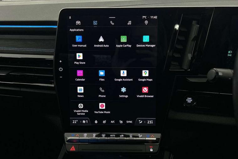 12" openR multimedia screen, 12.3" driver information display cluster, 9.3" head-up display, Apple car play and Android auto, Autonomous driving level 2: adaptive cruise control with speed limiter, lane centering and hands-off detection, Blind spot warning, Bluetooth, Configurable dashboard display, Digital owner's manual, Driver attention alert system, E-call, Eco mode, Electric power boot opening, Emergency lane keep assist including overtaking and oncoming traffic, Engine start button, Exterior temperature display, Front cross traffic camera, Front, rear and side parking sensors, Gear selection indicator, Google built-in: maps, assistant and playstore, Internet access, Lane change warning, Lane departure warning, Multisense driving modes (eco, comfort, sport and normal), OEM internet services, On board diagnostics, PAS, Pedestrian alert, Real time traffic information, Rear cross traffic alert, Rear cross traffic camera, Rear view camera, Service interval indicator, Start/stop system, Tailgate, Traffic and speed sign recognition with overspeed prevention, Travel data recorder, Trip computer, Voice control for audio, climate, telephone, navigation, Wi-Fi hotspot, 2 front and 2 rear USB-C ports, Arkamys audio system with 8 speakers, DAB radio, Steering wheel audio controls, Auto dimming door mirrors, Auto dimming rear view mirror, Automatic high / low beam, Body coloured bumpers, Cornering headlights, Door mirror LED indicator lights, Door sill protector, Electric adjustable door mirrors, Electric folding and heated door mirrors, Electric one-touch power front and rear windows, esprit Alpine detailing, Flush roof bars, Frameless rear view mirror with rain and light sensor, Front fog lights, Front wiper de-icer, Heated rear window, LED 3rd brake light, LED adaptive vision, LED daytime running lights, LED rear lights with moirage effect, Matrix LED vision headlights, Privacy glass, Rear side wing doors, Shark fin antenna, Tinted rear windows, Trailer Stability Programme, Underbody protection, Variable intermittent front wash/wipe, Variable intermittent rear wash/wipe, 12v power outlet in cargo area, 12V power outlets front and rear, 3 folding rear headrests, Air purifier, Cabin air filter, Cigarette lighter, Cloth/alcantara upholstery, Cruise control operation in steering wheel, Dual zone automatic climate control, Electric front seats with lumbar adjustment, massage function, driver recognition and easy access, Esprit Alpine leather steering wheel, False floor in boot, Front and rear head restraints, Front floor lighting, Heated front seats, Heated steering wheel, Interior ambient lighting, ISOFIX child seat fixing points on rear outermost seats, Luggage area divider, Luggage compartment cover, Luggage compartment light, Manually adjustable steering column, Multifunction steering wheel, Reach and rake adjustable steering column, Rear armrest, Regenerative braking paddles, Rubber floor mats, Seat pockets on rear of front seats, Single front passenger seat, Sliding 3 seat rear bench, Sliding centre console handrest, Tie down hooks, Timed interior light, 3 point seatbelts on all rear seats, ABS, Automatic emergency braking system (urban, city pedestrian and cyclist), Curtain airbags, Distance warning alert, Driver airbag, Driver knee airbag, Electronic parking brake with auto hold, Emergency brake assist with intersection function, ESP, Fire protection system, Front & rear active emergency brake assist, Front side airbags, Height adjustable front seatbelts, Height adjustable rear seatbelts, Hill start assist, Manual rear child locks, Passenger airbag, Passenger airbag deactivation system, Passenger knee airbag, Pedestrian airbag system, Seatbelt load limiter, Seatbelt pretensioners, Seatbelt reminder, Tyre pressure monitor, Alarm, Central locking, Drive away door locking, Hands free key card with keyless entry, Immobiliser, Remote central locking, Remote vehicle locator, 20" Daytona alloy wheels,