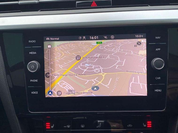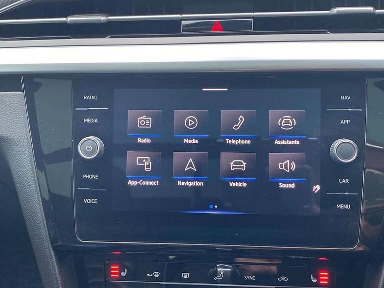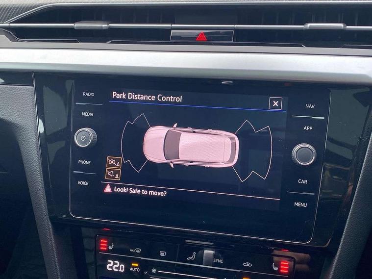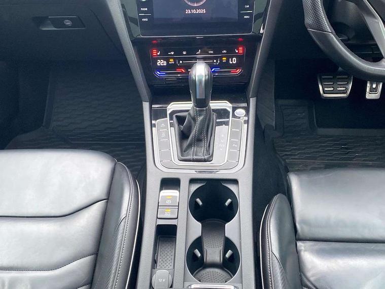 Adaptive cruise control (ACC) with speed limiter, front assist (reacting vehicles pedestrian and cyclists) and follow to stop, App connect including wireless Apple CarPlay, Camera for warning system, Digital cockpit with 10.25" high resolution TFT display screen with customisable menus and information, Driver alert system with fatigue detection, Driver profile selection including ECO function, Dynamic road sign display, eCall - Emergency call service for SOS calls to emergency response, Hands free boot opening, Press and drive key, Progressive steering, Speedo and rev counter, electronic odometer, trip, service interval display and exterior temperature gauge, Travel assist - Lane keeping assist and traffic jam assist, Voice activation for telephone and navigation, Start/stop function with battery regeneration, Premium USB cable in choice of either Apple or Android smartphone compatibility, Auto dimming interior rear view mirror, Body colour door handles, Body colour side skirt, Body coloured top and matt black lower door mirrors with integrated indicators, Chrome plated radiator grille inserts and light switch surrounds, Chrome side window surrounds, Dynamic headlight range control, Electric folding door mirror, adjustable, heated with front passenger exterior mirror lowering function, Front and rear electric windows, Front and rear stainless steel door sill protection, Front windscreen washers and wipers with 4x interval delay, Heat insulating side and rear windows, Heated rear windscreen, Heated windscreen washer jets, High level 3rd brake light, LED rear combination lamp with dynamic indicators, LED rear number plate lights, Left and right chrome effect trapezoid dummy exhaust tailpipe surrounds, Panoramic sunroof with tilting and sliding including integrated roller blind, R Line design body coloured bumpers, Rain sensor, Rear fog lamp on one side and reversing lamp on both sides, Rear windscreen washer and wiper with interval delay, 12V socket in front centre console, 12V socket on rear of front centre armrest, 3 rear head restraints, 30 colours options interior ambient lighting, 60:40 split folding rear seat backrests with centre armrest, Air care climatronic 3 Zone electronic air conditioning with automatic air recirculation, Black roof lining, Chrome trim on upper and lower air vents extending across cockpit, Driver and front passenger sunvisor with vanity mirror, Front + rear carpet mats, Front cupholders x 2, Front footwell illumination, Front sports comfort seats, Glovebox, Heated front seats, Height/reach adjust steering wheel, Isofix child seat preparation easy fit for two outer rear seats, Luggage compartment lighting, Removable luggage compartment cover, Split folding front seat backrest with front centre armrest, Stainless steel pedals, Two LED front reading light, 3 rear three point seatbelts, ABS+EBD+Brake assist, Driver airbag and front passenger airbags with deactivation switch including driver knee airbags, Electronic parking brake, Electronic stability control (ESC) and Electromechanical brake booster, Front disc brakes, Front side airbags with curtain airbags, Hill start assist, Pro active occupant protection to detect critical situations with elevated accident potential from the front, Rear disc brakes, Three point height adjust front seatbelts + pretensioners, Two tone horn, Tyre pressure loss indicator, Warning buzzer for seatbelts if unfastened, Warning triangle, Alarm with interior protection with deactivation via infotainment system, Electronic engine immobiliser, Keyless entry system including start/stop button on centre console, Aluminium decorative inserts, Chrome trim on lower doors in front and rear, Leatherette insert on door and side trim panel in foam film, Piano black decorative inserts in centre console,