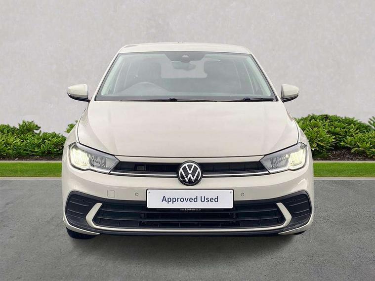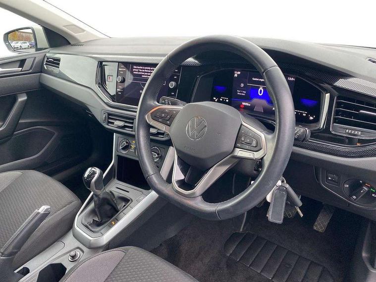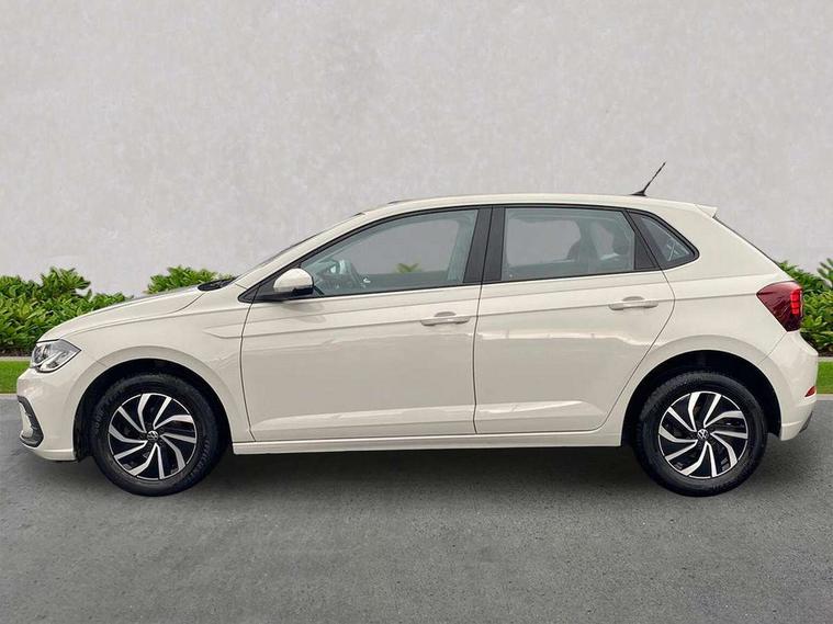 Adaptive cruise control without follow-to-stop and speed limiter, Bluetooth mobile phone interface, Driver alert system, Emergency call service, Front assist system, Power assisted speed sensitive steering, Preparation for We connect and We connect plus, Speedo and rev counter, electronic odometer, trip, service interval display and fuel gauge, Standard rear axle, Travel Assist - Lane keeping system and traffic jam assist, Travel assist including emergency assist, Trip computer, Warning signal and warning light for front and rear seatbelts not fastened, Washer fluid level indicator, Wireless app connect, Front wheel drive, Rear shock absorpion, Start-stop system with battery regeneration (recuperation - energy recovery during braking), DAB Digital radio, Diversity antenna for FM reception, Front and rear 6 speakers, Automatic dimming interior rear view mirror, Body colour bumpers, Body colour door handles, Body colour door mirrors, Electric front windows, Heat insulating darkened glass in side and rear windows, Heat insulating glass windscreen, Power folding adjustable/heated exterior mirrors and front passenger exterior mirror lowering function, Rain sensor, Rear electric windows, Rear fog light, Rear side wing doors, Rear windscreen washer and wiper with interval delay, Third brake light, 12V power socket in centre console, 2 front and 2 rear reading lights, 2 USB-C ports in the front, 2 USB-C charging sockets on the center console in the rear, 3 rear head restraints, 60/40 split folding rear seat and rear seat bench not split, Ceramique headliner, Chrome plated radiator grille inserts, air vent surrounds and light switch surrounds, Door and side trim panel, Driver and front passenger seat height adjustment, Driver/passenger sunvisors with illuminated vanity mirrors, Front centre armrest, Front seat backrest storage pockets, Front standard seats, Handbrake lever handle in leather, Hartley/Thomas cloth upholstery, Isofix child seat preparation easy-fit (for two outer rear seats, and front passenger seat) compatible with I-size, Leather trimmed gear knob, Luggage compartment cover, Luggage compartment floor, Luggage compartment lighting, Multifunction steering wheel, Single front passenger seat, Standard pedal cluster, Light and vision pack - Polo, 3 point height adj front seatbelts + pretensioners, 3x3 point rear seatbelts, ABS, Driver and front passenger airbag with front passenger airbag deactivation, Drivers and front passengers safety optimised head restraints, ESC (Electronic stability control) + EDL (Electronic Differntial lock) and ASR (Traction control), Extended and predictive pedestrian/ cyclist protection, Front curtain and side airbags with center airbag, Front disc brakes, Hill hold control, Manual child lock in rear doors, Rear drum brakes, Single tone horn, Tyre pressure loss indicator, Alarm with interior protection, Anti-theft alarm system with interior monitoring, backup horn, and towing protection, Anti-theft wheel bolts, Electronic engine immobiliser, Lava stone black gloss/matt decorative inserts in dash and front door panels, Low rolling resistance tyres,