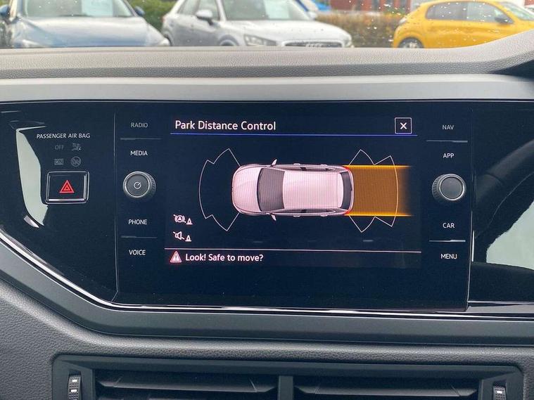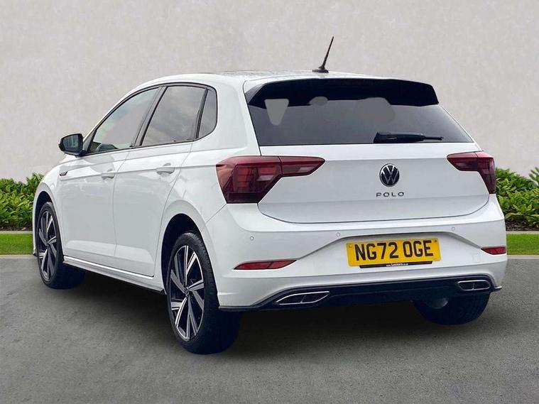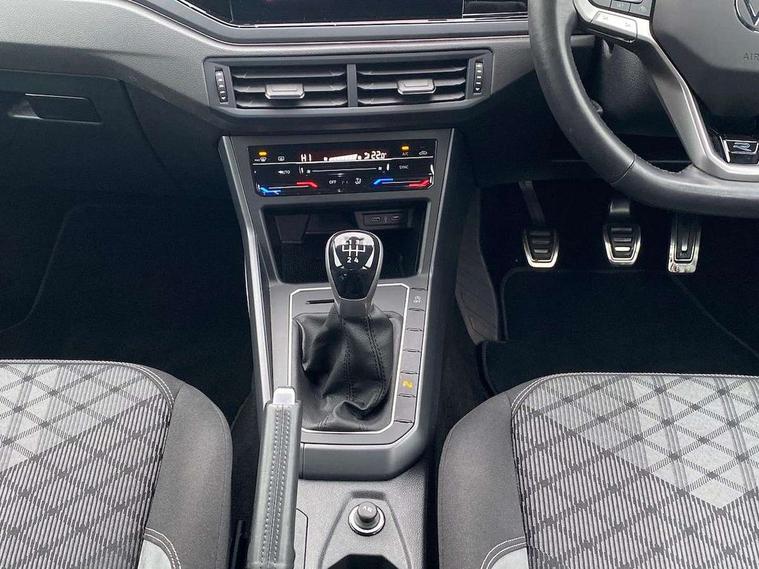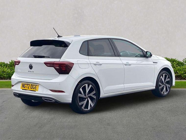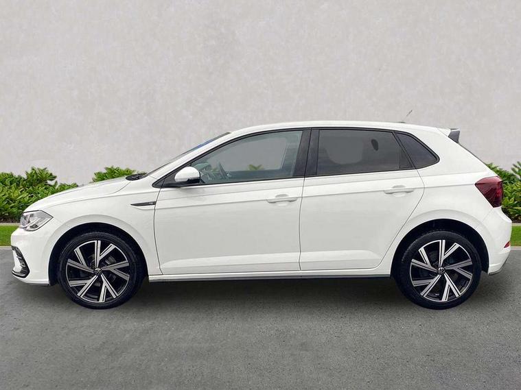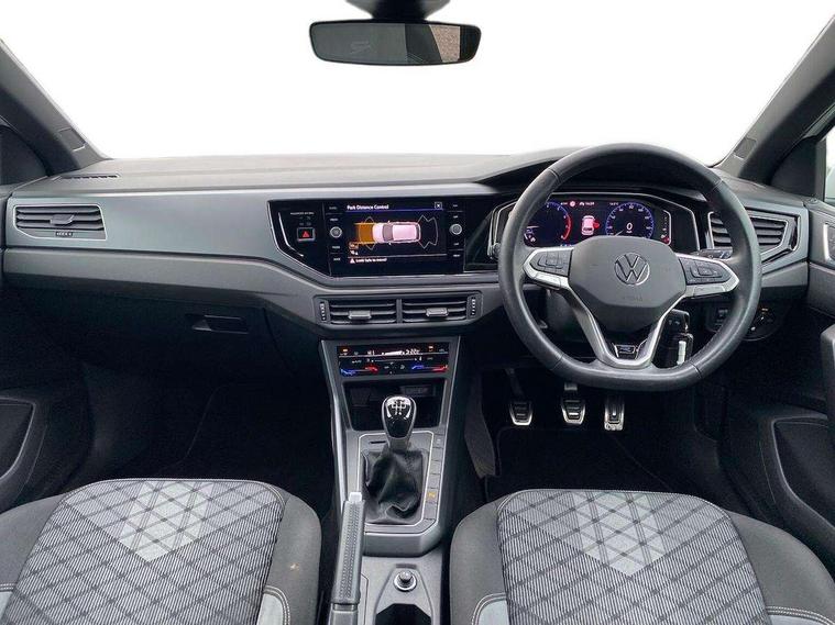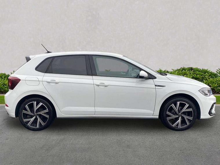 Adaptive cruise control without follow-to-stop and speed limiter, Bluetooth mobile phone interface, Digital Cockpit Pro with 10.25" Display, Driver alert system, Dynamic road sign display, Emergency call service, Power assisted speed sensitive steering, Preparation for We connect and We connect plus, Speedo and rev counter, electronic odometer, trip, service interval display and fuel gauge, Standard rear axle, Travel Assist - Lane keeping system and traffic jam assist, Travel assist including emergency assist, Trip computer, Warning signal and warning light for front and rear seatbelts not fastened, Washer fluid level indicator, Wireless app connect, Front wheel drive, Rear shock absorpion, Start-stop system with battery regeneration (recuperation - energy recovery during braking), DAB Digital radio, Diversity antenna for FM reception, Front and rear 6 speakers, Body colour bumpers, Body colour door handles, Electric front windows, Front scuff plates with R-Line logo, Heat insulating darkened glass in side and rear windows, Heat insulating glass windscreen, Power folding adjustable/heated exterior mirrors and front passenger exterior mirror lowering function, Rear electric windows, Rear fog light, Rear side wing doors, Rear windscreen washer and wiper with interval delay, Third brake light, 12V power socket in centre console, 2 USB-C ports in the front, 2 USB-C charging sockets on the center console in the rear, 3 rear head restraints, 60/40 split folding rear seat and rear seat bench not split, Air care climatronic air conditoning system with active combination filter and 2-zone temperature control, Black roof lining, Chrome plated radiator grille inserts, air vent surrounds and light switch surrounds, Door and side trim panel, Driver and front passenger seat height adjustment, Driver/passenger sunvisors with illuminated vanity mirrors, Front + rear carpet mats in recycled material, Front centre armrest, Front footwell illumination, Front seat backrest storage pockets, Front sports comfort seats, Handbrake lever handle in leather, Headliner in recycled material, Isofix child seat preparation easy-fit (for two outer rear seats, and front passenger seat) compatible with I-size, Karoso artvelours cloth upholstery, Leather trimmed gear knob, LED interior light with switch off delay and dimmer, 2 reading lights front and rear, Luggage compartment cover, Luggage compartment floor, Luggage compartment lighting, Lumbar adjustment for front seats, Multifunction steering wheel, Single front passenger seat, Stainless steel pedals, Standard pedal cluster, Light and sight pack - Polo R-Line/Black Edition, 3 point height adj front seatbelts + pretensioners, 3x3 point rear seatbelts, ABS, Driver and front passenger airbag with front passenger airbag deactivation, Drivers and front passengers safety optimised head restraints, ESC (Electronic stability control) + EDL (Electronic Differntial lock) and ASR (Traction control), Extended and predictive pedestrian/ cyclist protection, Front curtain and side airbags with center airbag, Hill hold control, Manual child lock in rear doors, Single tone horn, Tyre pressure loss indicator, Alarm with interior protection, Anti-theft alarm system with interior monitoring, backup horn, and towing protection, Anti-theft wheel bolts, Electronic engine immobiliser, Chrome applications on rotary light, mirror adjustment, window regulator switches, outlet with frame in black, Dark grey anodised matt decorative inserts in dash and front door panels, Low rolling resistance tyres,