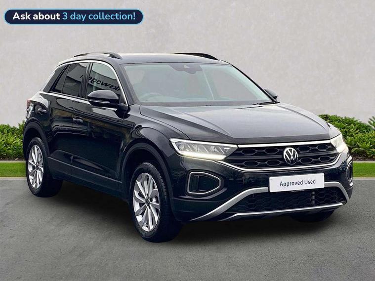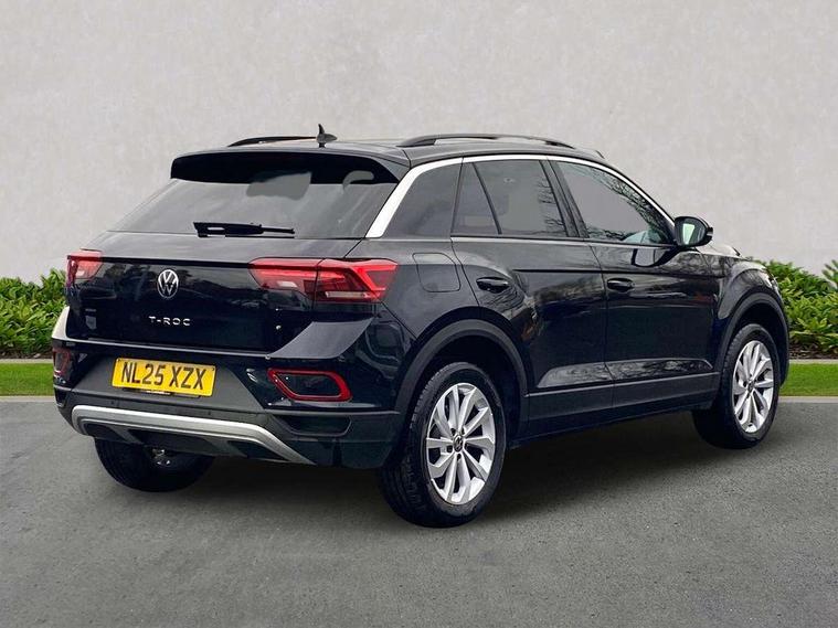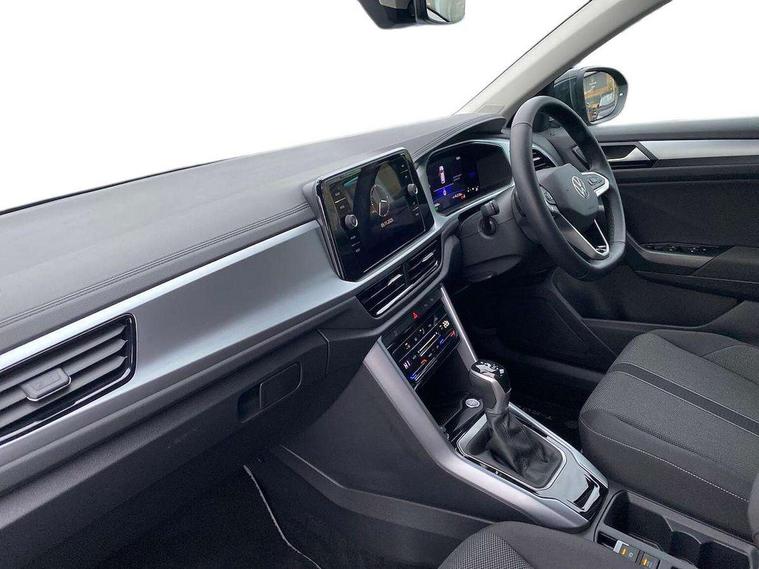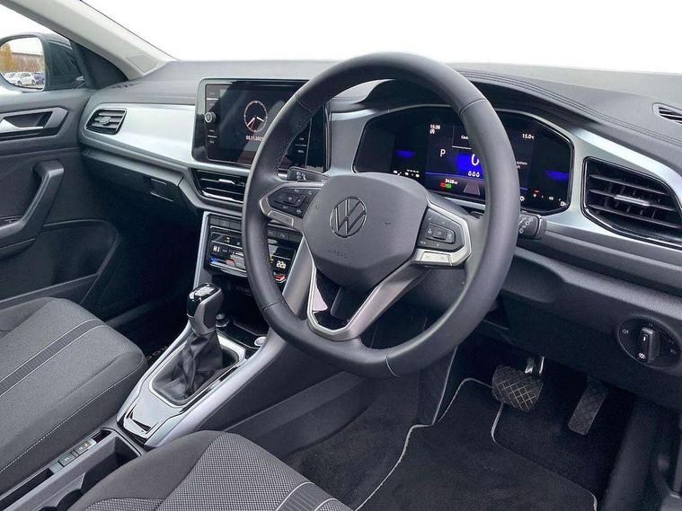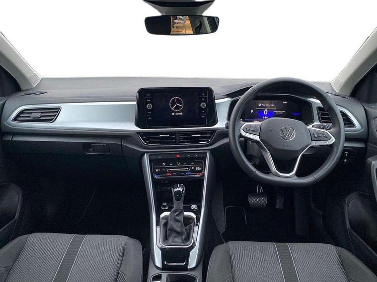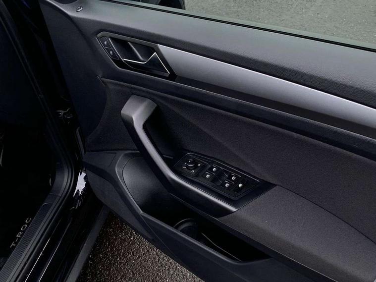 Advanced driver attention and drowsiness monitor, Dynamic road sign display, Emergency call service, Lane keeping system Lane Assist, Mobile phone interface, Modified key software - reduce switch off time for key status change to Long no motion, Online services, Park assist including front and rear parking sensors, Power assisted speed sensitive steering, Rear view camera, Service interval indicator, Tailgate/trunk lid release from outside, Think blue trainer driver tips and journey analysis, Warning sound and light for front seatbelts unfastened, Wireless app connect, Battery regeneration during braking, Front shock absorption, Rear shock absorption chassis with increased ride height, Start/stop function with battery regeneration, DAB Digital radio, Diversity antenna for FM reception, Front and rear 6 speakers, Music playback - MP3, WMA and AAC files, Premium USB cable in choice of either Apple or Android smartphone compatibility, SD card slot, Simultaneous pairing of 2 compatible mobile devices, Title and cover art display, We Connect and We Connect Plus functionality, Auto dimming interior rear view mirror, Automatic hazard lights activation under emergency braking, Automatic headlight control with LED separate daytime running lights with coming/leaving home function, Black roof rails, Body coloured bumpers and radiator grille with chrome trim and front fog lamps with chrome bezel, Body coloured exterior mirror housings and door handles, Electrically adjustable and heated door mirrors, Extended roof spoiler, Exterior mirrors aspherical on driver side, convex on front passenger side, External USB type C socket and charging sockets, Front windscreen wiper with intermittent wipe and 4 position delay, Heated rear window, LED 3rd brake light, LED rear combination lamps, LED rear number plate lights, Power windows with comfort operation and circuit breaker, Privacy glass for rear side windows and rear window, Rain sensor, Rear exhaust tailpipe, Rear fog light on one side and reversing lights on both sides, Rear side wing doors, Rear wash/wipe with intermittent wipe setting, Remote electrically foldable door mirrors, puddle lights and reverse activated passenger's door mirror, 12V power socket in centre console, 3 rear head restraints, 3 seat bench in 2nd row, 4 load lashing points in luggage compartment, Air care climatronic air conditoning system with active combination filter and 2-zone temperature control, Black stitching for floor mats, Ceramique roof liner, Cloth upholstery, Door and side trim panel in cloth, Drawer under drivers seat, Driver/front passenger seat height adjustment, Front centre armrest, Front comfort sports seats, Front cupholders x 2, Front reading light, Front seat back storage pockets, Glove compartment door with light, Instrument lighting, white adjustable panel illumination, Interior ambient lighting and surround lighting, Interior light delay, Isofix child seat preparation, Leather gearshift handle, Load-through provision with cup holder when folded down ('Unsplit rear seat bench, split folding backrest, with centre armrest), Luggage compartment lighting, Lumbar support for driver's and front passengers seat, Non-folding front passenger seat backrest, Single front passenger seat, Storage compartment in left and right luggage area, Storage compartment in rear doors, Storage compartments in driver and front passenger doors, Sunvisors with illuminated vanity mirrors, Variable boot floor, height adjustable and removable, Driver assistance pack without proactive passenger protection - T-Roc Life/Match, 3 point height adj front seatbelts + pretensioners, 3 point seatbelts in outer rear with ECE label, ABS, Child locks on rear doors, City emergency braking and pedestrian monitoring, Driver and front passenger airbag with front passenger airbag deactivation, Driver and front passenger safety-optimised head restraints, Drivers seatbelt reminder, Electronic parking brake, Electronic Stability Control (ESC) inc EDL (Electronic Differential Lock) and ASR (Traction Control), Front and rear passengers curtain airbag system including front side airbags, Front disc brakes, Hill start assist, Predictive pedestrian protection, Rear disc brakes, Two tone horn, Tyre pressure loss indicator, Volkswagen roadside assistance, Alarm with interior protection, Keyless locking and starting system keyless access with safelock, Pewter matt decorative inserts for intrument panel, centre console and door panels at the front, Trims for alloy wheels,