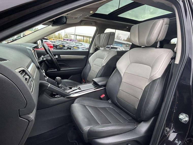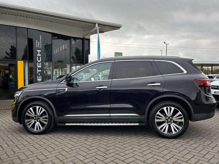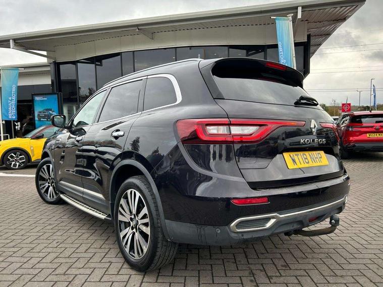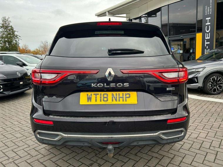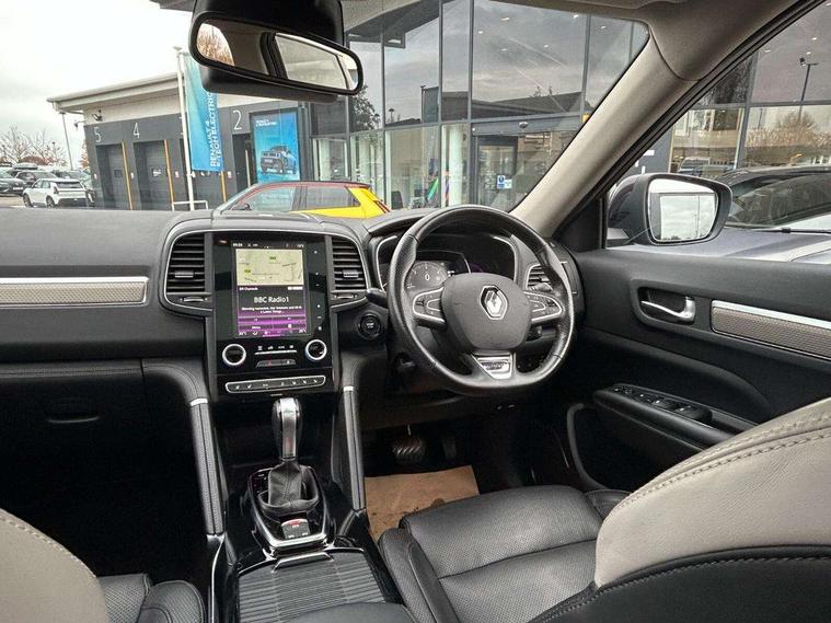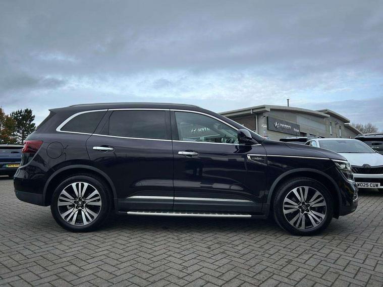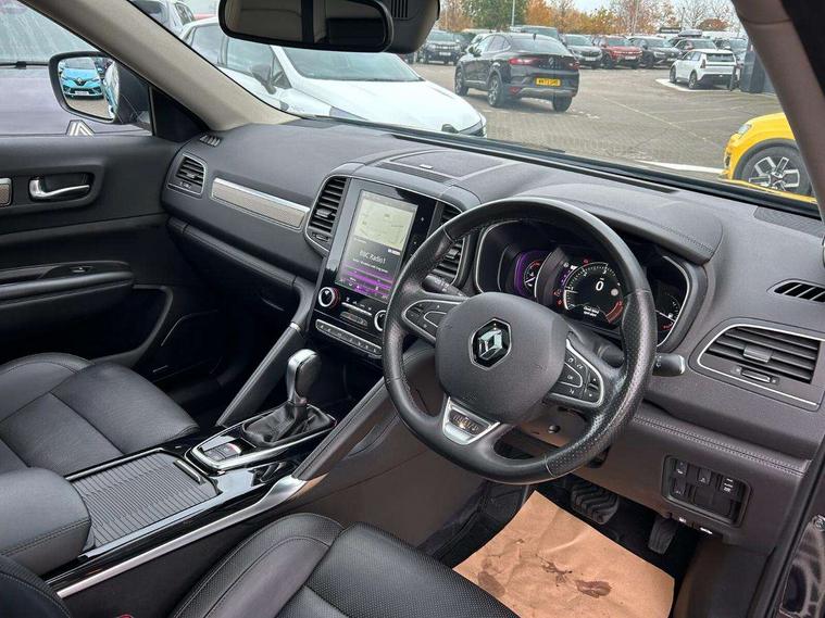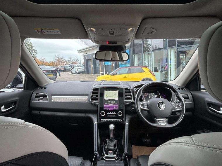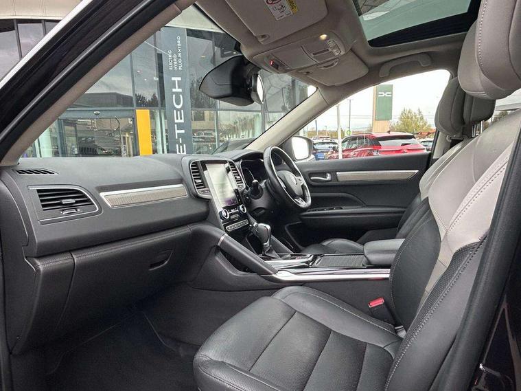 Apple car play/Android Auto, Automatic tailgate opening, Blind spot monitoring, Cruise control + speed limiter, Digital speedometer, Door/boot open warning light, Eco mode, Exterior temperature gauge, Hands free parking system with front and rear sensors and steering assist, Low fuel level warning light, PAS, R-Link 2 multimedia system with 8.7" touch screen, TomTom Live 3D navigation, european mapping and app store, Rear parking camera, Rev counter, Traffic sign recognition, Trip computer, Visio system - lane departure and high beam assist, Voice control system, Auxiliary input socket, Bose audio system with 13 speakers, DAB Radio with Bluetooth and USB, Fingertip controls for audio system, Automatic headlights and windscreen wipers, Body colour door handles, Body coloured door mirrors, Electric adjustable/heated/folding door mirrors, Electrochrome rear view mirror, Extra tinted glass in rear windows and tailgate, Front and rear electric windows, Front and rear towing rings, Front fog lights, Heated rear windscreen, LED daytime running lights, LED Headlights, Longitudinal roof bars, Panoramic sunroof, Rear wiper, 3 height adjustable rear headrests, 3 seat rear bench, 60/40 split folding rear seat, Air recirculation system, Ambient lighting, Centre rear armrest with cup holder, Driver's seat with lumbar adjustment, Driver/passenger reading lights, Dual zone automatic climate control, Front centre armrest with storage, Front courtesy lights, Heated and cooled front cupholders, Height adjustable driver's seat, Height adjustable front headrests, Height/reach adjust steering wheel, Illuminated luggage compartment, Illuminated sun visor mirrors, Isofix system on outer rear seats, Nappa leather steering wheel, One touch easy folding rear seating system, Passenger seat electric height adjuster, Pollen filter, Rear courtesy lights, Rear passenger heating ducts, Two 12V accessory power outlets, Climate Pack - Koleos, ABS + EBD + EBA, Driver/passenger 2 stage auto adaptive airbags, Electronic parking brake, ESP with ASR and UCL (understeer control logical), Front and rear curtain airbags, Front lateral airbags, Front side airbags, Height adjustable front seatbelts + pretensioners, Hill start assist, Inertia reel 3 point seatbelts on all seats, Passenger airbag deactivation system, Seatbelt warning, Side impact protection, Traction control, Tyre pressure monitor, Anti-drill door locks/ignition barrel, Hands free Renault card, Insurance approved Cat 1 alarm system, Insurance Approved Immobiliser, RAID (Renault Anti-Intruder Device) with automatic door locking, Superlocking, Brushed aluminium interior trim, 19" Diamond cut alloy wheels,