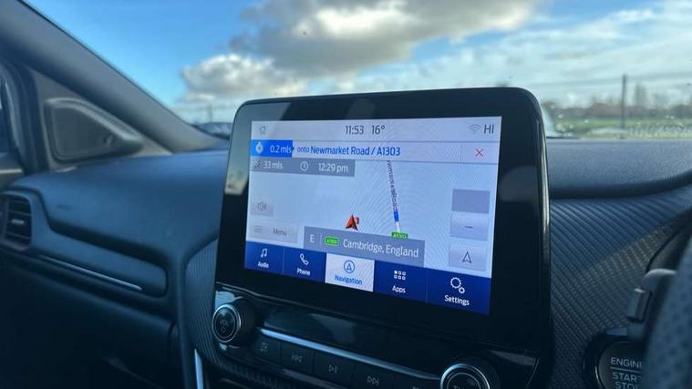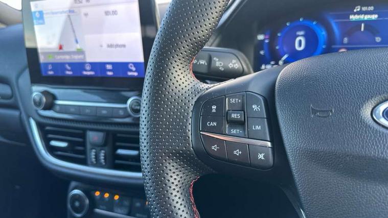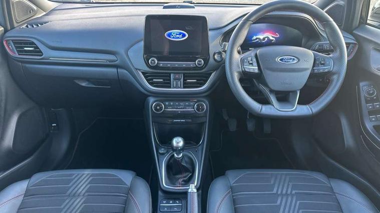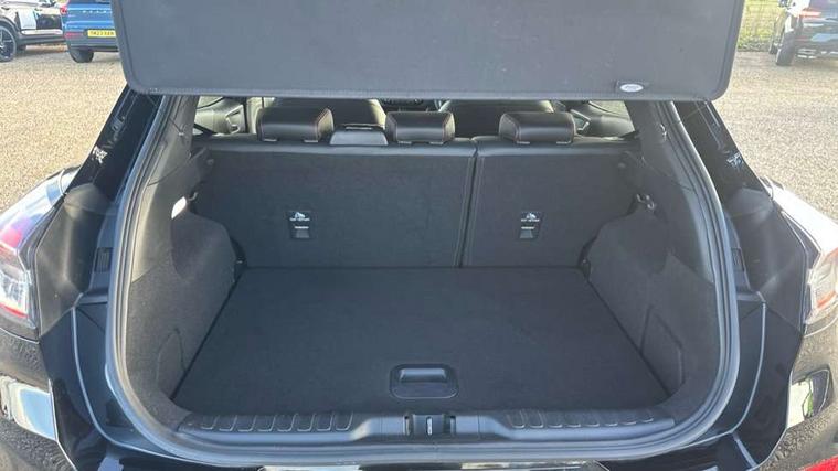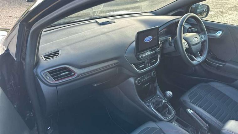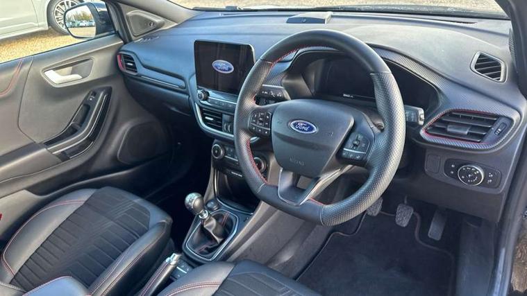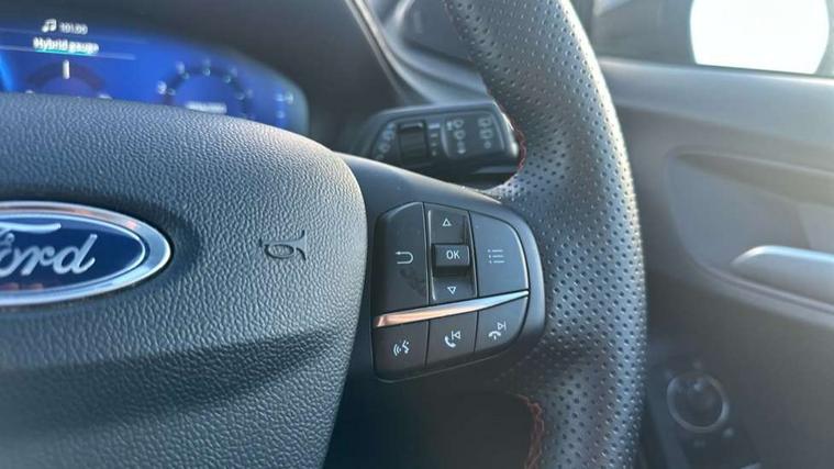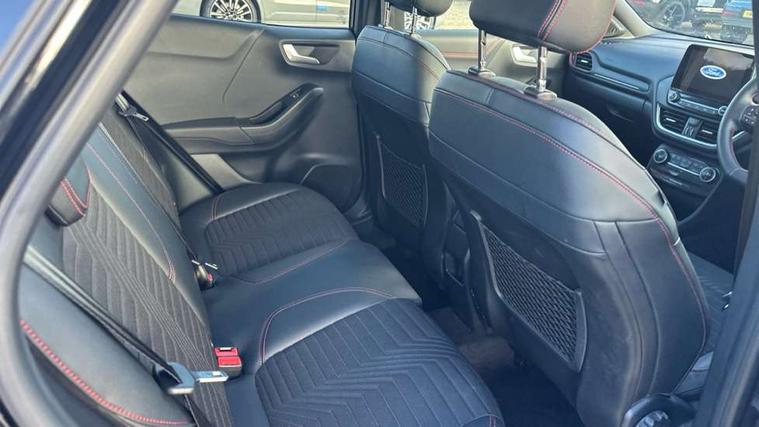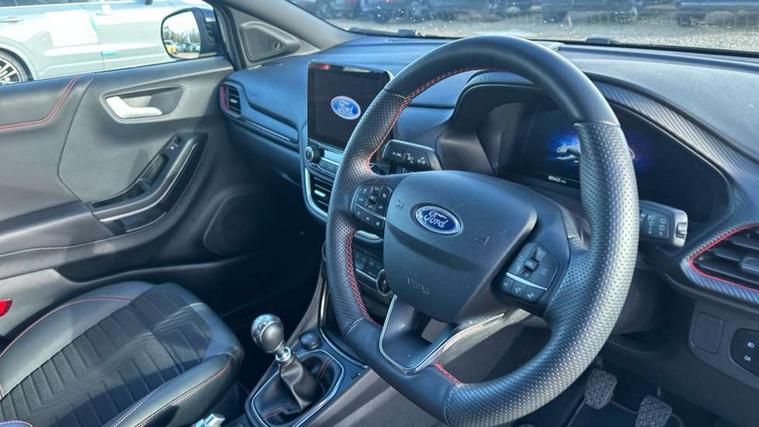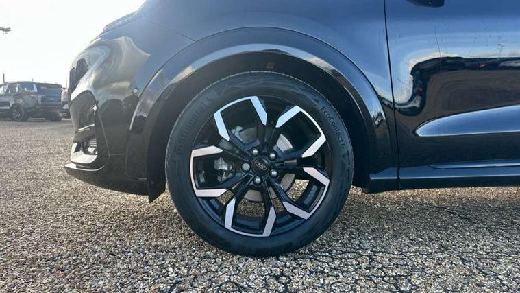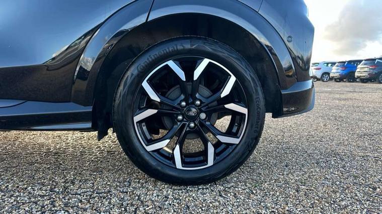 Driver impairment monitor, Emergency call service, Ford easy fuel, Full digital 12.3" instrument cluster, Lane keeping aid with lane departure warning, Power assist steering, Power start button, Rear parking sensor, Selectable drive modes(Normal, sport, Eco, trail, slippery), Speed sign recognition, Sport suspension, Automatic headlights with auto high beam, Automatic rain sensing wipers, Front fog lamps, LED daytime running lights, LED rear lamps, Power foldable heated door mirrors with puddle lamps, Privacy glass to side rear windows and tailgate glass, Quickclear heated windscreen, Rear side wing doors, Rear wiper, ST-Line body styling kit with unique grille and large body colour rear spoiler, Third brake light, 3 seat bench in 2nd row, Centre console with armrest and stowage, Ford megabox extended bootspace, Front and rear head restraints, Front floor mats, Manual 4 way driver seat adjust with lumbar adjustment, Manual 4 way passenger seat with lumbar seat adjustment, Sensico partial premium upholstery, Single front passenger seat, ST-Line flat bottomed sensico leather steering wheel with leather handbrake and aluminium gear knob, Wireless charging pad with electronic air temperature control (EATC), B&O Premium Audio system + Ford SYNC 3 navigation pack - Puma, 3 rear seatbelts, Child safety lock, Electronic stability control (ESC) and hill start assist, Pedestrian/cyclist detection & post-collision braking, Pre collision assist system, Tyre pressure monitoring system (TPMS), Thatcham alarm, Carbon look interior deco spears,