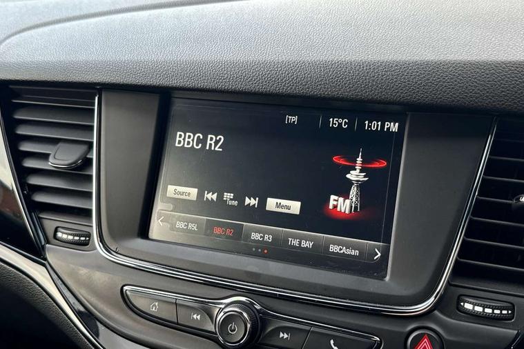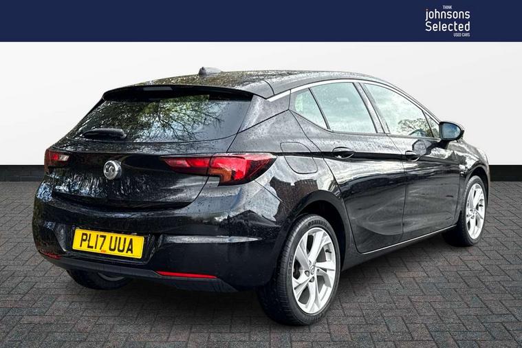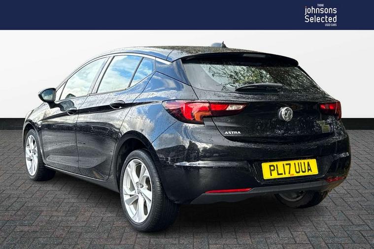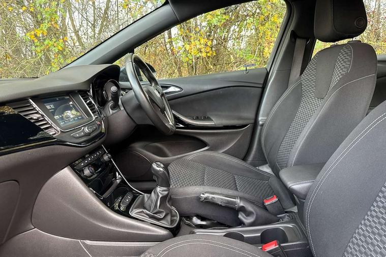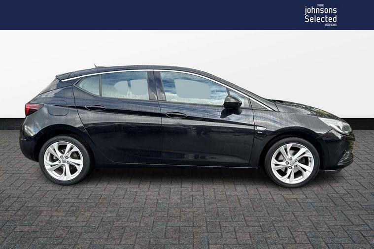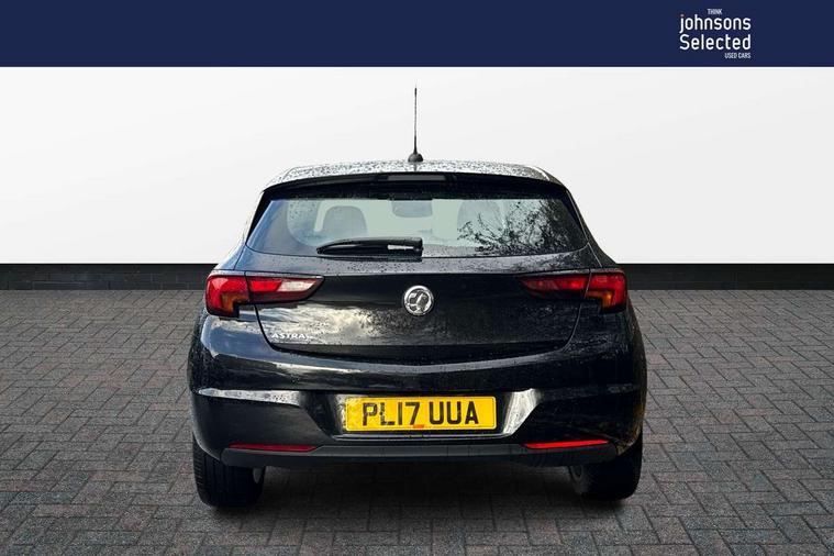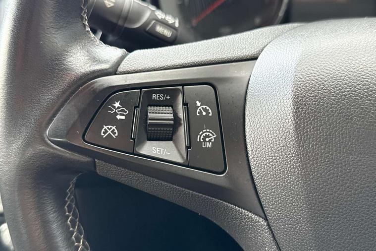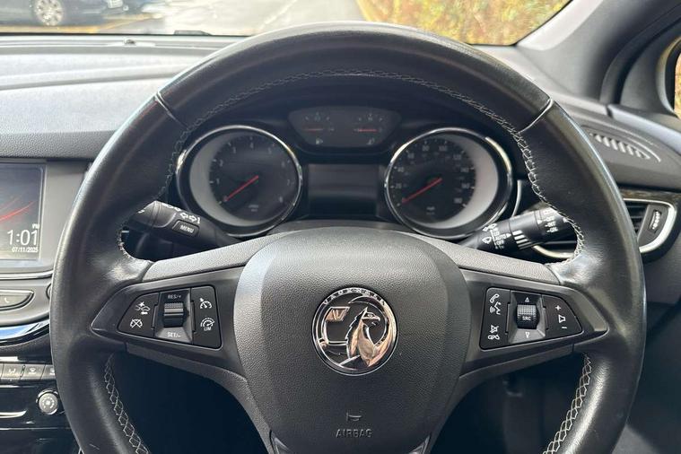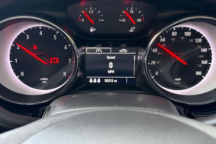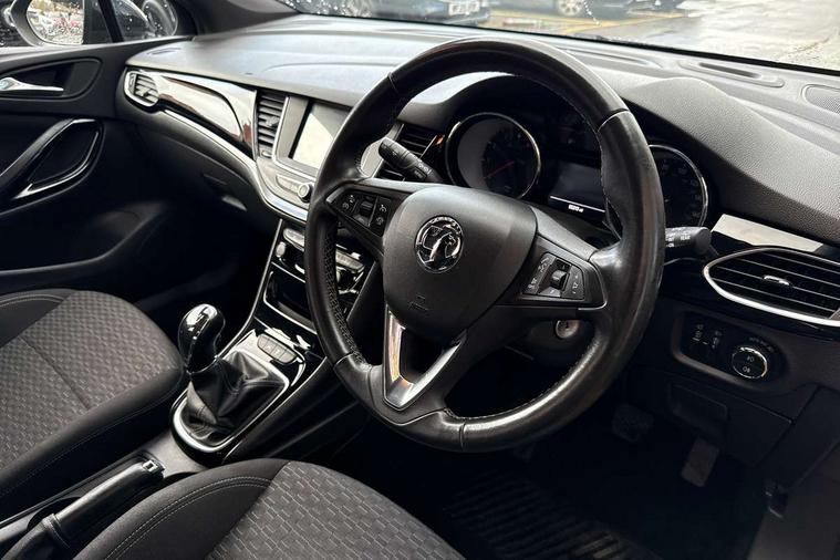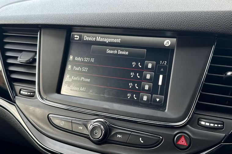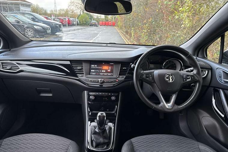 Apple car play/Android Auto, Cruise control + speed limiter, Electric speed sensitive power steering, External temperature gauge, Low fuel level warning light, Mobile App interface, Multi function trip computer, Rev counter, Service indicator, Vauxhall OnStar emergency assistance, Voice control system, 6 speakers, Bluetooth connectivity including audio streaming, DAB Digital radio, R4 IntelliLink with 7" touch screen, Steering wheel mounted audio controls, USB port, Adaptive brake lights, Body colour door handles, Body colour rear roof spoiler, Body coloured door mirrors, Chrome effect upper window trim, Chrome front grille, Chrome headlight surround, Door to door illumination, Electrically adjustable and heated door mirrors, Front fog lamps, Gloss black finish B pillar, Gloss black finish C pillar, Hazard warning lamps, Heated rear window, Intermittent rear wash/wipe, LED daytime running lights, One touch electric front/rear windows, Solar glass windscreen, Tinted windscreen, Trailer Stability Programme, 12V power point front, 3 spoke leather covered steering wheel, 4 Lashing eyes in boot, 60/40 split rear seats, Adjustable front armrest, Centre console with covered storage and cupholders, Chrome interior door handles, Driver's storage box, Driver/passenger sunvisors, Formula cloth upholstery, Front and rear door pockets, Front reading lights, Front red LED ambient lighting, Front seat back storage pockets, Front/rear courtesy lights, Glovebox, Height adjustable front/rear head restraints, Illuminated load area, Illuminated vanity mirrors, Isofix system on outer rear seats, Light titanium headlining, Luggage compartment cover, Reach + rake adjustable steering column, Rear reading lights, Driving assistance pack 1 - Astra, 3x3 point rear seatbelts, ABS, Child locks on rear doors, Driver/Front Passenger airbags, ESP, Front and rear curtain airbags, Front seat side impact airbags, Height adjustable front seatbelts, Hill start assist, Passenger airbag deactivate switch, Pedal release system, Seatbelt pretensioners on front/outer rear seats, Seatbelt warning, Tyre pressure monitoring system, Deadlock, Electronic engine immobiliser, Locking wheel bolts, Remote central locking,