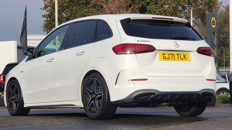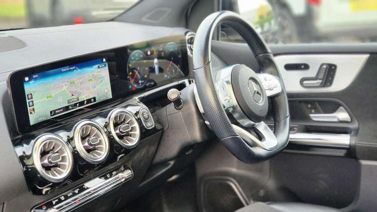 10.25" Digital instrument cluster display screen, 10.25" media display, 180 degree reversing camera with parking guidelines, Attention assist - Monitors steering behaviour and long journey fatigue, Brake pad wear indicator warning light, Direct steer system, Dual bluetooth interfaces, DYNAMIC SELECT with a choice of driving modes (ECO, Comfort, Sport and Individual), ECO start/stop function, Fluid level warning indicator for fuel, oil, coolant and washer fluid, GPS aerial, Hard disk navigation, Hey Mercedes Voice activation, Lamp failure indicator, Live traffic information, MBUX multimedia system with Hey Mercedes, DAB Digital Radio and touchpad, Mercedes me connect including emergency call system, accident recovery, breakdown and maintenance management, Mercedes me remote services, Outside temperature gauge, Owners manual and service booklet in English, Pre-installation for private car sharing, Preinstallation for Mercedes Benz link, Service indicator (ASSYST), Smartphone integration with Apple CarPlay and Android auto, Speed sensitive power steering, Traffic sign assist, Trip computer in multifunction display with current consumption indicator, BlueTEC diesel emission control system including AdBlue reservoir, Diesel particulate filter, Lowered comfort suspension, 2 USB ports (type C) in rear stowage compartment and one in front of center console, Mercedes Benz sound system (100 W) with 6 speakers, 4 Electric Front and Rear windows, Adaptive brake lights, AMG body styling - AMG front apron with black front splitter, AMG side sill panels and AMG rear apron and visible exhaust tailpipe, Body coloured bumpers, Body coloured door handles, Body coloured side skirts, Car wash function, Chrome weather strip, Edition badging on the front wings, Electric adjustable and heated door mirrors with integrated LED side indicators, Exclusive diamond radiator grille, Exhaust system with 2 Visible tailpipe trim elements and rear apron with trim in chrome, Headlamp assist automatic headlamp activation, Heated glass rear windscreen + timer control, High level LED third brake light, Interior mirror with black reading lamps and frameless, LED high performance headlamps with integrated LED daytime running lights, LED tail lamp, Multibeam LED with adaptive highbeam assist plus, Panoramic sliding sunroof, Pre-installation for trailer coupling, Privacy glass, Rain sensing windscreen wipers with two sensitivity settings, Rear fog lamp, Rear side wing doors, Rear windscreen wiper, Variable front intermittent wipers, 3 seat rear bench, 3 spoke multifunction sports steering wheel in nappa leather with flattened bottom and perforated grip area, 40:20:40 split folding rear seat backrests, Air conditioning - air vents with silver chrome surround, Air conditioning - Two zone thermotronic luxury automatic climate control with display, Artico man-made leather/Dinamica upholstery with light grey contrast stitching, Automatic child seat recognition sensor, Black roof lining, Brushed stainless steel sports pedals with rubber studs, Floor mats with black top stitching embroidered edition logo and piping in light grey, Folding rear seat backrest, Freight packaging without tie-down hooks, Front and rear head restraints, Front centre armrest with stowage, Front door sills with Mercedes Benz lettering, Front sports seats with adjustable head restraints, Galvanished gear shift paddles on steering wheel, Heated front seats, Illuminated front door sills with changeable cover, Illuminated glove compartment stowage, Interior lighting - 64 colour Ambient lighting, Luggage net on driver/front passenger seat backrest, Manually adjustable front seats, Manually height and reach adjustable steering column, Rear armrest with 2nd row seat adjustment, Seat occupancy sensor for front passenger seat, Single front passenger seat, Stowage compartment in centre console with retractable cover, Sunvisors with illuminated vanity mirrors, Touchpad on center console, Twin front cupholders, Two outer rear seat isofix and top tether child seat fixing points, Interior lighting with light and sight pack - B Class, Mirror package - B Class, Night package - B Class, Parking pack - B Class, Seat comfort pack - B Class, 3 rear three point seatbelts, Active bonnet pedestrian safety measure which detects an impact and raises bonnet, Adaptive brake assist with hold function and hill start assist, Airbags - kneebag for driver, Anti-lock braking system (ABS) with brake assist, Black seat belts, Childproof locks manually operated for rear doors and electrically operated for rear power windows, Crash responsive emergency lighting, Curve dynamic assist, Driver and front passenger head and sidebags, Driver and front passenger windowbags, Dual stage driver/passenger airbags, Electric parking brake, Electronic stability programme with acceleration skid control, Front and rear seatbelt reminder, Front passenger airbag deactivation, Tyre pressure monitoring system, Warning triangle and first aid kit, Alarm system with immobiliser and interior protection -Thatcham category 1, Keyless Go starting function, Remote central locking and crash sensor with emergency opening function, Urban guard vehicle protection - Anti theft alarm system, tow away protection with visual and acoustic warning and alarm siren, Matrix look light longitudinal-grain aluminium trim elements, 18" AMG 5 spoke light alloy wheels aerodynamically optimised painted in black with high sheen finish, Summer tyres, Tirefit tyre sealant kit,