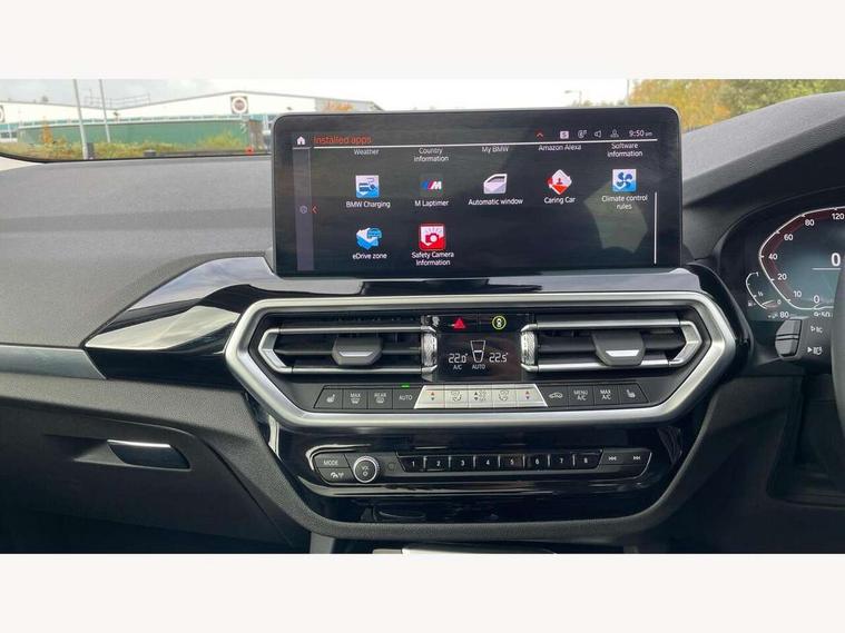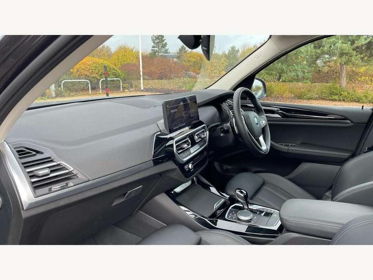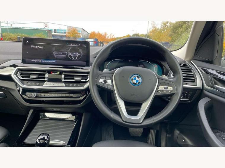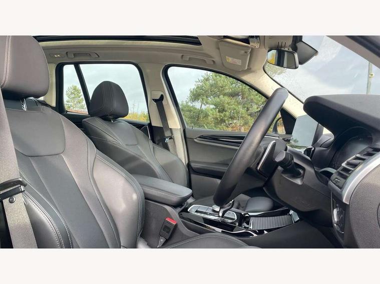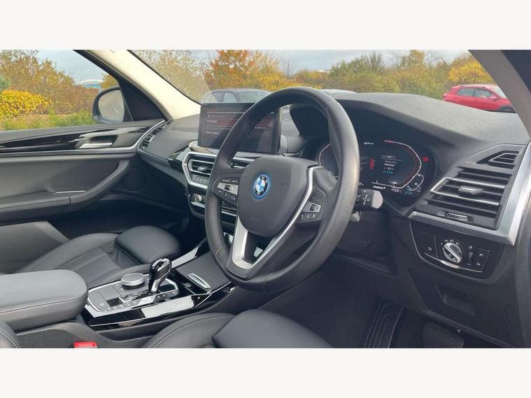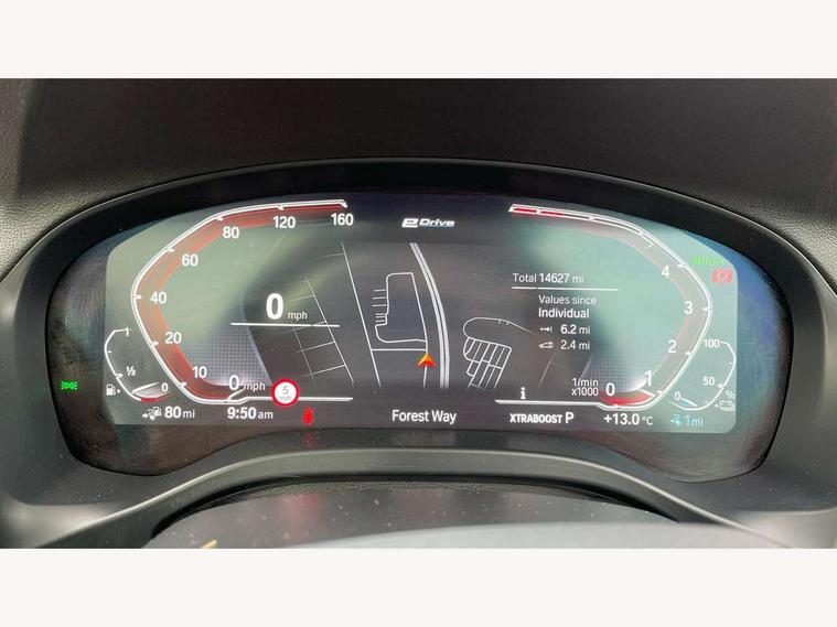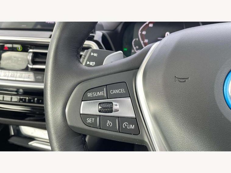 Active Guard, Attentiveness assist, BMW Live Cockpit Professional nav system including 12.3" instrument display + 12.3 high resolution control display, BMW Online services, BMW Teleservices, Brake pad wear indicator in front and rear, Check Control warning system for monitoring of lights and door/luggage compartment open warning, Condition based service - BMW service history, electronic service booklet, integrated owner's handbook, Connected drive services, Cruise control with brake function + speed limiter, Electric boot lid, Front/rear Parking distance control, iDrive touch controller with 8 favourite buttons, Instrument cluster with speedometer with mph readout, tachometer, fuel gauge and oil temperature gauge, Lights on warning by audio warning signal when ignition is switched off, Oil sensor for level and grade, warning by check control system, On board computer - average speed+fuel consumption, service interval, clock/date, odometer/trip meter, outside temperature display and ice warning, Optimum shift indicator, Personal Profile - automatic lock when driving away selectable, Run flat indicator, Stop/start system, Variable sports power steering with drive performance control Sport+ mode, Charging cable - Mode 2, eDrive exterior sound, Incorrect fuelling protection, Multi-link rear suspension, Performance Control, Sport automatic transmission with gearshift paddles, BMW professional radio/CD/MP3, DAB tuner, Acoustic glazing, Aluminium exterior trim, Automatic windscreen wipers and automatic headlight, Black finish on B pillars, Body colour door handles, Body colour electric adjust heated aspherical door mirrors, Body colour roof mouldings, Body coloured bumpers, Direction indicator, side repeaters, integrated in exterior mirrors, Dynamic brake lights, Exhaust tailpipes - dual, round, split left and right with chrome finisher, Fingertip control / anti-trap function on electric window, Folding wing mirrors with auto dimming, Follow me home headlights, Front and rear bumper system with replaceable deformation elements, Front and rear electric windows, Glacier silver metallic matt in side sills, Gloss chrome tailpipes finishers, Green tinted heat insulating glass, Heated windscreen washer jets, High beam assistant, High level 3rd brake light incorporating LED Technology, Interior rear view electrochromatic mirror with automatic anti dazzle function, LED tail lights, Lightweight engineering, M Sport entry door sill strips, Matt aluminium roof rails, Model designation, Rain sensor, Rear side wing doors, Rear wing door, Rear wiper, Shark fin antenna, Visible VIN plate, Welcome lighting, Windscreen wipers with adjustable interval, xLine exterior styling with underbody protection, 12V power point in luggage area, 12V power socket in front centre console, 3 rear headrests, 3 seat bench in 2nd row, 3 spoke sports leather multi-function steering wheel, 3 zone automatic air conditioning, 4 lashing points to secure luggage, 40:20:40 split folding rear seat with loading system, Ambient lighting, Automatic interior light when door is opened/ignition switched off or via remote key, Deletion lumbar support/width adjustment passenger side, Floor mats in velour, Foldable storage floor with compartment, Four grab handles integrated in roof lining, Front and rear bottle holders integrated into door trim storage compartments, Front and rear side armrests integrated into door trim, Front centre armrest with storage compartment, Front door sill finishers with BMW X-line designation, Front footwell lights, Front head restraints, Front passenger seat, Front sports seats, Front/rear courtesy lights with soft on/off dimming, Front/rear reading lights, Heated front seats, Isofix rear child seat preparation, Leather gear knob, Luggage area underfloor compartment, Luggage compartment lighting, Parcel shelf removeable and storable under boot floor, Reach and rake adjustable steering column, Rear centre armrest with 2 cupholders, Removable / retractable luggage cover, Sensatec perforated upholstery, Slope adjustable rear seats, Storage compartment in rear centre console and front/rear door trims, Sun visors with vanity mirrors and ticket pocket, Toolkit located in luggage compartment, Two front cupholders with removable oddments tray/lid, Connected pro pack - X3, Driving assistant pack - X3, ADB - Automatic Differential Brake, Anti-lock braking system (ABS) with brake assist, Automatic Stability Control (ASC), Battery safety cut-off, BMW emergency call, Brake drying, Brake energy regeneration, Braking pre-tensioning, Child locks on rear doors, Cornering brake control (CBC), Crash Sensor - activation of central locking release, hazard warning light and interior lighting, Deactivation of fuel pump in the event of a crash, Driver and front passenger front and side airbags with passenger deactivation and ITS front and rear head airbags, Driver and front passenger knee airbag, DSC+, Dynamic brake control, Dynamic Traction Control - DTC, Electromechanical parking brake, Hill descent control, Hill start assist, Seatbelt security check for front seats, Side impact protection, Three point seatbelts to all seats with front and outer rear pyrotechnic belt tensioners and seat belt force limiters, Two tone horn, Tyre pressure sensor, Ventilated front and rear disc brakes, Warning triangle and first aid kit, Central locking switch for all doors, fuel filler cap and luggage compartment, Electronic engine immobiliser, Locking wheel nuts, Remote control including two integrated key - one button for open/close all lockable content, windows and separate button for open luggage compartment, Remote control Thatcham category 1 alarm, Start/stop button with Comfort Go keyless engine start and auto Start/stop deactivation button, Low rolling resistance tyres, Tyre repair kit,