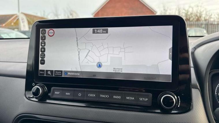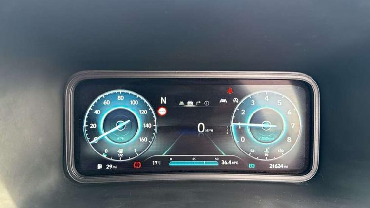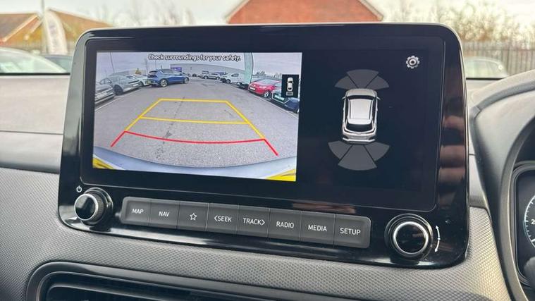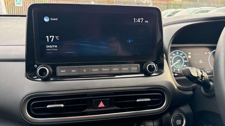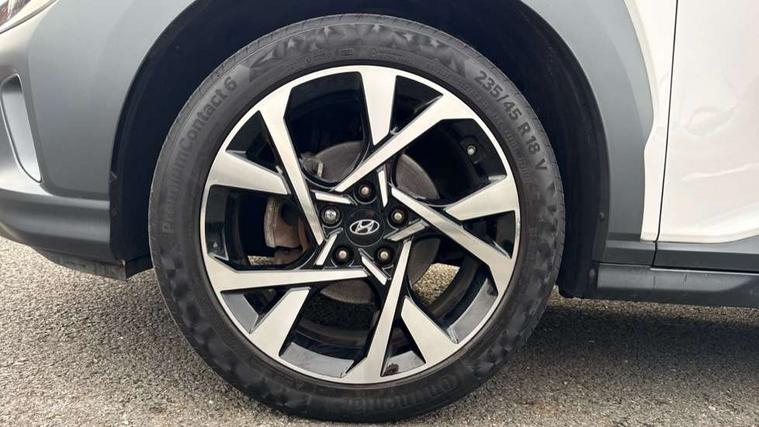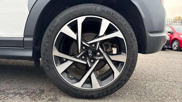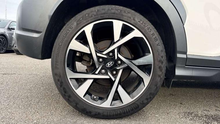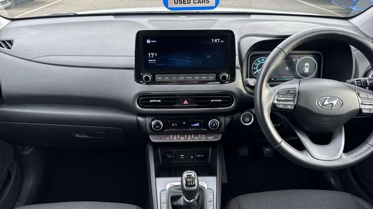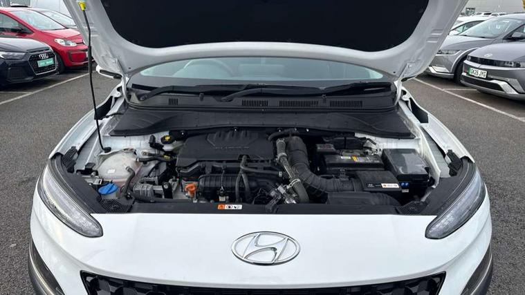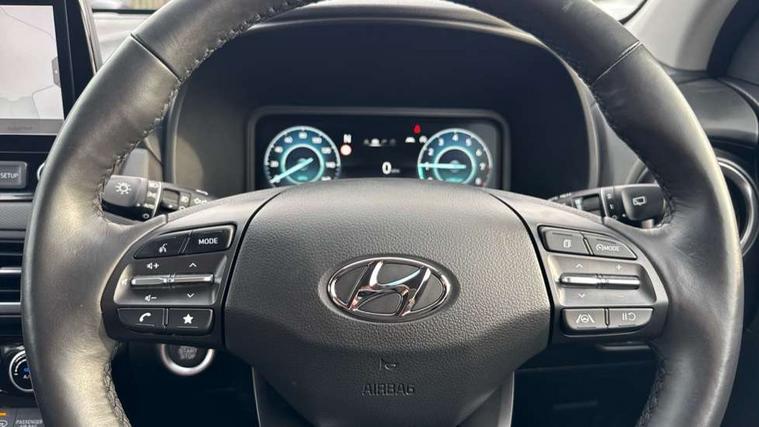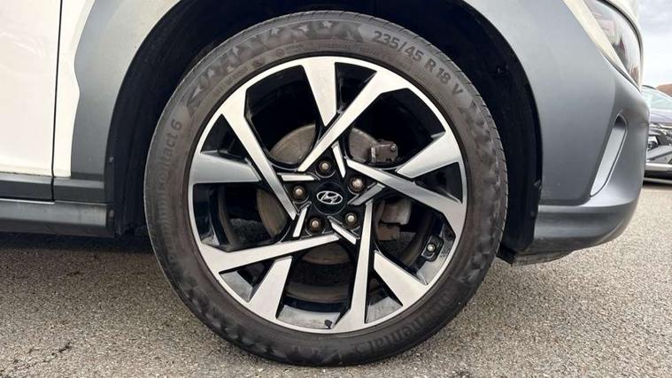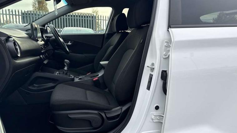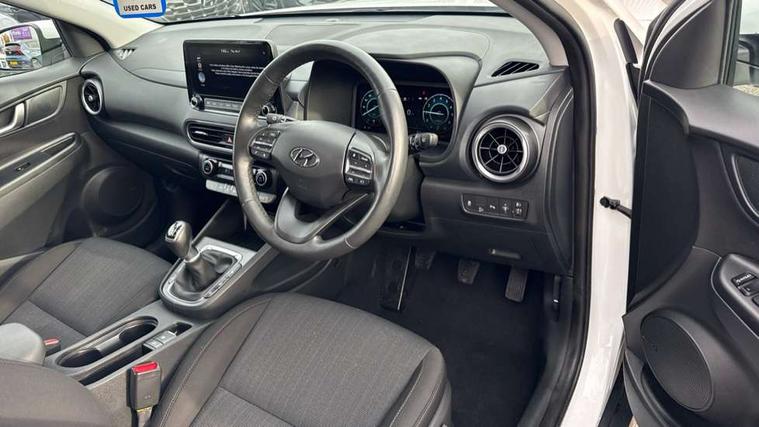 10.25" touchscreen centre console display satellite navigation with live services and mapcare, Bluetooth connectivity, Cruise control + speed limiter, Digital clock, Driver attention warning, Driver supervision instrument cluster with 10.25" LCD display, eCall emergency call system, Forward collision avoidance assist with pedestrian detection, Front parking sensor, Intelligent speed limit warning, Lane follow assist, Lane keep assist, Leading vehicle departure alert (LVDA), Parking system with rear camera and guidance system, PAS, Phone connection with apple carPlay and android auto, Rear parking sensor, Roadside assistance, Windscreen washer fluid sensor and warning indicator, Wireless phone charging pad, 6 speed intelligent manual transmission, Front and rear USB ports, Krell premium audio system with 8 speakers including external amplifier and subwoofer, RDS and Digital DAB, Steering wheel mounted audio/phone controls, Auto dimming rear view mirror, Automatic headlights with dusk sensor, Automatic windscreen wipers with rain sensor, Body colour door mirrors and handles, Door mirror integrated indicators, Electric front/rear windows with drivers one touch/anti-trap, Electrically adjustable and heated door mirrors, Front fog lights, Halogen headlights, LED daytime running lights, LED rear lights, Painted anthracite body garnish, Positioning Lights - LED, Power folding door mirrors, Privacy glass - Rear windows and tailgate, Rear roof spoiler with integrated LED brake light, Rear skid plate - silver, Rear wiper, Roof rails, Solar glass with front door glass and windscreen shade band, Windscreen auto defog function, 12V power outlet in front console, 60/40 split folding rear seat, Adjustable head restraints, Air conditioning climate control, Ambient lighting, Centre interior light, Cloth upholstery, Door scuff plate, Driver and passenger front seat pockets, Driver's seat electric lumbar support, Driver's seat height adjustment, Driver/passenger sunvisors and illuminated vanity mirrors, Front interior light, Front passenger seat manual adjustments, Heated front seats, Heated steering wheel, Height/reach adjustable steering column, Isofix rear child seat fastenings, Leather wrapped steering wheel and gear knob, Luggage compartment lighting, Luggage hooks, Luggage net, Metal paint effect interior door handles, Parcel shelf, Rear centre console with air vents, Sunglasses holder, Vertical adjustment rear head restraints, Trailer wiring package - Kona, Airbags - front, front side and curtain airbags, Anti-lock brake system (ABS), Childproof rear door locks, Downhill brake control, EBD + Brake Assist, Electric parking brake, Electronic stability control, Fasten seatbelt reminder, Fixed 3 point for second row centre passenger seatbelt, Front seatbelt pretensioners, Height adjustable front seatbelts, Hill start assist control (HAC), Passenger airbag deactivate switch, Rear seat alert, Traction control, Tyre pressure monitoring system, Alarm/immobiliser, Deadlocks, Folding key, Locking wheel nuts, Remote central locking, Smart key with keyless entry and engine start/stop button, 18" Alloy wheels,