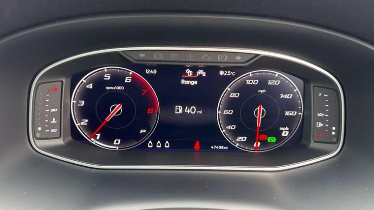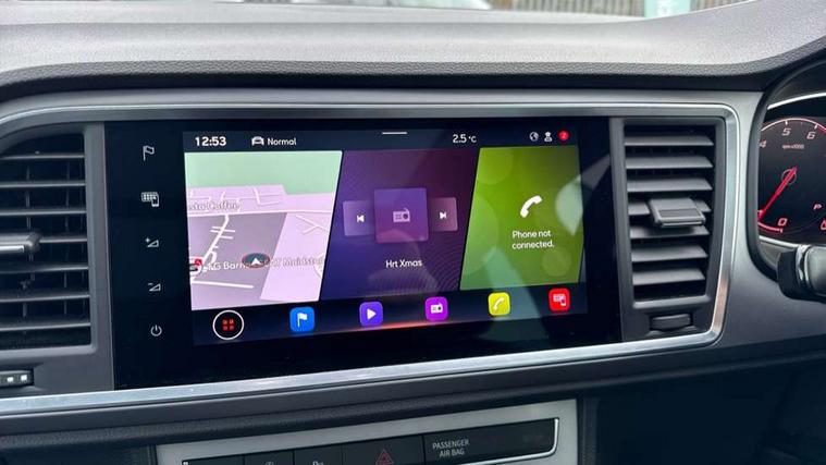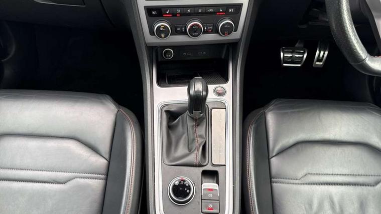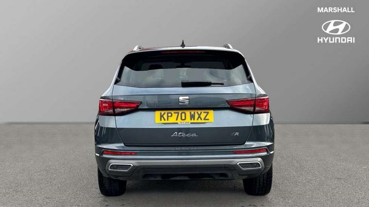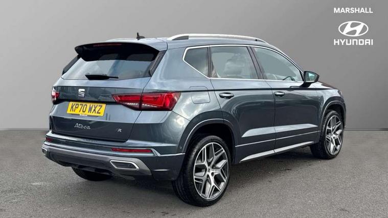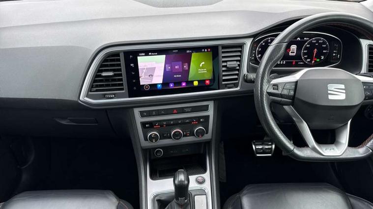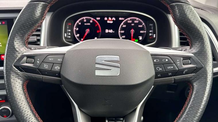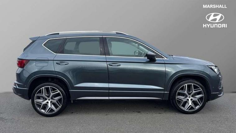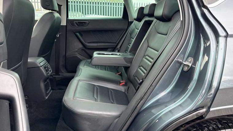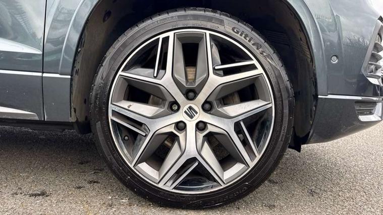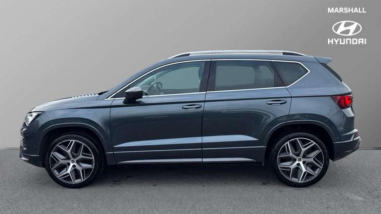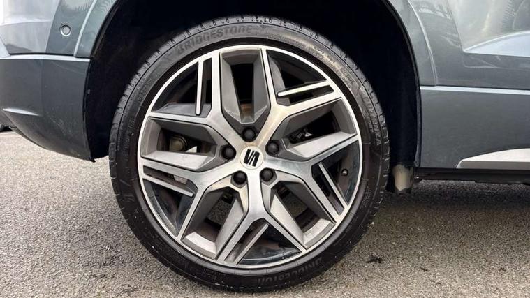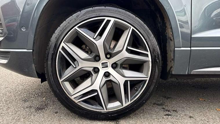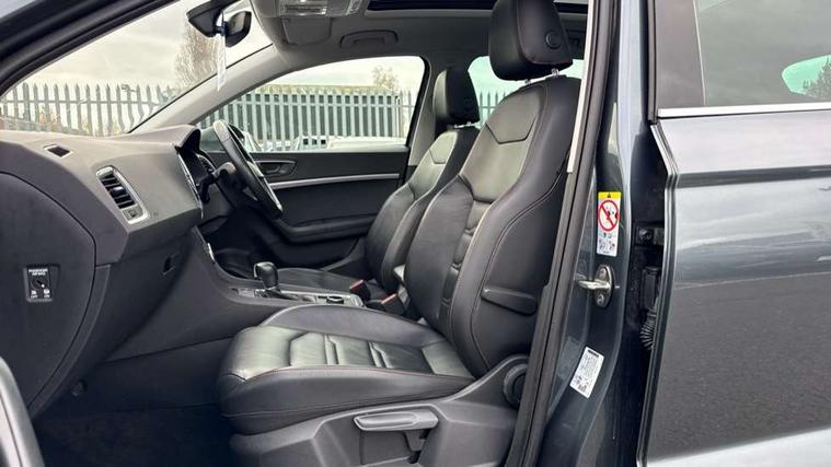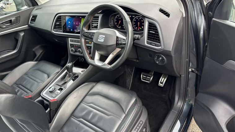 Cruise control system with speed limiter, Digital cockpit, Outside temperature gauge, Progressive power assisted steering, SEAT drive profile with driving experience button - Normal, Sport, Eco and Individual mode, gearshift, steering and throttle response, Self parking functionality (includes front and rear parking sensors), Trip computer, Wireless full link smartphone integration, Wireless phone charger, Steering wheel mounted audio/phone controls, Body colour bumpers, Body coloured wheel arch surrounds, Chrome roof rails, Chrome side window trim, Cosmo grey front grille frame, Dark tinted rear windows, Daytime running lights, Door mirrors with welcome light silhouette, Dynamic headlight range control with self adjusting whilst driving, Electric adjustable/heated/folding door mirrors, Front and rear electric windows, Full LED headlamps with lens and LED front fog lamps with cornering function, Illuminated aluminium front door sill, LED rear tail lights with dynamic indicators, Rear fog lights, Rear spoiler, Rear wash/wipe, Simulated exhaust pipes in chrome frame, 12V socket in front, 60/40 split folding rear seat, Aluminium pedals, Dual zone climate control, Electric adjustable driver seat with lumbar adjustment, Front and rear head restraints, Front centre armrest, Front seat back storage pockets, Heated front seats, Height adjustable passenger seats with lumbar adjustment, ISOFIX points in outer rear seats with top tether anchorage points, Leather steering wheel and gear knob, Leather upholstery with front sports seats, Multicoloured ambient lighting with LED interior illumination, Rear armrest and easy back seat release mechanism from boot, Steering wheel mounted gearshift paddles, Storage compartment in roof console for sunglass, Convenience pack - Ateca, Interior lighting pack - Ateca, Navigation system pack with DAB - Ateca, 3x3 point rear seatbelts, ABS, Traction control system (TCS), Electronic stability control (ESC) and Electronic differential lock system (XDS), Airbags - Driver and front passenger airbag with deactivation, front side, two curtain and driver's knee airbags, Electric parking brake with auto hold function, Front and rear seatbelt reminder, Front assist with autonomous emergency braking, Hill hold control, Tiredness recognition system, Traction control, Tyre pressure monitoring system, Alarm, Keyless entry, Locking wheel bolts, Chrome interior detailing, 19" Exclusive machined alloy wheels with decorative inserts 36/7 in cosmo grey,