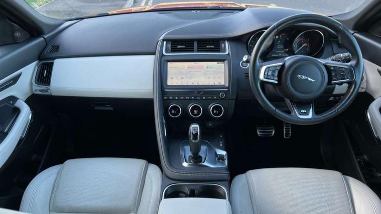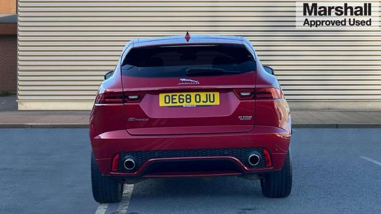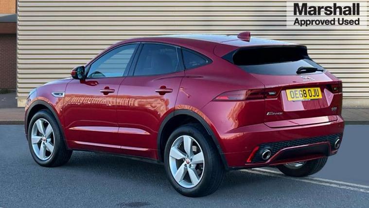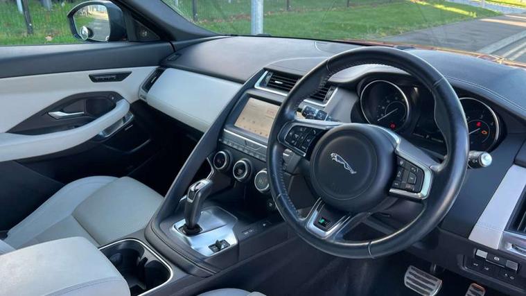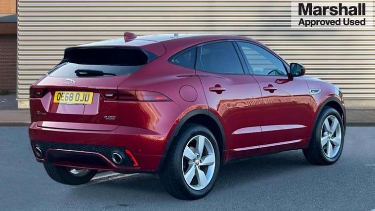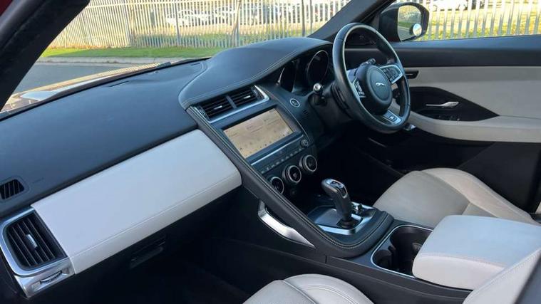 Driver condition monitor, Eco driving style assistant, Electric power assisted steering, InControl remote, InControl Touch navigation pro, Lane keep assist, Misfuelling protection device, Outside temperature gauge, Push button starter, Speed proportional steering, Start up sequence with movement in dials and lighting, Traffic sign recognition with adaptive speed limiter, Trip computer, Voice control system, Diesel particulate filter, Efficient Driveline, Passive suspension, AM/FM DVD MP3 radio, Bluetooth connectivity including audio streaming, DAB Digital radio, Dynamic volume control, InControl app, 3 flash lane change indicators, Approach Illumination, Auto dimming rear view mirror, Auto high beam assist, Automatic headlights, Body colour side cladding, Electric folding auto dimming and heated door mirrors with memory + Signature approach lamp, Electric front/rear windows with one touch/auto up/down, Front fog lights, Heated door mirrors, Heated front windscreen, Heated rear window with timer, Heated washer jets, Jaguar script and leaper, R Dynamic badge, R Dynamic body colour bumpers, Rain sensor windscreen wipers, Rear fog lights, Tailgate spoiler, Twin tailpipes with finishers, 12V power socket in rear, 2nd row 60/40 split/fold, 2nd row air vents, 3 seat bench in 2nd row, 4 Load area hooks, Black gearshift paddles, Centre armrest console, Centre headrest in row 2, Dual zone automatic climate control, Elasticated loadspace side strap, Front head restraints, ISOFIX on outer rear seats, JaguarDrive selector, LED lighting in overhead console, Loadspace cover, Loadspace lamp, Metal pedals, R branded leather steering wheel, Storage net in luggage compartment, Sunvisors with illuminated vanity mirrors, Tie down hooks in luggage area, Twin front covered cupholders, 3x3 point rear seatbelts, ABS, All surface progress control (ASPC), Customer configurable autolock, DSC - Dynamic Stability Control, Electronic brake force distribution, Electronic parking brake, Emergency brake assist, Front airbags with passenger seat occupant detector, Front and rear curtain airbags, Front and rear seatbelt reminder, Front side airbags, Hill start assist, Low friction launch, Power child locks, Torque vectoring brake, Tyre pressure monitoring system, Intrusion sensor and alarm, Locking wheel nuts,