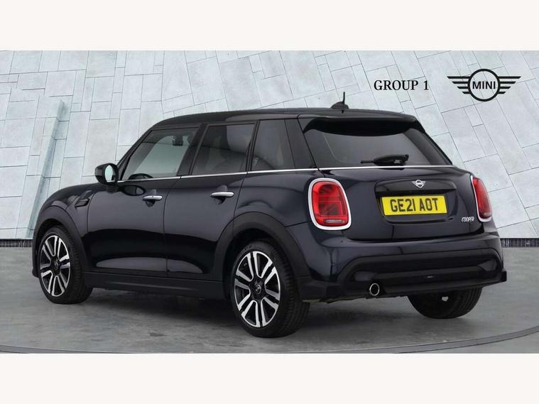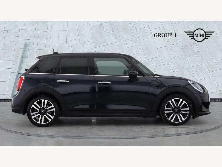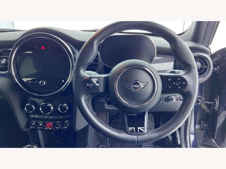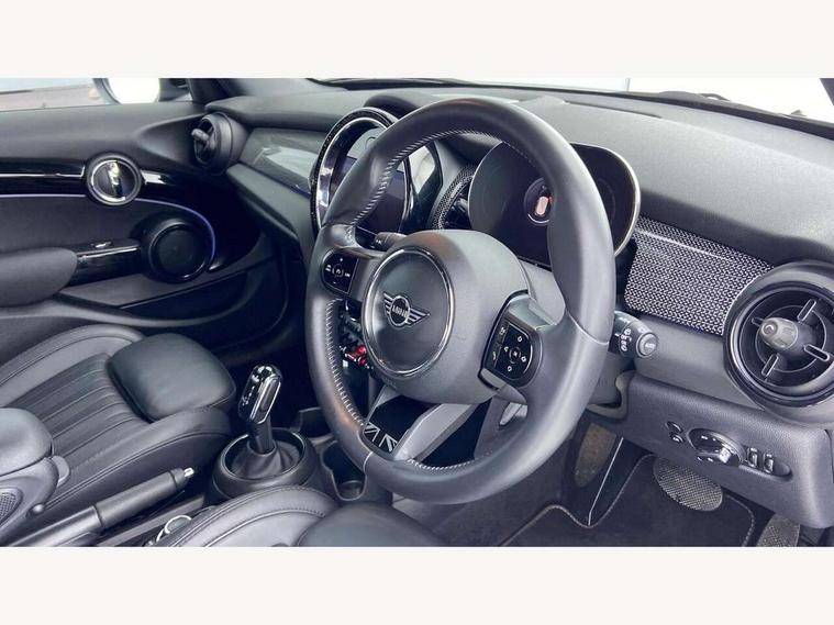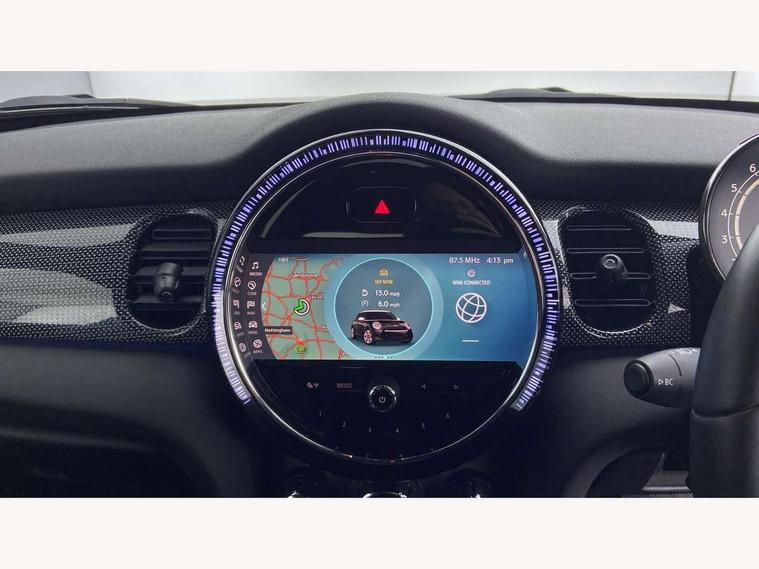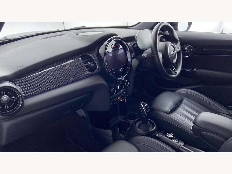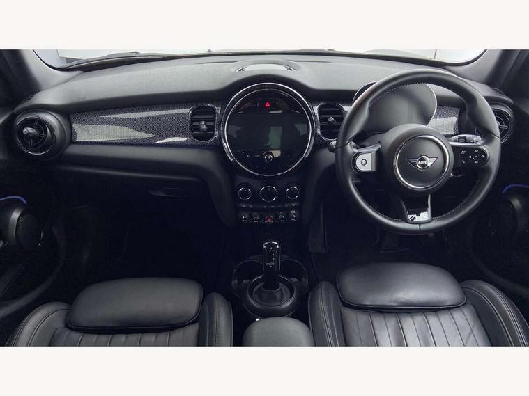 Automatic start/stop function with brake energy recuperation, Compatible mobile phone bluetooth with audio streaming, Cruise control with brake assist, Electro-mechanical speed dependant steering assistance, Flexible car sharing preparation, Instrument cluster, MINI Driving Modes - centre toggle switch to control driving setting (sport, mid and green), Mini E-call, MINI TeleServices, On board computer, Rear park distance control, Service interval indicator, Double Vanos system, Fully variable valve control, Gear change indicator display, High precision injection, Performance Control, Steptronic transmission with double clutch, 6 speakers in front door trims and underneath front seats, 8.8" touchscreen with LED ring, FM tuner and DAB digital radio, Automatic headlight activation switch, Body colour fuel filler cap, Chrome line exterior - radiator grille bars, tailgate handle, lower front grille grating and rear central fog-light, Dynamic brake lights, Electric front+rear windows, Heated rear window, Heated windscreen washer jets, LED headlight with closed ring and daytime driving lights, Metal door sill strips with MINI imprint, Model logo Cooper on right of tailgate, Rain sensor window wipers, Rear fog lights, Rear LED lights with union jack design, Rear window wiper, Side scuttle panel with integrated indicator, Sun/heat protection glass, White indicator lenses, 12V Accessory socket in centre console, 4 lashing eyes in luggage compartment, 60/40 split folding rear seat, Anthracite headliner including grab handles and clothes hooks, Carbon black colour line - Knee roll and door armrest, Chrome interior highlights, Chrome line interior - air vents, gear lever base, door handles and speakers in doors, Cupholders, Front and rear head restraints, Front and rear isofix with front passenger airbag deactivation, Glove compartment, Height and length steering column adjustment, Interior lighting with 12 different colours across the dashboard, underneath door bezel with illuminated laser-engraved design on central display, Leatherette gearshift lever and handbrake gaiters, LED reading lights, vanity mirror lights, front foot well light and spotlight on front seats, Manual air conditioning, Mechanical seat adjustment - forward/back & backrest for front seats and driver seat height adjust, MINI yours badge on exterior pillar, Multifunction steering wheel, Storage compartments in doors, Sunvisors with vanity mirrors, Tool kit, Velour floor mats, Walknappa leather steering wheel with grey seam and MINI Yours badge on Piano Black lower steering wheel spoke, 3 point seatbelts on all five seats, 6 Airbags - front, side, head and seat belt tensioners, Anti-lock braking system (ABS), DSC - Dynamic Stability Control, Front and rear disc brakes, Hill start assist, Single tone fanfare horn, Tyre pressure monitoring system, Alarm system with tilt sensor, monitoring doors, bonnet interior and tailgate, Electronic vehicle immobiliser, Start/stop toggle with keyless go,