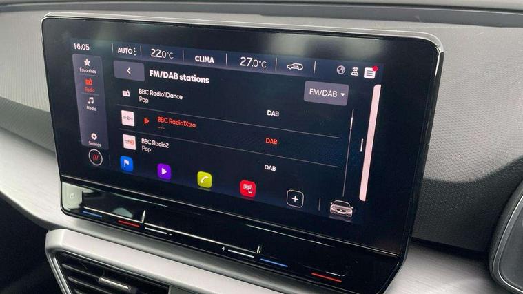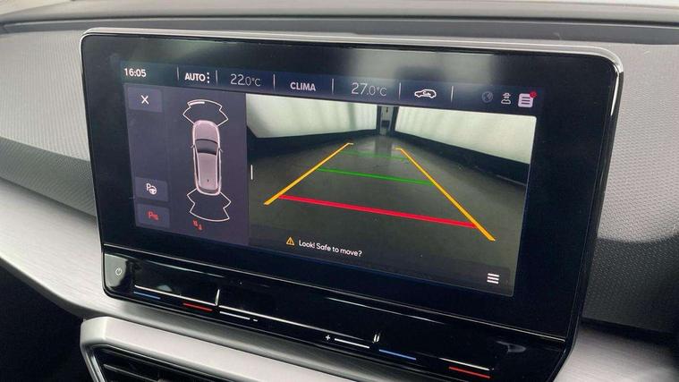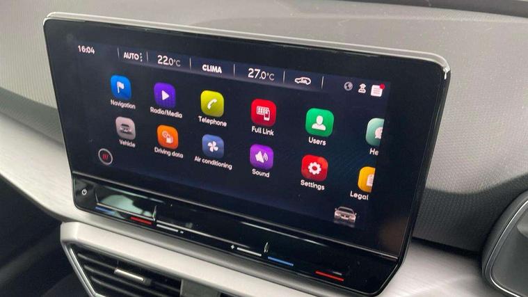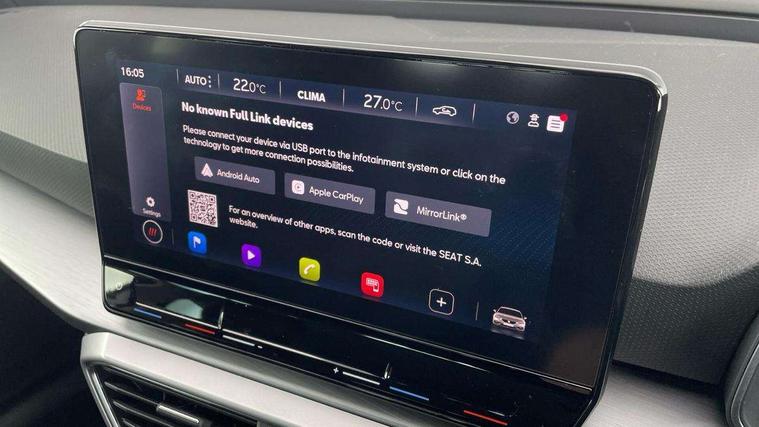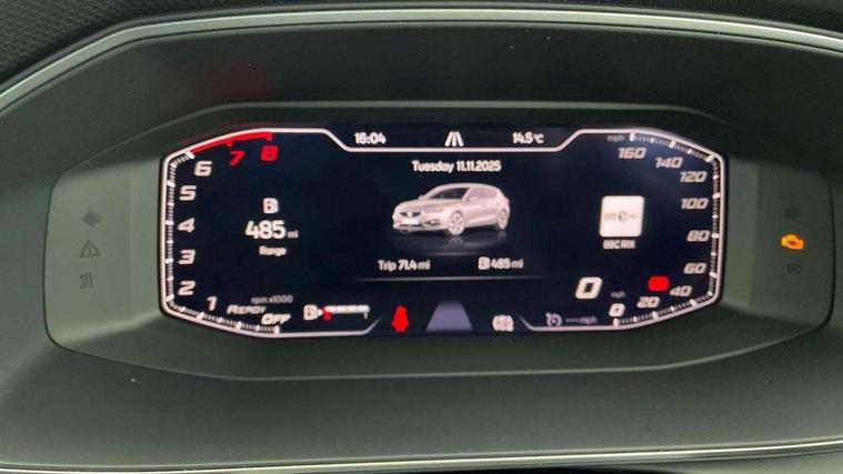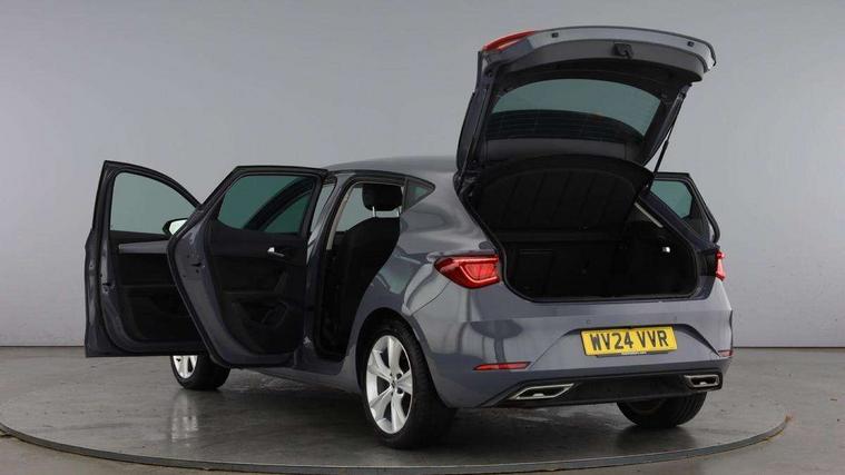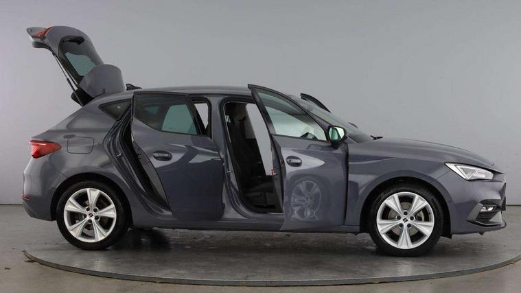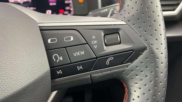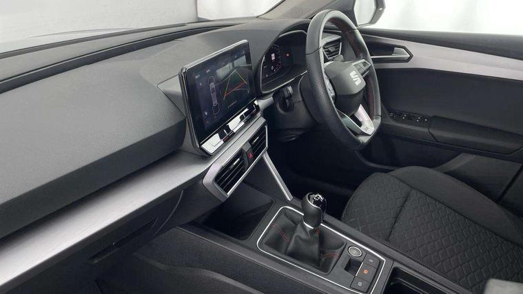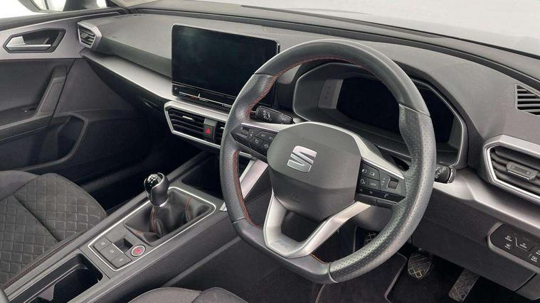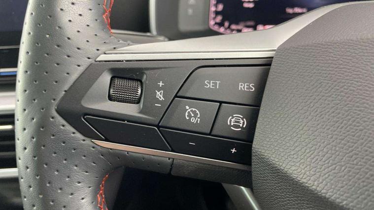 Digital cockpit, E-call, Four x USB Type C ports, Front assist with forward collision warning braking reaction to vehicles, pedestrians and cyclists, Full link smartphone integration with Mirror Link, wireless Apple CarPlay and wired Google Android Auto, Lane assist, Lockable tailgate, Park assist (inc front/rear parking sensors), Power assisted speed sensitive electro-mechanical steering, Rear view camera, RPM, trip computer, outside temp gauge, instrument light brightness, low fuel warning light, lights on reminder, gearshift indicator, SEAT drive profile with 4 modes (Eco/Normal/Sport/Individual), throttle response, Service interval indicator, Start/stop system with regenerative braking, Sports suspension, XDS electronic differential lock and dynamic traction support, 7 speakers, Auxiliary input socket, Auto dimming rear view mirror, Body colour door handles, Body coloured bumpers, Cosmo grey exterior mirrors with integrated LED indicators, Dark tinted rear windows, Dynamic headlight range control, Electric front/rear windows, Electrically adjustable, heated and folding door mirrors, FR sports bumper, Illuminated front door sill, LED front fog lamps, LED Headlights with dynamic turn signals, LED tail lights and rear fog lights with rear coast to coast lighting, Rear side wing doors, Rear wash/wipe, Separate daytime running light with automatic headlight control and coming home feature, Third brake light, Welcome light silhouette from exterior mirrors, Windshield wiper intermittent control with light/rain sensor, 12v power point in centre console, 3 seat bench in 2nd row, 60/40 split rear bench seat with armrest, Ambient lighting with glovebox, footwell and single monocolour, Driver/passenger manual seat height adjustment, Dust/pollen filter, Flat bottomed perforated leather steering wheel with red stitching and FR logo and leather gear stick, Folding boot cover, Front and rear height adjustable headrests, Front and rear reading lights X 4, Front centre armrest, Front seatback storage pockets, Height/reach adjust steering wheel, ISOFIX points in outer rear seats with top tether anchorage points, Luggage tie-down hooks, Lumbar adjustment for front seats, Single front passenger seat, Sunvisors with covered illuminated mirror, Three zone climate control, Two tone cloth upholstery, Media system plus with navigation - Leon, 3 point seatbelts on all rear seats, ABS, Brake control system - ESC and brake booster, Child proof door locks, Driver and front passenger airbags with front passenger airbag de-activation, front side and curtain airbags, Electronic parking brake, Extended safety system - seat belt tensioner, window closure and hazard lights, Hill hold control, Rear disc brakes, Seat belt reminder for front and rear seats, Tiredness recognition system, driver alert system, Tyre pressure monitoring system, Anti theft alarm system with interior monitoring in cab, backup horn and towing protection, KESSY Go (Keyless start), Locking wheel bolts, Wireless phone charging, Chrome interior detailing, 17" Dynamic Bi-spoke alloy wheels with 91W tyres, Tool kit,