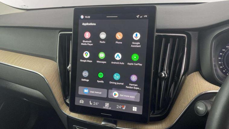 11.2" centre console touch screen, 12.3" Progressive Driver Display, 360 degree surround view parking camera with side proximity sensors, Adaptive cruise control, Adjustable steering wheel force, Android auto (Wired), Apple carplay (wired), Bluetooth handsfree system, Driver alert control with lane keeping aid, Emergency services call system, Front and rear park assist, Google Automotive Services, Intelligent speed assistance, Oncoming Lane Mitigation, PAS, Power operated tailgate with handsfree opening and closing, Service interval indicator, Speed limiter, Speed sensitive steering, Trip computer, Volvo cars services with app, Volvo on call with App, Wireless/Inductive Mobile Phone Charging, 8 speed automatic transmission with start/stop + manual change functions, DAB Digital radio, Premium Sound by Harman Kardon, dirac unison, dolby pro logic II surround sound, 13 speakers/600W output and fresh air subwoofer, Steering wheel remote infotainment controls, Adaptive brake lights with high level LED brake lights, Auto dimming interior + exterior mirrors, Automatic headlight levelling system, Automatic LED Headlights + Active high beam incorporating daytime running lights, Electric adjustable/heated/auto power folding door mirrors, Electric front+rear windows, Front aluminium tread plates, Heated front windscreen, High gloss black door mirrors, High gloss black front and rear bumper decoratives, High gloss black mesh front grille with high gloss black surround, Home safe and approach lighting, Integrated roof rails in high gloss black, Puddle lights, Rain sensor with automatic windscreen wiper activation, Rear side wing doors, Rear wiper, Roof antenna, Roof spoiler, Tinted windscreen, Visible VIN plate, 12V socket in front tunnel console and luggage compartment, 3 seat bench in 2nd row, 3 Spoke tailored steering wheel with chrome trim, 4 Zone electronic climate control, A-pillar parking ticket holder, Air purifier particulate matter (PM) 2.5 filter, B Pillar ventilation, Bright metal luggage scuff plate, Centre console cupholders and storage, Charcoal floor mats, Front and rear courtesy lights, Front and rear door pocket illumination, Front cupholder illumination, Front footwell illumination, Front reading lights, Front seat cushion extensions, Glovebox compartment with illumination, Head restraints for all seats, Heated front seats, Heated steering wheel, Height/reach adjustable steering column, Illuminated luggage compartment, Illuminated vanity mirrors + ticket holder, Inner door release handle illumination, ISOFIX attachment on outer rear seats, Load cover, Load protection net, Multi directional lumbar support, Power driver seat with memory + exterior mirrors memory, Power height adjustable passenger seat, Power passenger seat with memory, Quilted nordico leather upholstery, Rear armrest with cupholder, Rear footwell and front and rear side step illumination, Rear reading lights, Rear seat concealed storage, Single front passenger seat, Tailgate illumination and ambient door lighting, Underfloor stowage compartment, Versatile split folding rear seat - 60/40, Driver assist pack without Adaptive cruise control - XC60, 5 three point seatbelts, City safety with steering support with Pedestrian + cyclist + front collision warning with full auto brake and rear auto brake, Drivers knee airbag, Dual stage driver/passenger airbags, Electronic parking brake with auto hold, First aid kit, Front seats SIPS airbags, Hill descent control - Off-road drive mode, Hill start assist, IC (Inflatable Curtains) - Full Length, Passenger airbag cut-off device, Power child locks on rear doors, Road sign information display, Run off Road Mitigation, Run off Road Protection, Seatbelt reminder and pretensioners, SIPS (Side Impact Protection System), Slippery road and hazard light alert, Stability and Traction Control with Spin control, Engine Drag Control and Corner Traction Control, Tyre pressure monitoring system, Vehicle deceleration control with Anti-lock Brake System, Electronic Brake Distribution and Emergency Brake Assist, Warning triangle, WHIPS whiplash protection system - front, Anti-theft alarm including immobiliser/volume sensor + level sensor, Key integrated remote control central locking + fuel flap with deadlocking system and auto open/close power windows, Keyless Drive (includes Keyless Entry and Keyless Start), Locking wheel nuts, Private locking for tailgate, Summer tyres,