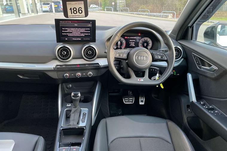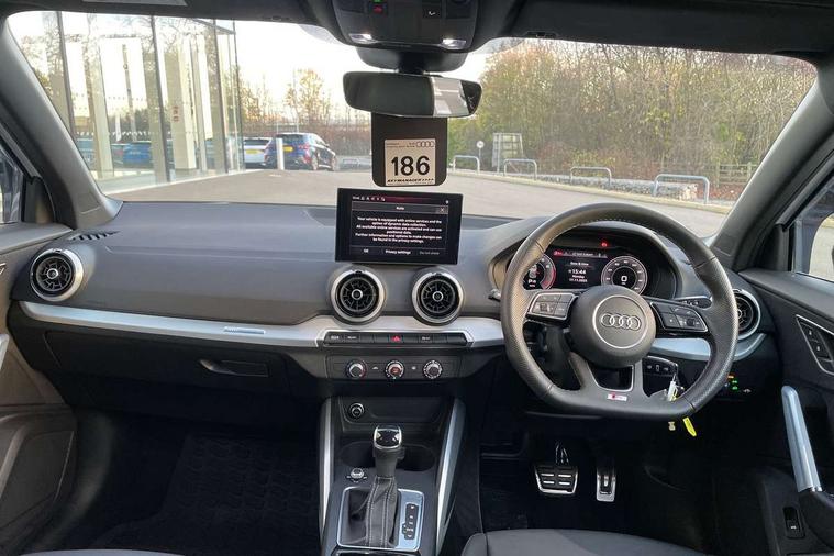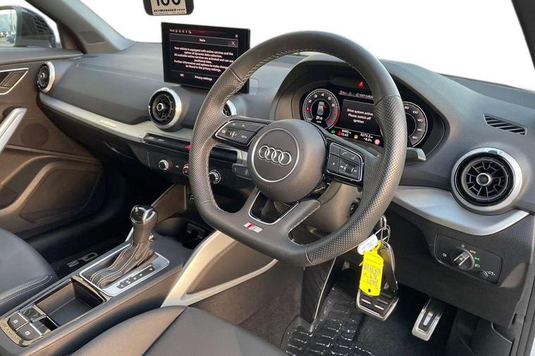 3D map display, Audi connect navigation and infotainment includes innovative services, Audi connect remote and control connects your vehicle to your smartphone, Audi drive select: S tronic - power steering assistance + engine + gearshift (modes: comfort, auto, dynamic, efficiency, individual), Audi smartphone interface - Apple carplay/Android Auto, USB connect, 2xSDXC card readers, voice control for navi, telephone, music and 3rd party apps, Audi virtual cockpit, Automatic start/stop system with recuperation, Bluetooth interface includes bluetooth audio streaming, Cruise control, Distraction and Fatigue warning, E-call, Jukebox hard drive memory for music (10GB), Lane departure warning, MMI navigation plus with 8.8" touchscreen, Natural voice recognition, Power operated tailgate, Progressive steering, Rear parking sensors, Sport suspension, 6 passive loudspeakers, DAB Digital radio, USB type C port, Audi beam, Auto dimming rear view mirror, Black window trims, Bumper in full body colour paint finish, Electrically adjustable, folding, auto dimming and heated door mirrors with integrated LED side indicators, Front windscreen with grey tinted sunband, LED daytime running lights, LED headlights with dipped beam, high beam, position lights, indicators, LED rear lights, LED third brake light, Privacy glass - dark tinted rear and rear side windows from B-pillar backwards, Rear side wing doors, Rear wiper, Variable front intermittent wipers, Wheel arch trims in manhattan grey, 12V socket in front, 3 seat bench in 2nd row, 3 spoke flat bottomed multi-function leather sport steering wheel with gear shift paddles, 4-way electric lumbar support for front seats including manual seat height adjustment for both front seats, 60/40 split folding rear seat bench, Black carpets, Black cloth headlining, Front and rear head restraints, Front centre armrest, Front sport seats, Front/rear floor mats, Height/reach adjust steering wheel, Illuminated door sill trims with S logo, ISOFIX child seat mounting in front passenger and rear outer seats, Manual air conditioning, Single front passenger seat, Stainless steel pedals, Black styling pack - Q2, 3x3 point rear seatbelts, 6 airbags - Front, curtain and front side airbags, Electromechanical parking brake, Electronic stabilisation control including ABS, ASR and EDL, Front passenger airbag deactivation, Hill hold assist, Pre-sense front with pedestrian recognition, Seatbelt monitoring, Tyre pressure warning light with visual and acoustic warning, Warning triangle and first aid kit, Anti theft alarm, Anti theft wheel bolts, Electronically operated child locks, Remote central door locking, Aluminium interior element, Black dashboard, Gloss black centre console, Matt brushed aluminium trim inlays, Tool kit,