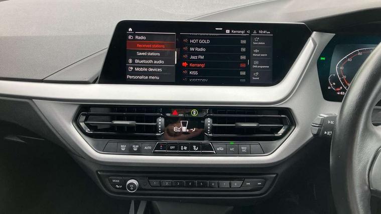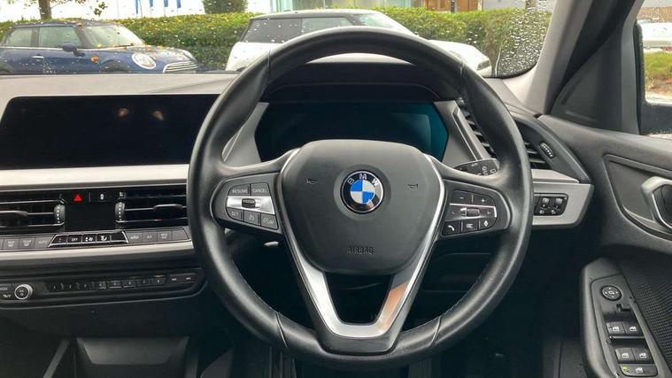 Active guard plus, Attentiveness assist, Bluetooth / WiFi interface for wireless connection of mobile terminal devices and audio streaming, BMW ConnectedDrive online services, BMW Teleservices, Check Control warning system for monitoring of lights and door/luggage compartment open warning, Cruise control with brake assist, Eco pro mode, Electric power steering with Servotronic steering optimised at all speed ranges, Front axle single joint with specific axle kinematics to minimise drive influences on steering + provide increased rigidity agile driving behaviour, Integrated owners handbook, Lane departure warning system, Oil sensor for level and grade, On board computer, Optimum shift indicator, Personal Profile, Pull away assistant, Rigidly mounted rear subframe - Multi link construction with separate spring / damper configuration and excellent driving characteristics, Speed limit Info including no-overtaking indicator, Speed limiter, Aluminium lightweight construction, Anti roll bar front and rear, Balancer shaft, Double VANOS twin scroll turbocharging system, Drive Performance Control, Electronic differential lock, High precision injection, Petrol Particulate Filter, Suspension with twin tube gas filled shock absorbers with degressive characteristic curve, VALVETRONIC engine management, DAB Digital radio, Auto dimming rear view mirror, Automatic windscreen wipers and automatic headlight, Body colour door handles, Body colour mirror caps, Chrome exhaust twin tailpipes round 90mm in left, Direction indicator side lights in exterior mirrors, Fading support, Follow me home headlights, Front and rear bumper system with replaceable deformation elements, Front and rear electric windows with open and close fingertip control, anti trap facility and comfort closing, Front door sill finishers in black plastic with BMW designation, Green tinted heat protection glazing, Heated, electrically adjustable exterior mirror aspheric on driver side, convex on passenger side, High level third brake light, Integrated front windscreen with washer jets, Kidney grille with chrome frame with 14 High-gloss Black struts, LED daytime running lights, LED eyebrow turn indicators, LED front fog lights, Lightweight engineering, Manual headlight beam throw control, Manual headlight levelling, Matt black air guide grilles, Matt black roof moulding, B pillar finisher and wheel arch trim, Matt black window frame, Matt black window recess finisher, Model designation on electric bootlid, Nearside reverse light in rear light cluster, Preparation for high beam assistant, Rear fog lights, Rear side wing doors, Rear window wiper, Shark fin antenna, Trailer stabilisation logic, Visible VIN plate, Welcome lighting, 12V power socket in front centre console with blanking plug, 3 rear seat head restraints, 3 seat bench in 2nd row, 3 spoke sports leather steering wheel in black leather with black stitching and decorative finisher in pearl chrome, Child seat ISOFIX attachment for two outer rear seats and front passenger seat with anchorage points, Conditioned based service, Folding rear clothes hook, Four grab handles integrated in roof lining, Front and rear door pockets with bottle holders, Front and rear side armrest integrated into door trim, Front armrest, Glove compartment, Height adjustable front head restraints, Luggage compartment for bag hooks on left and right, foldable luggage compartment liner and two lashing eyelets, Manual adjust steering wheel, Multi-function controls for steering wheel, Single front passenger seat, Single zone automatic air conditioning, Storage compartment in centre console, Sun visors with vanity mirrors and insert tab, Two front centre console cupholders, Velour floor mats, Additional storage compartment pack with code 493 -1 series, BMW live cockpit professional pack- 1 Series, Connected pack professional - 1 Series, Interior lights pack - 1 Series, 2 tone horn, 3 point seatbelts on all seats, front pyrotechnic belt tensioners, stopper and belt force limiters, rear coded belt buckles, Airbags - Front driver/passenger, front and rear curtain head protection, front side, manual deactivation of front passenger airbag, Anti lock braking system (ABS) with brake assist, BMW emergency call, Brake drying, Braking readiness, Child proof locking system in rear door, City braking function, Comfort modes, Cornering brake control, Crash sensor activating central locking release, hazard warning lights, fuel cut off, interior lighting + activation of safety battery terminal clamp, Driver and front passenger seat belt security check, Dynamic stability control + (DSC+), Dynamic Traction Control - DTC, Electrically operated hand brake including automatic hold function, Front and rear disc brakes, Seatbelt warning, Side impact protection, Tyre pressure monitoring system, Warning triangle and first aid kit, Central locking switch for all doors, fuel filler cap and luggage compartment, Deadlocking function system to all doors, Drive away locking system on all doors and luggage compartment with de-activated in iDrive settings, Locking wheel bolts, Remote central locking with two Integrate key, one button for opening and closing all lock, open and close window, button for open luggage compartment, Start/stop button illuminated in centre console with keyless engine start and auto start stop deactivation button, Thatcham Cat.1 alarm and immobiliser, Wheel slip limitation close to the actuator (ARB), Quartz Silver matt interior trim, Electrically powered 12V compressor, Reduced rolling resistance tyres,
