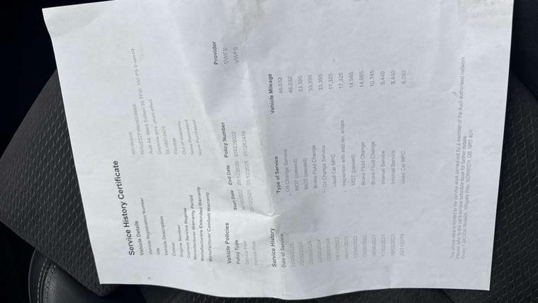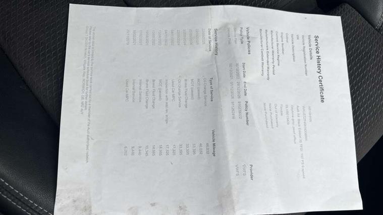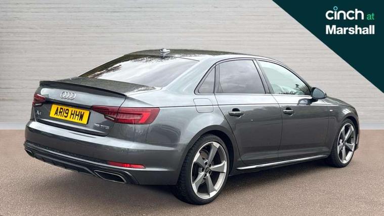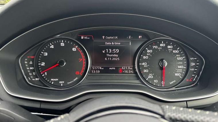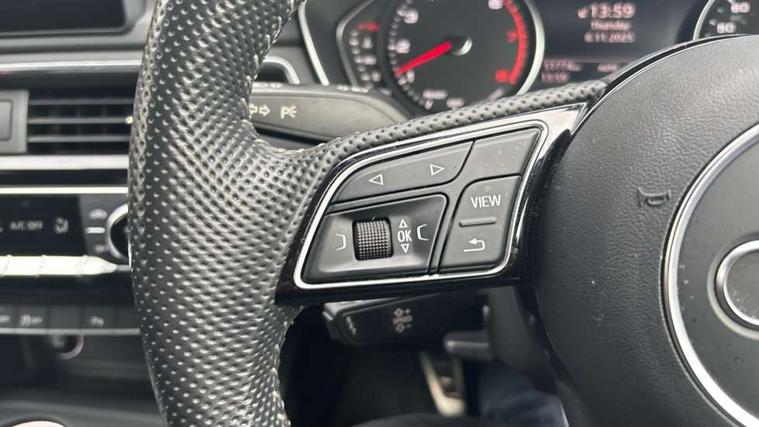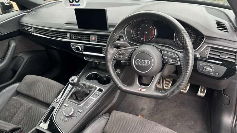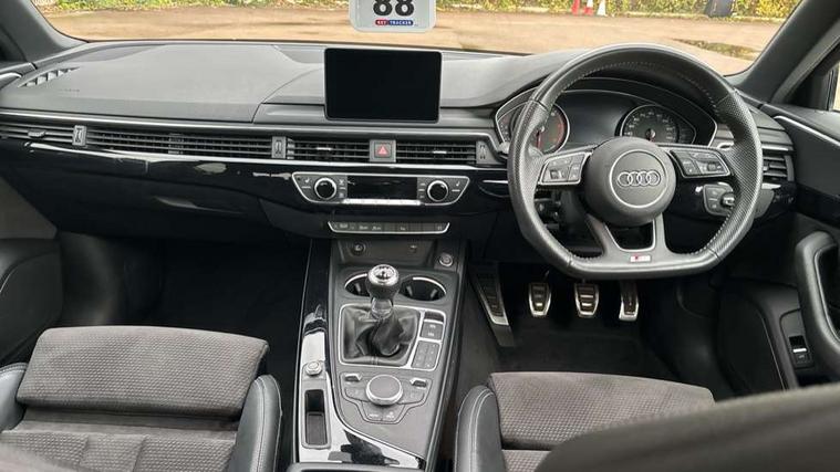 7" Colour driver information system, Audi connect safety and service (e-call), Audi drive select, Audi parking system plus with front and rear sensors, Audi Pre sense collision avoidance, Bluetooth interface, Electric boot release, Electromechanical power steering, MMI SD card Navigation, Service interval indicator, Stop/start button, Voice control system, 54 litre fuel tank, 2 USB interfaces and Aux-In jack, DAB digital radio module, Acoustic windscreen, Air inlets in titanium black, Auto dimming rear view mirror, Automatic headlights + automatic windscreen wipers, Blue tinted glass, Body colour bumpers, Body colour door handles, Chrome rolled exhaust, Chrome tailpipe finisher, Electric front windows, Electric rear windows, Headlight range control, High beam assistant, High gloss black door mirrors, High gloss black triangular aperture at rear door, LED daytime running lights, LED indicators in door mirrors, Privacy glass with front acoustic glazing, Radiator grille and frame in Titanium Black, Rain and light sensors, Rear diffuser in Twilight grey matt, S Style rear spoiler, Titanium black front and rear air intakes, Titanium black window surround, 3 spoke flat bottom high multi-function leather steering wheel, 3 zone climate control, 4 way electric lumbar support for driver and front passenger, 40/20/40 split folding rear seats with rear centre armrest, Black cloth headlining, Contrast stitching on seats, steering wheel and gear lever gaiter, Front centre armrest, Front headrests, Front/rear floor mats, Height and reach adjustable steering wheel with full size airbag, Illuminated door sill finishers, Isofix child seat preparation for front passenger/outer rear seats inc passenger airbag deactivation, Jack and tool kit, Luggage compartment carpet, Perforated leather gearknob, Rear headrests, Stainless steel foot rest, Stainless steel pedals, Sunvisors with vanity mirrors, Top tether anchor plate for isofix child seat, Non Smokers pack, S line exterior styling pack - A4 Saloon, 3 point seatbelts on all rear seats, Adaptive driver and front passenger airbags, Electromechanical parking brake, Electronic stabilisation control including ABS, ASR and EDL, Front head airbags, Front seatbelt pretensioners + load limiters, Front side airbags, Multi-Collision braking, Pop-up bonnet for pedestrian protection, Seatbelt warning, Traction control, Tyre pressure warning, Variable restraint system, Warning triangle and first aid kit, Anti theft alarm, Keyless Start, Locking wheel bolts, Remote central locking, Thatcham category 1 alarm + immobiliser, MMI radio plus with smartphone interface, Piano black finish inlay, Tyre repair kit,
