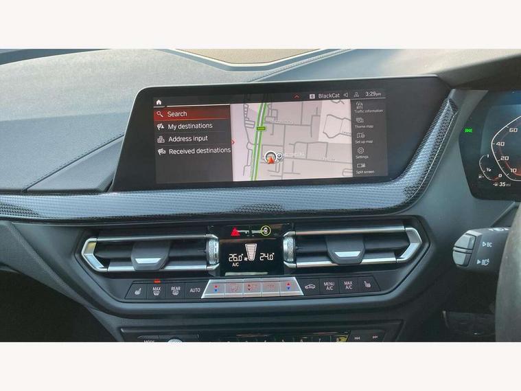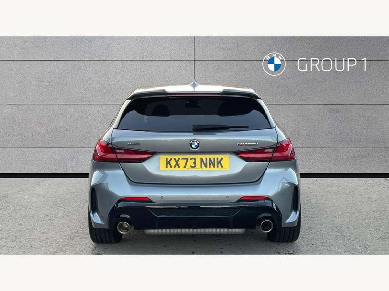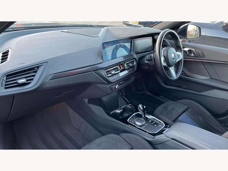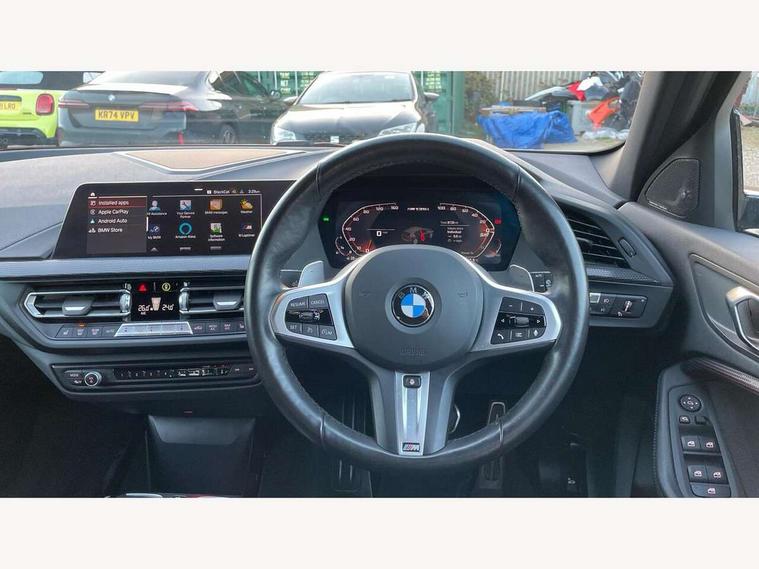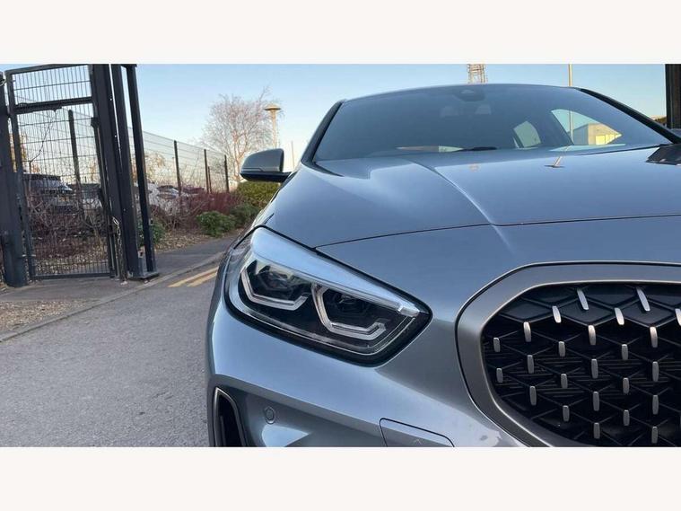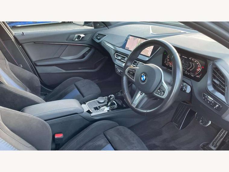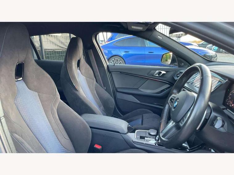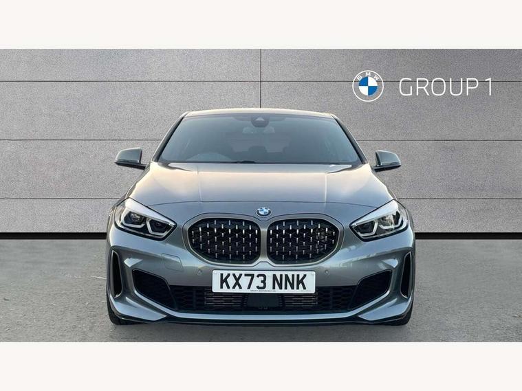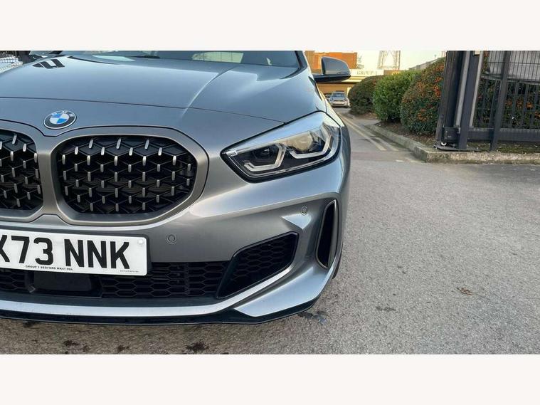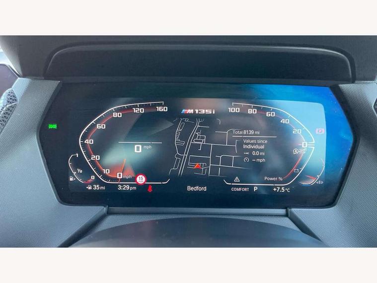 Active guard plus, Attentiveness assist, BMW ConnectedDrive online services, BMW Teleservices, Check Control warning system for monitoring of lights and door/luggage compartment open warning, Cruise control with speed limiter, Eco pro mode, Electric power steering, Electro hydraulically controlled multi-plate clutch transfers drive to rear axle and with power take-off device located on the front differential., Energy efficient operating strategy, Front axle single joint with specific axle kinematics to minimise drive influences on steering + provide increased rigidity agile driving behaviour, Gearshift time display in manual mode, Integrated owners handbook, Lane departure warning system, M Sports steering with M135i xDrive specific settings, Oil sensor for level and grade, On board computer, Optimum shift indicator, Personal Profile, Pull away assistant, Rigidly mounted rear subframe - Multi link construction with separate spring / damper configuration and excellent driving characteristics, Speed limit Info including no-overtaking indicator, Sporty fast gear shifting in sport mode, Aluminium lightweight construction, Anti roll bar front and rear, Balancer shaft, Double VANOS, Drive Performance Control, Eight speed sport automatic transmission with gearshift paddle switches, Electronic differential lock, Electronic selector lever, Engine cover with M performance designation, High precision injection, Larger fuel tank capacity (50 litres), Launch control, M135i specific heavily de-throttled engine intake air guide, M135i specific high-performance cooling package, M135i specific larger turbocharger with integrated divert-air valve, Petrol Particulate Filter, Twin tube gas filled shock absorbers with degressive characteristic curve, VALVETRONIC engine management, Variable, stepless and infinitely adjustable distribution of drive torque between the front and rear axles, xDrive intelligent all wheel drive with M135i specific reinforced components, DAB Digital radio, Auto dimming rear view mirror, Automatic headlight beam throw control, Automatic windscreen wipers and automatic headlight, Body colour door handles, Body colour roof trims, Cerium grey exterior mirror caps, Direction indicator side lights in exterior mirrors, Electrically adjustable exterior mirror with mirror adjustment switch on drivers armrest and aspheric on driver side, convex on passenger side, Exhaust tailpipe, Cerium Grey with bevelled finish - twin, round 100mm, left and right split, Fading support, Folding side mirrors with auto dimming/folding wing mirrors with auto dimming, Follow me home headlights, Front and rear bumper system with replaceable deformation elements, Front and rear electric windows with open and close fingertip control, anti trap facility and comfort closing, Front door sill finishers with M135i designation, Green tinted heat protection glazing, High gloss shadowline window frame, Recess cover mirror frames and B/C pillar embelisher trim, High level third brake light, Integrated front windscreen with washer jets, Kidney grille frame in Cerium Grey with Mesh design, LED daytime running lights, LED eyebrow turn indicators, Lightweight engineering, M logo designation side in cerium grey, M Performance exhaust system with valve control and minimised exhaust back pressure, M Performance specific setup, M Sport spoiler, Matt black air guide grilles, Matt black wheel arch trim, Model designation on electric bootlid includes xDrive designation for M135i xDrive, Nearside reverse light in rear light cluster, Preparation for high beam assistant, Rear fog lights, Rear side wing doors, Rear window wiper, Reinforced crank drive, new pistons and adapted con rods, Shark fin antenna, Trailer stabilisation logic, Visible VIN plate, Welcome lighting, 12V power socket in front centre console with blanking plug, 3 rear seat head restraints, 3 seat bench in 2nd row, 3 spoke sports leather steering wheel with black leather and stitching, pearl chrome decorative finish, specific M Badge, Anthracite headlining, Black boot net with lashing eyes, Cargo function on 2nd seat row, Child seat ISOFIX attachment for two outer rear seats and front passenger seat with anchorage points, Conditioned based service, Driver and front passenger backrest net on rear, Driver and front passenger seat heating, Driver side folding compartment in instrument panel, Folding rear clothes hook, Four grab handles integrated in roof lining, Front and rear door pockets with bottle holders, Front and rear side armrest integrated into door trim, Front armrest, Front M sports seats, Glove compartment, Height adjustable front head restraints, Luggage compartment for bag hooks on left and right, foldable luggage compartment liner and four lashing eyelets, Manual adjust steering wheel, Multi-function controls for steering wheel, Single front passenger seat, Storage compartment in centre console, Storage compartment in luggage compartment, Stowage of the parcel shelf in luggage compartment trim, Sun visors with vanity mirrors and insert tab, Two front centre console cupholders, Two zone automatic air conditioning, Type C two USB ports in rear centre console, Velour floor mats, Additional interior lighting pack - 1 Series M135i, BMW live cockpit professional pack- 1 Series, Connected pack professional - 1 Series, Interior lights pack - 1 Series, M Sport exterior styling aerodynamics pack - 1 Series 135i, 2 tone horn, 3 point seatbelts on all seats, front pyrotechnic belt tensioners, stopper and belt force limiters, rear coded belt buckles, Airbags - Front driver/passenger, front and rear curtain head protection, front side, manual deactivation of front passenger airbag, Anti lock braking system (ABS) with brake assist, BMW emergency call, Brake drying, Braking readiness, Child proof locking system in rear door, City braking function, Comfort modes, Cornering brake control, Crash sensor activating of airbags, Unlocking doors, hazard warning lights, interior light