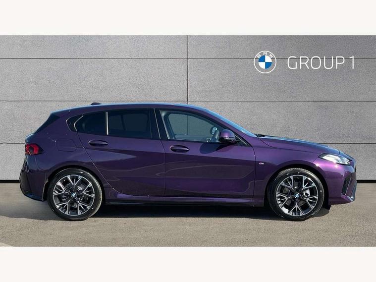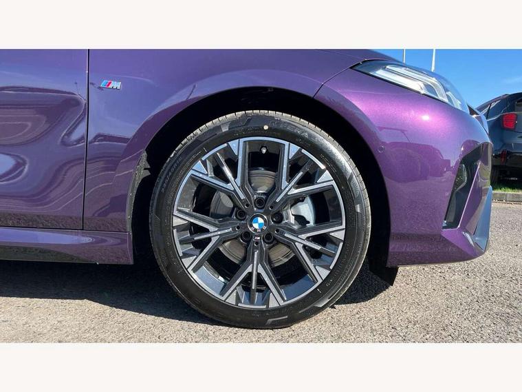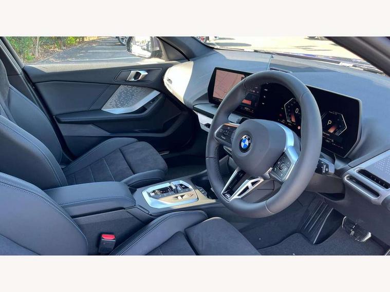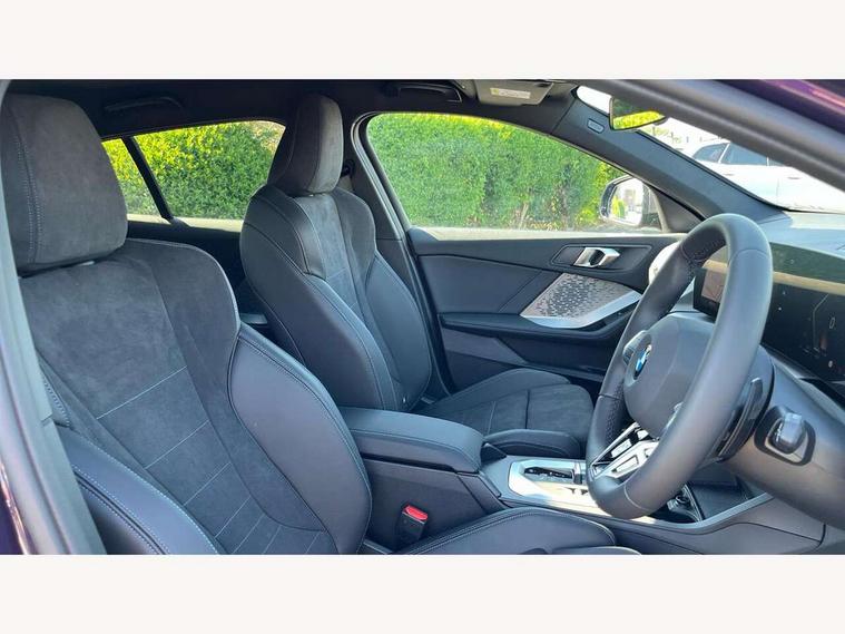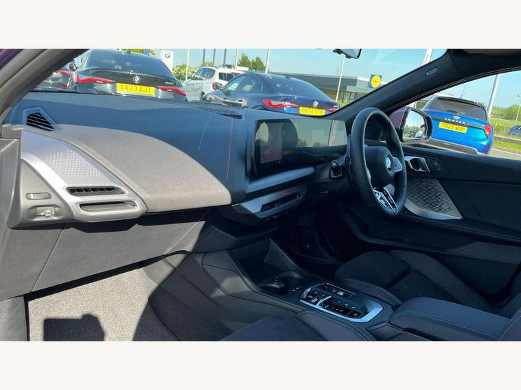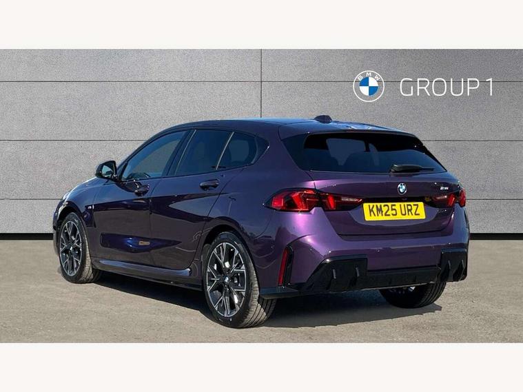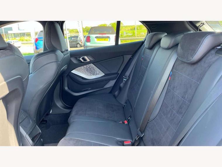 Active guard plus, Attentiveness assist, Bluetooth / WiFi interface for wireless connection of mobile terminal devices and audio streaming, BMW ConnectedDrive online services, BMW Live cockpit plus, BMW Teleservices, Check Control warning system for monitoring of lights and door/luggage compartment open warning, Eco pro mode, Electric power steering with Servotronic steering optimised at all speed ranges, Evasion assistant, Flat airvents in instrument panel with adjustable slats, Front and rear parking sensors, Front axle single joint with specific axle kinematics to minimise drive influences on steering + provide increased rigidity agile driving behaviour, Gearshift time display in manual mode, Integrated owners handbook, Left turn warning with brake function, My modes (Personal / Efficient / Sport), Oil sensor for level and grade, On board computer, Optimum shift indicator, Park assist including reversing assistant, lateral parking aid and reversing assist camera, Personal e-SIM, Personal Profile, Pull away assistant, Rigidly mounted rear subframe - Multi link construction with separate spring / damper configuration and excellent driving characteristics, Speed limit Info including no-overtaking indicator, Speed limiter, 49 litre fuel tank, Aluminium lightweight construction, Anti roll bar front and rear, Balancer shaft, Double VANOS twin scroll turbocharging system, Drive Performance Control, Electronic differential lock, Electronic selector lever, High precision injection, M Adaptive suspension, Petrol Particulate Filter, Steptronic transmission with double clutch, Twin tube gas filled shock absorbers with degressive characteristic curve, VALVETRONIC engine management, DAB Digital radio, Auto dimming rear view mirror, Automatic windscreen wipers and automatic headlight, Body colour door handles, Body colour mirror caps, Body colour roof trims, Chrome 'M' logo side designation, Chrome exhaust twin tailpipes round 90mm in left, Chrome kidney grille frame with Satin Aluminium struts, Direction indicator side lights in exterior mirrors, Electrically adjustable exterior mirror with mirror adjustment switch on drivers armrest and aspheric on driver side, convex on passenger side, Exterior M sport design elements, Fading support, Folding side mirrors with auto dimming/folding wing mirrors with auto dimming, Follow me home headlights, Front and rear bumper system with replaceable deformation elements, Front and rear electric windows with open and close fingertip control, anti trap facility and comfort closing, Front bumper panel with M specific design in vehicle colour with inserts in black high gloss, Front door sill finishers in black plastic with M designation in metallic look, Green tinted heat protection glazing, Heated rear window, High gloss black exterior mirrors, High gloss shadowline window frame, Recess cover mirror frames and B/C pillar embelisher trim, High level third brake light, Integrated front windscreen with washer jets, LED daytime running lights, LED eyebrow turn indicators, LED front fog lights, LED Headlights, Lightweight engineering, M identification on the sides, Matt black air guide grilles, Matt black wheel arch trim, Model badge on tailgate right, Nearside reverse light in rear light cluster, Preparation for high beam assistant, Rain sensor, Rear bumper panel with M-specific design in vehicle colour with inserts in black high gloss, Rear fog lights, Rear side wing doors, Rear window wiper, Shark fin antenna, Side sill covers with M specific design in body colour, Trailer stabilisation logic, Visible VIN plate, Welcome lighting, 12V power socket in front centre console with blanking plug, 3 rear seat head restraints, 3 seat bench in 2nd row, 3 spoke sports leather steering wheel with black leather and stitching, pearl chrome decorative finish, specific M Badge, Anthracite front and rear floor mats, Anthracite headlining, Black boot net with lashing eyes, Cargo function on 2nd seat row, Child seat ISOFIX attachment for two outer rear seats and front passenger seat with anchorage points, Conditioned based service, Driver and front passenger backrest net on rear, Driver and front passenger seat heating, Driver side folding compartment in instrument panel, Folding rear clothes hook, Footrest and pedals in black plastic, Four grab handles integrated in roof lining, Front and rear door pockets with bottle holders, Front and rear side armrest integrated into door trim, Front armrest with storage compartment, Gearshift paddles on steering wheel, Glove compartment, Height adjustable front head restraints, Luggage compartment for bag hooks on left and right, foldable luggage compartment liner and four lashing eyelets, Manual adjust steering wheel, Multi-function controls for steering wheel, Rear seat backrest with manual 60:40 split folding with 3 top tether clips integrated on rear of seat panels, Single front passenger seat, Storage compartment in centre console, Storage compartment in luggage compartment, Stowage of the parcel shelf in luggage compartment trim, Sun visors with vanity mirrors and insert tab, Two front centre console cupholders, Type C two USB ports in rear centre console, Upper retaining strap integrated into backrest rear panels, Connected pack professional - 1 Series, Interior lights pack - 1 Series, M Sport exterior styling aerodynamics pack - 1 Series, 2 tone horn, 3 point seatbelts on all seats, front pyrotechnic belt tensioners, stopper and belt force limiters, rear coded belt buckles, Airbags - Front driver/passenger, front and rear curtain head protection, front side, manual deactivation of front passenger airbag, Anti lock braking system (ABS) with brake assist, BMW emergency call, Brake drying, Braking readiness, Child proof locking system in rear door, Comfort modes, Cornering brake control, Crash sensor activating of airbags, Unlocking doors, hazard warning lights, interior light, safety battery terminal, Driver and front passenger seat belt sec