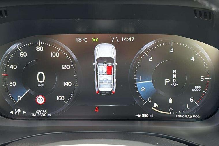 12.3" Active TFT crystal driver's instrument display, 9" Touch screen, Adjustable steering wheel force, Bluetooth handsfree system, Drive mode selector, Driver alert control with lane keeping aid, Oncoming Lane Mitigation, Sensus navigation with European mapping and traffic information, Service interval indicator, Speed limiter, Speed sensitive steering, Trip computer, Voice control system, Volvo on call, 8 speed automatic transmission with start/stop + manual change functions, Active four-C chassis + four corner adaptive damper with electronic rear air suspension, All wheel drive system, Diesel particulate filter, DAB Digital radio, Active bending headlights with adaptive shadow technology, Adaptive brake lights with high level LED brake lights, Auto dimming interior + exterior mirrors, Automatic headlight levelling system, Body colour bumpers, Chrome deco lower front bumper, Chrome lower side moulding trim, Chrome window surround, Colour coordinated auto folding and heated power door mirrors, Dual integrated exhaust pipes, Electric front+rear windows, Front aluminium tread plates, Headlamp cleaning system, Heated aqua blades, High gloss black grille with chrome inserts, Home safe and approach lighting, Illuminated side steps, Integrated silver roof rails, LED front fog lights with static cornering light function, LED Headlights + Active high beam incorporating daytime running lights, Rain sensor with automatic windscreen wiper activation, Rear wiper, Roof antenna, Roof spoiler, Tinted windscreen, Visible VIN plate, 12V socket in front tunnel console and cargo compartment, 3 spoke leather steering wheel with chrome trim, B Pillar ventilation, Bright metal luggage threshold, Centre armrest storage illumination, Centre console cupholders and storage, Floor mats, Front and rear door pocket and front cupholder illumination, Front footwell illumination, Front reading lights, Front seat cushion extension and power adjustable front seats side support, Head restraints for all seats, Heated front seats, Heated steering wheel, Height/reach adjustable steering column, High gloss black steering wheel remote infotainment controls, Illuminated glovebox, Illuminated luggage compartment, Illuminated vanity mirrors + ticket holder, Load cover, Load protection net, Massage function for front seats, Multi directional lumbar support, Multicolour theatre lights, Nappa soft leather perforated front and ventilated upholstery, Orrefors Crystal Gear Lever Knob, Rear armrest / integral cup holders / storage tray, Rear footwell illumination, Rear seat concealed storage, Tailgate illumination and ambient door lighting, Underfloor stowage compartment, Versatile split folding rear seat - 60/40, Power seat pack - XC60, 5 three point seatbelts, City safety with steering support with Pedestrian + cyclist + large animal detection + front collision warning with full auto brake, Drivers knee airbag, Dual stage driver/passenger airbags, Electronic parking brake with auto hold, First aid kit, Hill descent control, Hill start assist, IC (Inflatable Curtains) - Full Length, Passenger airbag cut-off device, Road sign information display, Run off Road Mitigation, Run off Road Protection, Seatbelt reminder and pretensioners, SIPS (Side Impact Protection System), SIPS airbags, Slippery road and hazard light alert, Stability and Traction Control with Spin control, Engine Drag Control and Corner Traction Control, Tyre pressure monitoring system, Vehicle deceleration control with Anti-lock Brake System, Electronic Brake Distribution and Emergency Brake Assist, Warning triangle, WHIPS whiplash protection system - front, Anti-theft alarm including immobiliser/volume sensor + level sensor, Care key with user defined top speed, Key integrated remote control central locking + fuel flap with deadlocking system and auto open/close power windows, Keyless Drive (includes Keyless Entry and Keyless Start) with Handsfree Tailgate Opening/Closing, Locking wheel nuts, Private locking for tailgate, Tailored instrument panel with contrast stitching,