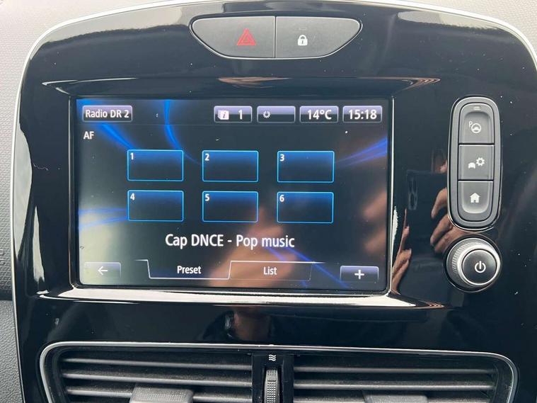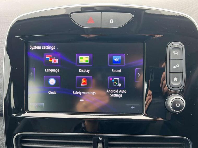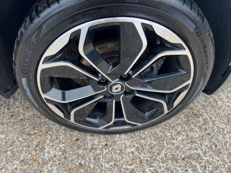 Bluetooth Handsfree Phone Connection, Cruise control + speed limiter, Hands free parking system with front and rear sensors and steering assist, Push button starter, R-Link Multimedia System with 7" touch screen, Tom Tom Navigation and Bluetooth system, Rear parking camera, Smartphone cradle, Trip computer, Variable PAS, Aux-in socket, DAB Digital radio, Renault bass reflex system, USB connection, Automatic headlights + automatic windscreen wipers, Black door protector with chrome inserts, Black headlamp surrounds, Body colour door handles, Body coloured bumpers, Body coloured rear spoiler, Chrome tailgate decoration, Chrome window surround, Electric adjustable door mirrors, Electric folding door mirrors, Electric front windows + one touch + anti-pinch, Electric rear windows, Front fog lamps, Heated door mirrors, LED daytime running lights, LED Headlights, Rear wiper, Variable front intermittent wipers, 12V Accessory socket, 3 rear height adjustable headrests, 60/40 split rear seats, Air recirculation control, Auto climate control, Chrome gear knob insert, Chrome interior door handles, Driver's seat height adjustment, Front centre armrest with storage compartment, Front cupholders, Front door storage bin, Glovebox, Heated front seats, Height adjustable front headrests, Height adjustable passenger seat, Height/reach adjust steering wheel, Isofix system on outer rear seats, Leather steering wheel with chrome inserts, Leather upholstery, Multi function steering wheel, Pollen filter, System for Restraint and Protection SRP-front seats, 3 point seatbelts on all rear seats, ABS+EBD+Brake assist, Driver and passenger front and side airbag deactivation, Driver/Front Passenger airbags, Driver/front passenger side airbags, ESP + Traction control + Understeer control, Front side airbags(head+thorax), Height adjustable driver's seatbelt, Hill start assist, Seatbelt warning, Tyre pressure monitoring system, Anti-drill door locks, Child lock control of rear doors and windows, Deadlocking system, Hands free Renault card, Locking fuel filler cap, RAID (Renault Anti-Intruder Device) with automatic door locking, Remote central locking, Thatcham Cat 2 engine immobiliser, Dark carbon soft touch dashboard, Gloss black air vent surround, Gloss black centre console, Gloss black dashboard inserts,