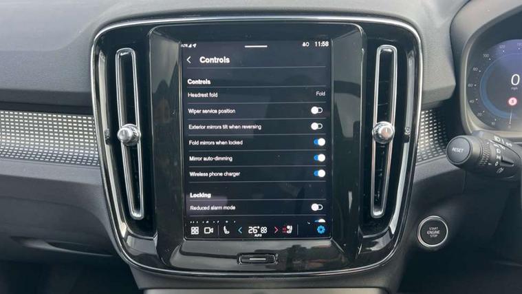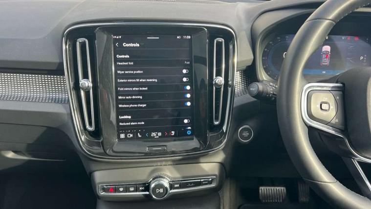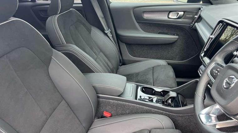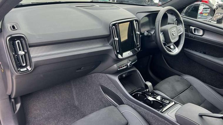 12.3" Progressive Driver Display, 360 degree surround view parking camera with side proximity sensors, 9" centre console portrait touch screen, Adjustable steering wheel force, Android auto (Wired), Apple carplay (wired), Bluetooth handsfree system, Driver alert control, Driver assistance (pilot assist and adaptive cruise control), Driver awareness - Blind spot information system with steer assist, cross traffic alert with autobrake and rear collision warning and mitigation, E-call, Front park assist, Google automotive services - Enabled entertainment apps, navigation with google maps, voice recognition with google assistant, Hands free power tailgate, Intelligent speed assistance, Lane keeping aid, Oncoming Lane Mitigation, Rear park assist, Speed sensitive steering, Volvo cars services with app - Driving journal, emergency and breakdown call, engine remote start, remote door locking/unlocking and vehicle dashboard, Wireless/Inductive Mobile Phone Charging, Automatic transmission with start/stop and manual change functions, Dynamic chassis, DAB Digital radio, Premium Sound by Harman Kardon, Dolby Pro Logic II Surround Sound, Dirac Unison, 12 speakers/600W and subwoofer, Steering wheel mounted remote controls, Active bending pixel LED headlights with adaptive shadow technology, Active high beam incorporating daytime running lights, Adaptive brake lights with high level LED brake lights, Auto dimming feature for exterior door mirrors, Auto dimming interior mirror, Automatic headlamp levelling, Colour coordinated auto folding and heated power door mirrors, Dark tinted windows - rear side windows and rear screen, Front aluminium tread plates, Front and rear electric windows, Headlight cleaning system, High gloss black front and rear skid plate, High gloss black front bumper deco, High gloss black front grille strikethrough and ironmark, High gloss black rear model, engine and volvo logo badges, High gloss black window trim, Home safe and approach lighting, Integrated roof rails in high gloss black, LED front fog lights with cornering function, Power glass tilt and slide panoramic sunroof with sun curtain, Puddle lights, Rain sensor with automatic windscreen wiper activation, Rear side wing doors, Rear wiper, Roof antenna, Roof spoiler, Visible VIN plate, 12V socket in front tunnel console and luggage compartment, 2-Zone electronic climate control with CleanZone air quality system and pollen filter, 3 seat bench in 2nd row, 3 Spoke tailored steering wheel with chrome trim, 60/40 versatile split folding rear seat, Centre console cupholders and storage, Charcoal headlining, Connect textile/microtech upholstery, Flexible load floor and grocery bag holder, Floor mats, Front cabin courtesy lights, Front door pocket, front cupholder, ambient front door, rear reading, rear courtesy, instrument panel and tailgate lighting, Front footwell illumination, Front headrests, Front reading lights, Front seat cushion extensions, Front side step illumination (under door), Glovebox bag hook, Heated front seats, Height/reach adjustable steering column, High gloss centre tunnel deco, Illuminated glovebox, Illuminated luggage compartment, Illuminated vanity mirrors + ticket holder, Integrated waste bin, Isofix attachments on outer rear seats, Load cover, Load protection net, Multi directional lumbar support for driver and passenger seat, Power driver seat with memory + exterior mirrors memory, Power folding rear headrests, Power passenger seat, Rear armrest with cupholders, Single front passenger seat, Underfloor cargo storage, Climate pack without heated front seats - XC40, 3x3 point rear seatbelts, City safety with steering support with Pedestrian + cyclist + front collision warning with full auto brake and rear auto brake, Driver and passenger airbags, Drivers knee airbag, Electronic parking brake with auto hold, First aid kit, Front and outer rear seatbelt reminder and pretensioners, Front seats SIPS airbags, Hill descent control, Hill start assist, Inflatable curtain, Passenger airbag cut-off device, Power child locks on rear doors, Road sign information display, Run off Road Protection, SIPS (Side Impact Protection System), Slippery road and hazard light alert, Stability and Traction Control with Spin control, Engine Drag Control and Corner Traction Control, Tyre pressure monitoring system, Vehicle deceleration control with Anti-lock Brake System, Electronic Brake Distribution and Emergency Brake Assist, Warning triangle, WHIPS whiplash protection system - front, 2 x Key integrated remote control central locking including with deadlocking system and auto open/close windows and sunroof, Anti-theft alarm including immobiliser/volume sensor + level sensor, Keyless drive includes keyless entry and keyless start, Locking wheel nuts,