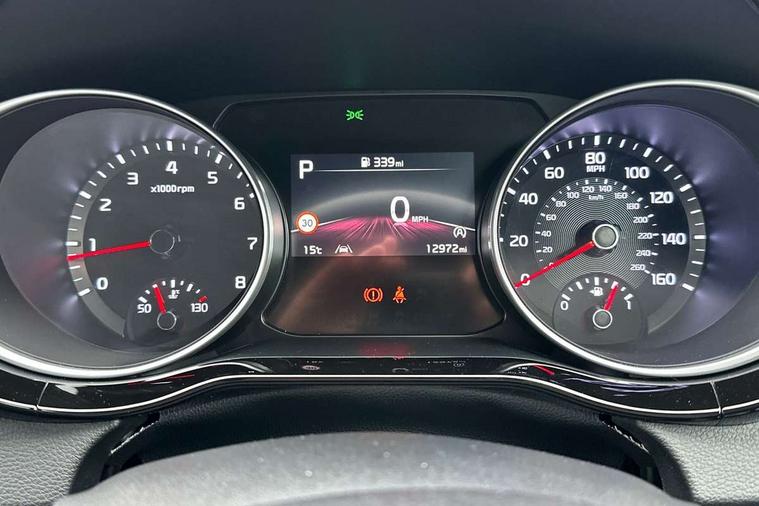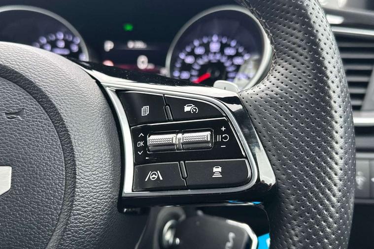 10.25" touchscreen satellite navigation, 4.2" supervision colour cluster display, Apple car play/Android Auto with voice control, Bluetooth with Voice Recognition & Music Streaming, Drive mode select (Normal and Sport), Driver attention warning + (DAW) with leading vehicle departure warning, Emergency call service, Emergency stop signalling system, Forward Collision-Avoidance Assist (FCA) - City/Pedestrian/Cyclist, Kia connect UVO, Lane Following Assist (LFA), Lane keep assist, Manual speed limit assist, Motor driven power steering, Rear parking sensor, Reversing camera system with dynamic guidelines (Integrated into centre fascia screen), Smart cruise control with stop/go functionality, Trip computer, Intelligent Stop and Go, 6 speaker audio system, DAB Radio with MP3, Illuminated USB ports, Steering wheel mounted controls, USB Fast Charger in Front Centre Console, USB type A port, All-round Electric Windows with Front Auto Up & Down Function, Auto dimming rear view mirror, Automatic defog system, Automatic headlights control, Body colour bumpers, Body colour exterior door handles, Body coloured and dark chrome rear skid plate, Body coloured side sill mouldings, Dark chrome window surround, Electric adjustable/heated/folding door mirrors with LED Indicators, Heated rear window with timer, High beam assist, High gloss black and dark chrome radiator grille, High gloss black door mirrors, High Gloss Black rear spoiler - roof, LED daytime running lights, LED front fog lights, LED Headlights, LED High-mounted Brake Light, LED honeycomb rear light, LED rear combination lights, LED rear fog light, Privacy glass (rear side windows and tailgate), Rain sensing front wipers, Rear side wing doors, Rear wash/wipe, Satin chrome dual exhaust trim, Tinted glass, Wide view drivers door mirror, Windscreen Washer Level Warning, 1 x Front 12V socket, 12V power socket in luggage compartment, 3 seat bench in 2nd row, 3 x passenger assist grips, 60/40 split folding rear seat, All-round height adjustable headrests, Aluminium pedals, Black headlining, Centre console storage box/armrest, Cloth/faux leather upholstery, Cupholders in centre console, Cupholders in rear armrest, Dash illumination dimmer switch, Door courtesy lamps, Driver & Front Passenger Sunvisors with Vanity Mirror Illumination & Ticket Holder, Driver + front passenger electric lumbar support, Driver's seat height adjuster, Dual Height Luggage Area Floor, Dual zone automatic air conditioning, Faux leather door centre trim, Front and rear door storage, Front cabin map light with sunglasses case, Front Passenger Seat Height Adjuster, Front seat back pockets, Heated front seats, Heated steering wheel, Interior door lock/unlock function, ISOFIX Child seat top tethers and anchor fixings, Leather D-Cut steering wheel, Leather handbrake, Luggage area light, Luggage area parcel shelf, Luggage hooks, Rear centre armrest, Rear coat hooks, Single front passenger seat, Tilt/telescopic adjustable steering wheel, All round 3-point seatbelts, Anti-lock braking system (ABS), Brake assist system, Dual front side airbags, Dual horn, EBD - Electronic brakeforce distribution, Electronic parking brake, Electronic stability control (ESC) and vehicle stability management (VSM), Front passenger airbag cut-off switch, Height adjustable front seatbelts, Hill start assist control (HAC), Impact sensing auto door unlocking, Rear door child safety locks, Seatbelt reminder warning, Twin curtain airbags, Twin front airbags, Tyre pressure monitoring system, Alarm system, Engine Immobiliser & Deadlocks, Locking wheel nuts, Remote central door locking with fold away key, Speed sensitive auto door locking, Satin Chrome Fascia Trim, 17" GT-Line alloy wheels, Tyre mobility kit,