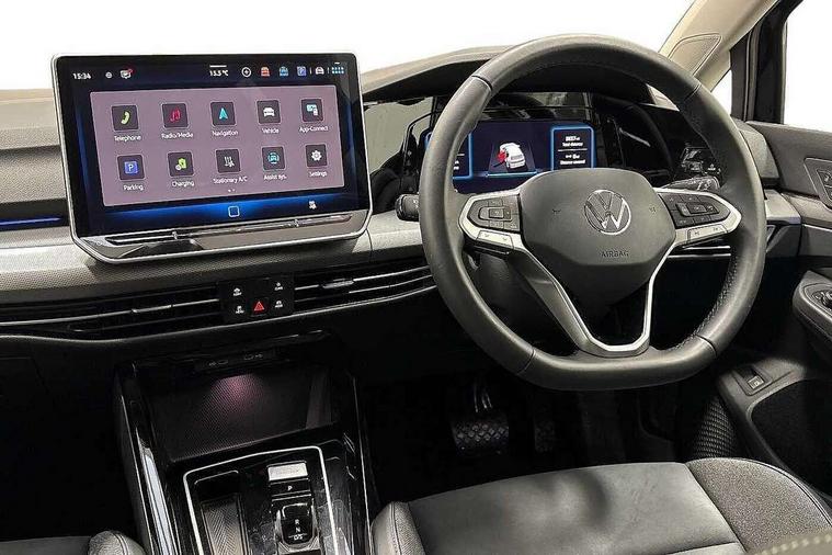 Activated carbon canister, Adaptive cruise control (ACC), Advanced driver attention and drowsiness monitor, Dynamic road sign display, E-Sim card for online connectivity, eCall emergency call system, Multi-color Digital cockpit pro, selection of different info profile possible, Multifunction front facing camera for distance control, Navigation system, Oncoming vehicle braking when turning including swerve support, Side assist blind spot lane change system, rear traffic alert and exit warning system, Speed limiter, Speedo, rev counter, electronic odometer, trip, service interval display, exterior temperature and fuel gauge, Traffic jam assist, Voice enhancer and voice control, Warning signal and warning light for front and rear seatbelts not fastened, We connect plus preparation, We connect preparation, Wireless app connect, Charging cable Mode 2 Type 2 (10A), Charging cable mode 3, type 2 32 A, Hybrid propulsion system, Start-stop system with battery regeneration (recuperation - energy recovery during braking), XDS electronic differential lock for improved traction and handling, 2 USB C ports in front, 2 USB charging sockets on the centre console in the rear charging capacity upto 45W, 6 Speakers - 4 in front and 2 in rear with central speaker, Digital radio reception (DAB), Diversity antenna for FM reception, Gaming platform via car app, Infotainment system with 12.9" display, Mobile phone interface with inductive charging feature, 3rd brake light, Automatic headlamp activation with Coming home and Leaving home feature, Body colour bumpers, Body colour door handles, Body colour door mirrors, Chrome trimmed front air intake surrounds, Chrome trims on the side window bottom, Exterior mirrors convex on the left and aspherical on the right, Front and rear electric windows, Heat insulating windshield made of laminated glass, LED separate daytime running light, Rear exhaust tailpipe, Rear fog light on one side and reversing lights on both sides, Rear side wing doors, Rear windscreen washer and wiper with interval delay, Remote electrically foldable door mirrors, puddle lights and reverse activated passenger's door mirror, Welcome light with surround lighting, 12V socket in front centre console, 12V socket in luggage compartment, 3 rear head restraints, 3 seat bench in 2nd row, Air care climatronic 3 Zone automatic climate control with rear air conditioning control panel, Ambient lighting with 30 colour including LED light unit in front footwell with selectable light colour, Chrome plated radiator grille inserts, air vent surrounds and light switch surrounds, Front + rear black carpet mats, Front centre armrest, ISOFIX anchors for child seats on outer rear bench seats and on front passanger seat compatible for i-Size, Luggage compartment lighting, Plastic gear knob, Rear cupholder and loadthough, Single front passenger seat, Soul black instrument panel, Split folding backrest with centre armrest and unsplit rear seat bench, Standard pedal cluster, Storm grey roof lining, Sun visors with illuminated vanity mirrors, Driver assistance pack - Golf Estate/Hatchback Auto, 3 point height adj front seatbelts + pretensioners, 3 rear three point seatbelts, ABS, Autonomous emergency braking front assist with pedestrian and cyclist monitoring, Child locks on rear doors, Driver and front passenger airbag with front passenger airbag deactivation, Electronic parking brake with auto hold, ESC (Electronic Stability Control), Extended pedestrian protection measures, Hill start assist, Rear disc brakes, Two tone horn, Tyre pressure loss indicator, Volkswagen roadside assistance, Anti theft wheel bolts, Preparation for alcohol interlock, New brushed dark metal decorative inserts for dashboard and front door panels, Tool kit for tyre mobility set, Tyre mobility kit Includes 12V compressor and tyre sealant,