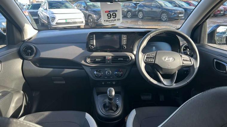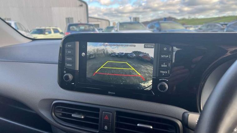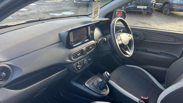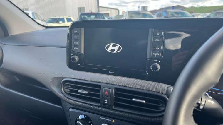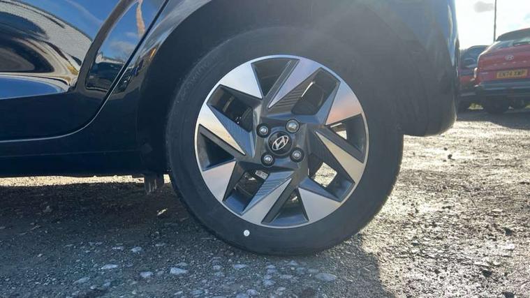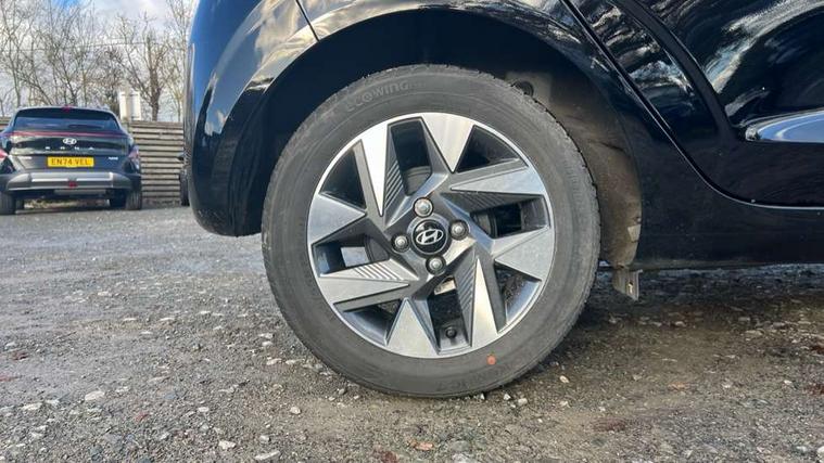 Apple car play/Android Auto, Bluelink mobile remote connectivity, Bluetooth connectivity with voice recognition, Cruise control, Driver attention alert system, eCall emergency call system, Forward Collision-Avoidance Assist (FCA) - Pedestrian/Cyclist, Front USB-C charging and USB-A data, Full-width 4.2" LCD instrument cluster, Intelligent speed limit assist, Lane departure warning system with lane keep assist - LKAS, Lane follow assist, PAS, Rear parking sensors, Rear view camera with guidelines, Roadside assistance, Start/Stop function, Tailgate, Trip computer, 2 front/2 rear speakers, Rear USB-C device charger, Steering wheel audio, phone and cruise controls, 1 speed non intermittent rear windscreen wiper, Black finish on B pillars, Body colour door handles, Body coloured bumpers, Body coloured door mirrors, Electric front windows, Electric rear windows, Electrically adjustable and heated door mirrors, Flat metal emblem, Front grille in matte black, Front intermittent wipers, Halogen daytime running lights, Halogen headlights, Headlights inner with Black Blade design, Heated rear window, High beam assist, Indicator light on door mirrors, Rear roof spoiler with integrated LED brake light, Rear side wing doors, 12v power outlet - front, 3 seat bench in 2nd row, 60/40 split folding flat to floor rear seats, Air conditioning, Auto light control, Bottle holders in front/rear doors + front centre console, Cabin and luggage compartment interior lighting, Cloth upholstery, Driver + passenger vanity mirrors, Driver's seat height adjustment, Driver/passenger sunvisors with ticket holders, Floor mats, Front door pockets, Front Head Restraints - Vertical and Horizontal Adjustment, Glove compartment, Height adjustable steering column, Isofix child seat preparation, Leather multifunction steering wheel, Rear door pockets, Single front passenger seat, Vertical adjustment rear head restraints, 3x3 point rear seatbelts, Airbags - front, front side and curtain airbags, Anti-lock brake system (ABS), Autonomous emergency braking (AEB) with forward collision warning system, Brake assist function, Childproof rear door locks, Electronic stability control, Front and rear seatbelt reminder, Front seatbelt pretensioners, Hill start assist control (HAC), Passenger airbag deactivate switch, Traction control, Tyre pressure monitoring system, Immobiliser, Perimeter alarm, Rear occupant alert, Remote central locking, Second remote key, Speed sensitive auto door locking, 15" Alloy wheels, Tyre repair kit,