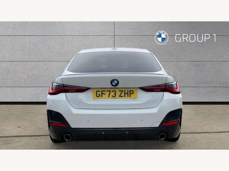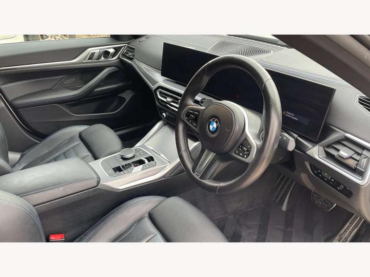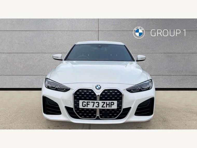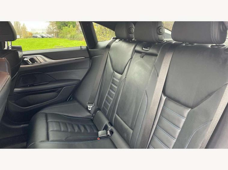 Active guard plus, Attentiveness assist, Auto start-stop, Bluetooth hands free facility with USB audio interface with audio streaming, BMW ConnectedDrive online services, BMW iDrive controller on centre console, BMW Live Cockpit Plus Nav-12.3" instrument&14.9" control Widescreen curved display/Intelligent Voice Assist/iDrive touch/Access 3rd party app/4G LTE, BMW service history, BMW Teleservices, Brake pad wear indicator in front and rear, Check Control warning system for monitoring of lights and door/luggage compartment open warning, Condition based service, Cruise control with speed limit function, Electric bootlid, Electric power steering with Servotronic steering optimised at all speed ranges, Gearshift time display in manual mode, Instrument cluster with speedometer with mph readout, tachometer, fuel gauge and oil temperature gauge, Integrated owners handbook, Oil sensor for level and grade, warning by check control system, On board computer - average speed, fuel consumption, outside temp display with acoustic warning, clock/date, service interval, odometer/trip meter, Optimum shift indicator, Shifting point display, Tailgate, Variable sport steering, 8 speed automatic steptronic transmission with gearshift paddles, Double joint spring strut front axle, Double VANOS, Drive performance control - ECO PRO, comfort and sport modes, High precision injection, Low centre of gravity, M sport suspension, Petrol Particulate Filter, Stroke dependent dampers, VALVETRONIC engine management, 2x USB Type C ports in front centre console for charging and data transfer, 2x USB Type C ports in rear centre console for charging, DAB tuner, Electronic service booklet, Acoustic glazing, Automatic headlight beam throw control with load dependent regulating reaction, dynamic compensation of braking dive and acceleration squat, Automatic windscreen wipers and automatic headlight, Automatically dimming electrochromatic rear view mirror, BMW emblem on engine compartment lid and tailgate, BMW kidney grille with mesh grille front side of the nuggets in matt aluminium and frame in chrome high gloss, Body colour fuel filler flap, Body colour roof fin, Brushed aluminium inserts in the front door sill finishers with BMW designation, Door sill strips, Dynamic brake lights, Electric windows - front and rear, with open/close fingertip control, anti trap facility and comfort closing function all round, Exterior mirrors - electrically folding with anti-dazzle, Fading support, Follow me home headlights, Front and rear bumper system, Front apron plastic in body colour, Green tinted heat protection glazing, High gloss shadow line exterior trim, Illuminated bow type door handles in body colour drivers side with door lock, Interior rear view electrochromatic mirror with automatic anti dazzle function, LED 3rd brake light, LED daytime running lights, LED front fog lights, LED front indicators, Licence plate panel integrated into front bumper and tailgate, Lightweight engineering, M designation on front side panels, left and right, M sport rear boot spoiler with body colour gurney, Model designation on right side of tailgate, One piece front bumper cover including towing eye cover in body colour, Preparation for high beam assistant, Rear side wing doors, Rear wiper, Reversing light, Side frame decorative moulding black matt, Two part LED tailights in L-shape with components in smoked glass, brake light, LED turn indicator and rear fog light, Visible exhaust tailpipe finisher, Visible VIN plate, Welcome lights in interior and door handle area, Widened track and increased camber values for max transverse dynamics, agility and steering precision, Window recess cover black high gloss, Windscreen wipers with integrated heated washing jets, 12V power socket in front centre console, 2 front cupholder in centre console with clamping elements and matt black inlay, 3 rear headrests, 3 seat bench in 2nd row, 3 spoke M sport leather multifunction steering wheel, 3 zone automatic air conditioning, 4 pieces lashing eyelets in luggage compartment, 40:20:40 split folding rear seat and rear centre armrest with two cupholders, Anthracite headlining, Armrest integrated in front and rear door trim + front centre console armrest, BMW ID, Driver seat backrest width adjustment, Extended storage in Combination with sport seat net pocket on rear backrest, Four grab handles integrated in roof lining, Front and rear door pockets, Front and rear reading lights, Front sport seats, Heated driver and front passenger seats, Height adjustable front headrests, Height adjustable mechanically and infinitely variable steering column, Illuminated armrest storage compartment, Illuminated glove compartment with separate small compartment, Luggage compartment seprating net on side trim left/right, Bag hook, 12V socket, TTH button, USB C charging in rear, Folding compartment on driver side, Make-up mirror lights, Single front passenger seat, Storage compartment in rear centre console, Sunvisors with illuminated vanity mirrors and ticket pocket, Toolkit located in luggage compartment, Velour front floor mats, Vernasca leather upholstery, Ambient lighting pack - 4 Series, Connected professional package - 4 Series, M sport exterior styling pack - 4 Series, 3 point seatbelts on all seats, Battery safety cut-off, BMW emergency call, Brake energy regeneration, Braking pre-tensioning, Child proof locking system in rear door, Child seat ISOFIX attachment for the two outer rear seats, Coasting in idle in ECO PRO mode, Cornering brake control (CBC), Crash sensor activating of airbags, Unlocking doors, hazard warning lights, interior light, safety battery terminal, Driver and front passenger side airbags, integrated in the door side seat backrest bolsters for all seat variants, Driver/Front Passenger airbags, Dry braking, Dynamic brake control, Dynamic stability control + (DSC+) - Anti-lock Braking System (ABS) with brake assist and cornering brake control + Automatic Stability 