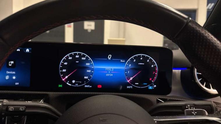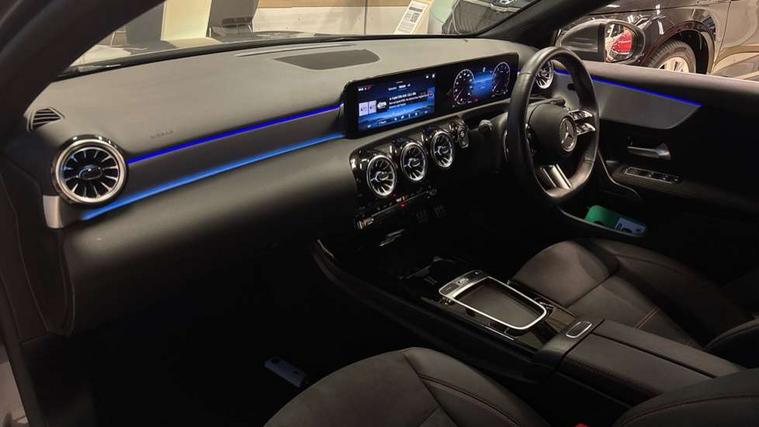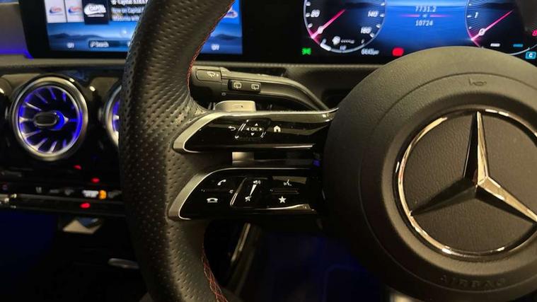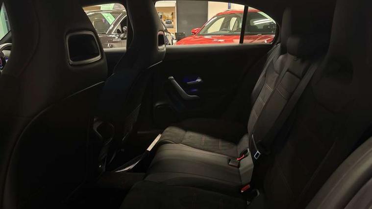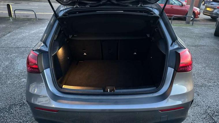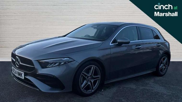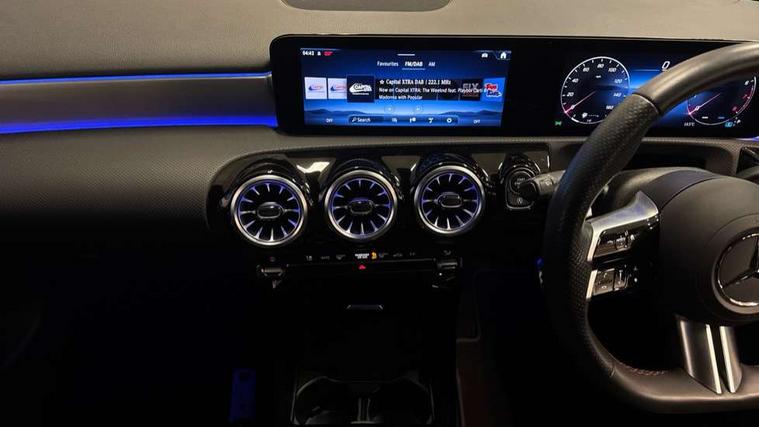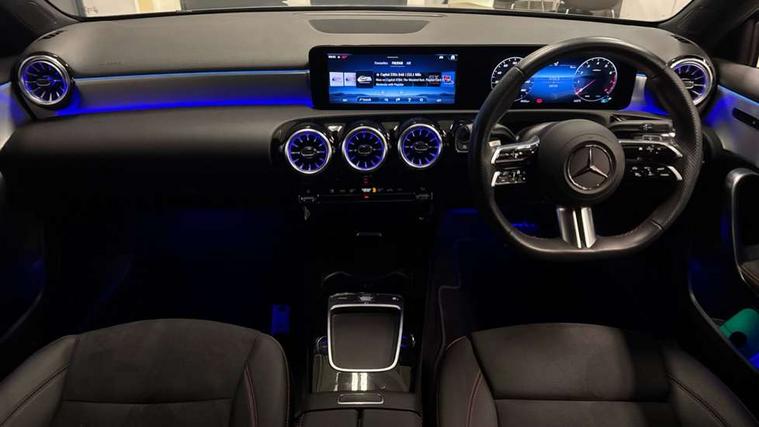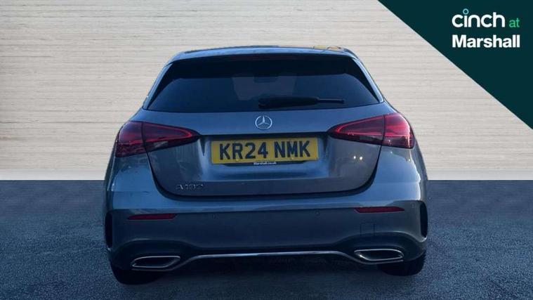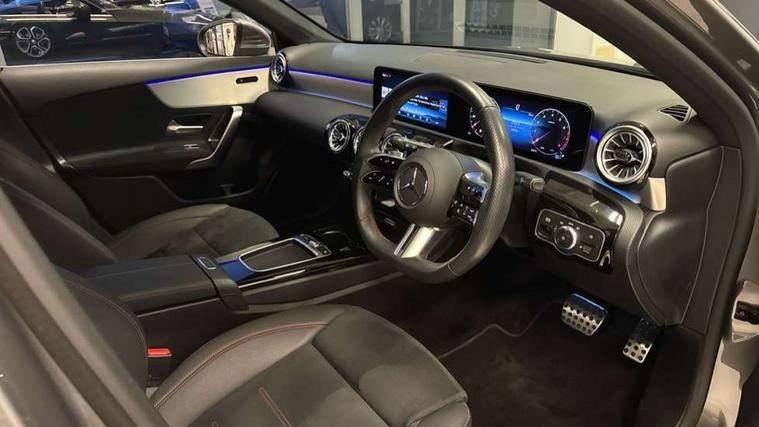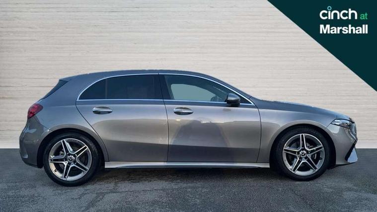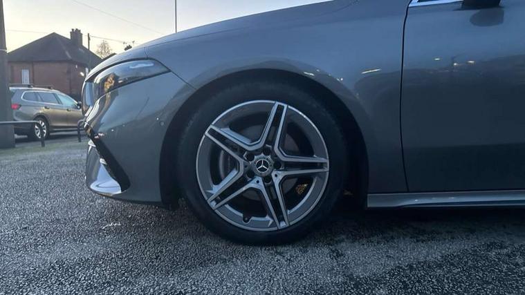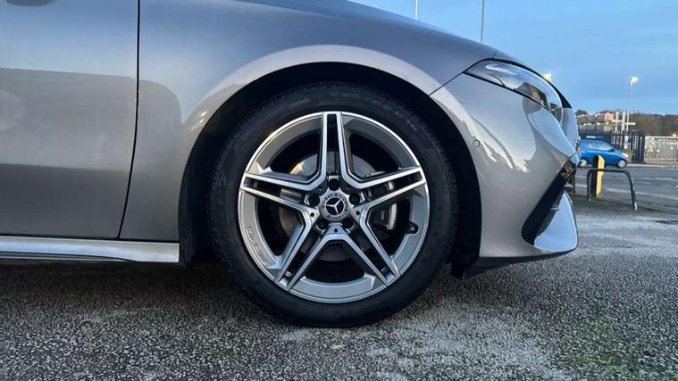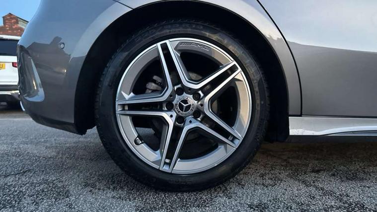10.25 inch touchscreen central media display, 10.25" Digital instrument cluster display screen, Attention assist, Brake pad wear indicator warning light, Car wash mode, Cruise control + speed limiter, Direct steering, Direction indicators with lane change function, Dual bluetooth interfaces, DYNAMIC SELECT with a choice of driving modes (ECO, Comfort, Sport and Individual), Easy pack tailgate hands-free access, ECO start/stop function, Engine start/stop button, Fluid level warning indicator for fuel, oil, coolant and washer fluid, Fluorescent jacket for driver, Hard-disk navigation, Hey Mercedes Voice activation, Lamp failure indicator, Lane keeping system, Mercedes me connect including emergency call system, accident recovery, breakdown management and maintenance, Mercedes me remote services, Outside temperature gauge, Owners manual in English, Pre-installation of private car share, Preinstallation for Mercedes Benz link, Remote boot closing, Service indicator (ASSYST), Smartphone integration with Apple CarPlay and Android auto, Speed limit assist, Speed sensitive power steering, Tailgate, Trip computer in multifunction display with current consumption indicator, Wireless charging, Lowered comfort suspension, DAB Digital radio, MBUX multimedia system, Mercedes Benz sound system (100 W) with 6 speakers, 4 Electric Front and Rear windows, Adaptive brake lights, AMG body styling - AMG front apron with front splitter and AMG rear apron and visible exhaust tailpipe trim elements, Body colour bumpers, Body colour door handles with chrome inserts, Body colour side skirt, Body coloured door mirrors, Chrome beltline strips, Diamond radiator grille with pins in fine star pattern, Electric adjustable and heated door mirrors with integrated LED side indicators, Exhaust system with 2 visible tailpipe trim elements and rear apron, Headlamp assist automatic headlamp activation, Heat insulating dark tinted rear and rear side windows, Heated glass rear windscreen + timer control, LED High level third brake light, LED High Performance headlamps including integral LED daytime running lamps and adaptive highbeam assist, LED tail lamp, Privacy glass, Radio aerial, Rain sensing windscreen wipers with two sensitivity settings, Rear fog lights, Rear side wing doors, Rear windscreen wiper, Window line trim strip in chrome, 3 seat bench in 2nd row, 3 Spoke flat bottom leather multi function steering wheel with perforated leather in grip area, 4 way lumbar support, 40:20:40 split folding rear seats, Air conditioning - One zone thermatic automatic climate control with automatically controlled air distribution, AMG floor mats, Automatic child seat recognition sensor, Black air vents with surround in silver chrome, Black roof lining, Brushed stainless steel sports pedals with rubber studs, Front centre armrest with stowage, Front door sills with Mercedes Benz lettering, Front seat backs luggage nets, Galvanished gear shift paddles on steering wheel, Heated front seats, Height/reach adjustable steering column, Interior lighting - 64 colour Ambient lighting, Interior mirror with reading lamps in black and frameless, ISOFIX and top tether child seat fixing points in two outer rear seats, Rear armrest with 2 cupholders, Seat occupancy sensor for front passenger seat, Single front passenger seat, Sports seats with integrated headrests, Stowage compartment in centre console with retractable cover, Sunvisors with illuminated vanity mirrors, Twin front cupholders, Light and sight pack - A Class, Mirror package - A Class, Parking pack - A Class, Seat comfort pack - A Class, USB pack plus - A Class, 3 rear 3 point seatbelts, ABS with Brake Assist, Active bonnet, Active brake assist includes forward collision warning system with autonomous braking, Adaptive brake assist with hold function and hill start assist, Black seatbelts, Bonnet with power domes, Childproof locks manually operated for rear doors and electrically operated for rear power windows, Crash responsive emergency lighting, Driver and passenger head and side airbags, Drivers knee airbag, Dual stage driver/passenger airbags, Electronic parking brake, ESP curve dynamic assist, ESP with ASR, Front and rear seatbelt reminder, Tyre pressure monitoring system, Warning triangle and first aid kit, Window airbags, Alarm system/interior protection/immobiliser, Guard 360 degree vehicle protection, Keyless entry lock/unlock, Keyless Go, Remote central locking and crash sensor with emergency opening function, Light longitudinal grain aluminium trim, 18" AMG 5 twin spoke light alloy wheels, aerodynamically optimised, painted in termolite grey with high sheen finish, Summer tyres, Tirefit sealant kit,