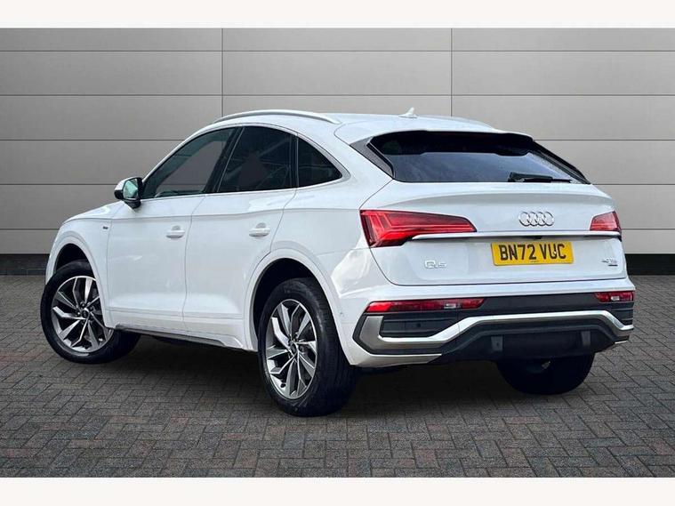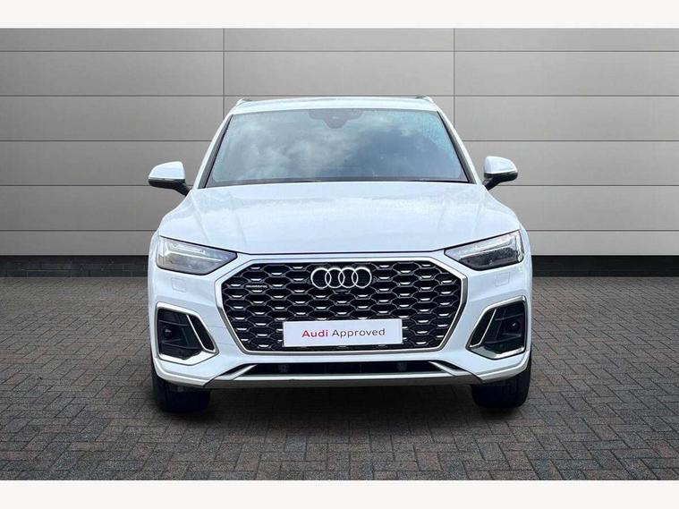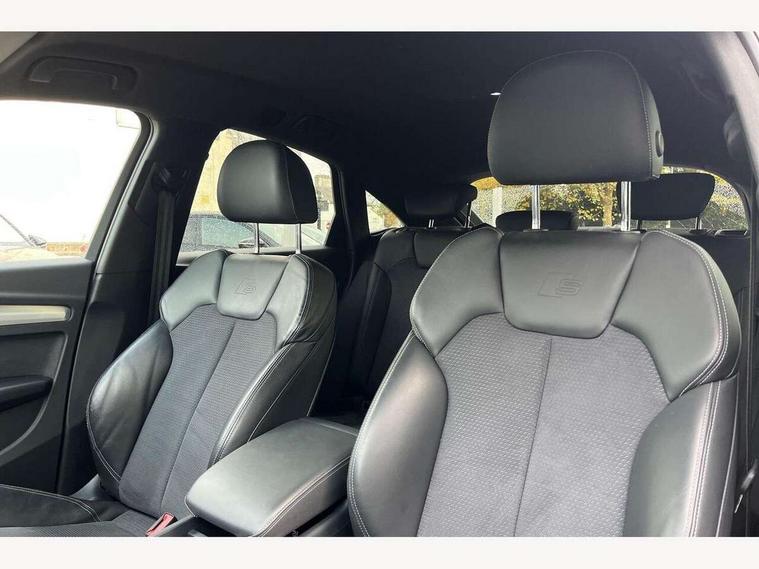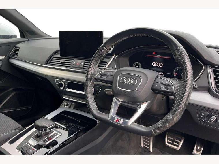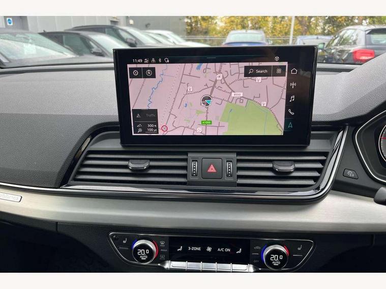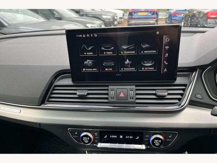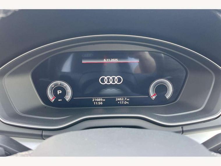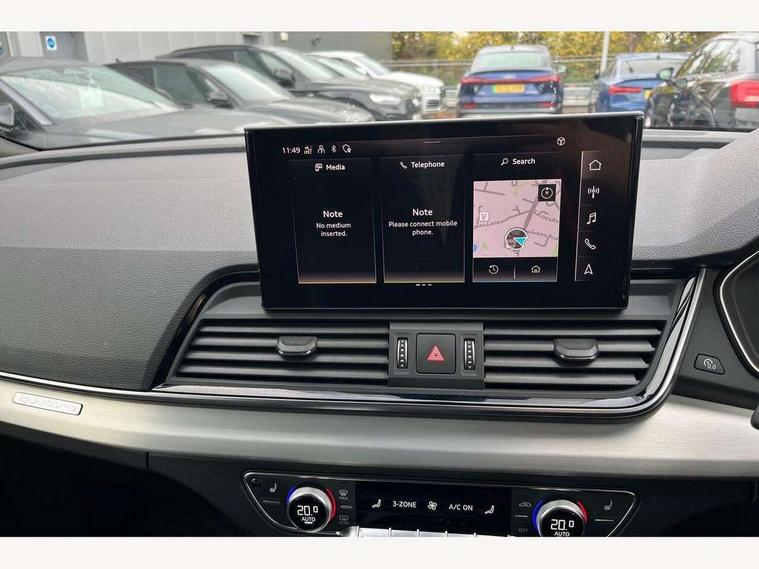 Audi connect safety and service (e-call), Audi connect with Amazon Alexa Integration, Audi drive select, Audi virtual cockpit plus with 12.3" screen and three different layout designs, Audi wireless smartphone interface, Automatic start-stop system with coasting functionality and efficiency programme, Bluetooth interface, Electro - mechanical power assisted steering, MMI navigation plus with 10.1" touch screen, Power tailgate, Reversing camera, Service interval indicator, Voice control system with Audi hotword activation "Hey Audi", Diesel particulate filter, Quattro on demand, S line sports suspension, 2 x USB charging port with aux input socket, DAB Digital radio, Acoustic windscreen, Aluminium roof rails, Audi matrix LED headlights with dynamic front and rear indicators, Auto dimming door mirrors, Auto dimming rear view mirror, Automatic headlights and windscreen wipers, Body colour door mirrors, Body colour rear diffuser with matt aluminium silver surrounds, Body colour underbody protection, Chrome plated exhaust trims, Daytime running lights, Door sills in Selenite silver, Electric adjustable/heated/folding door mirrors, Front air inlet surrounds in aluminium, Front and rear electric windows, Front radiator grille in honeycomb design, Headlight washers, High level LED brake light, Lower bumpers painted in contrast Manhattan grey, Rear chrome trim strip below lights, Rear privacy glass and rear side windows, Rear side wing doors, Rear wiper, Roof bars, S Line badges on the front wings, S Line front and rear bumpers, S Line rear spoiler, S Line side skirts, 3 rear headrests, 40:20:40 split folding 3 rear bench seat in 2nd row with rear centre armrest, Black cloth headlining, Comfort front centre armrest, Contrast stitching on seats, steering wheel and gear lever gaiter, Deluxe 3 zone electronic climate control, Front head restraints, Front/rear floor mats, Gear lever in black leather, Heated front seats, Height/reach adjustable steering column, Illuminated door sill trims with S logo, ISOFIX child seat mounting and top tether, Manual seat adjustment with 4-way electric lumbar support, Removable luggage compartment floor, Single front passenger seat, Stainless steel pedals, Sunvisors with vanity mirrors, Trunk roller cover, High gloss pack - Q5, LED interior light pack - Q5, 3 point seatbelts on all seats, 6 airbags - Driver, front passenger, curtain and side airbags, Electrically operated child locks on rear doors, Electromechanical parking brake, Electronic stabilisation control including ABS, ASR and EDL, Front passenger airbag deactivation, Hill descent control, Hill hold assist, Multi collision brake assist, Pop-up bonnet for pedestrian protection, Pre sense city, Seat belt force limiter, Seatbelt monitoring, Tyre pressure warning, Warning triangle and first aid kit, Anti theft alarm, Anti-theft wheel bolts, Keyless Go access/ignition system, Remote central locking, Matt brushed aluminium inlays,