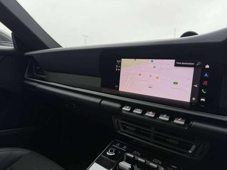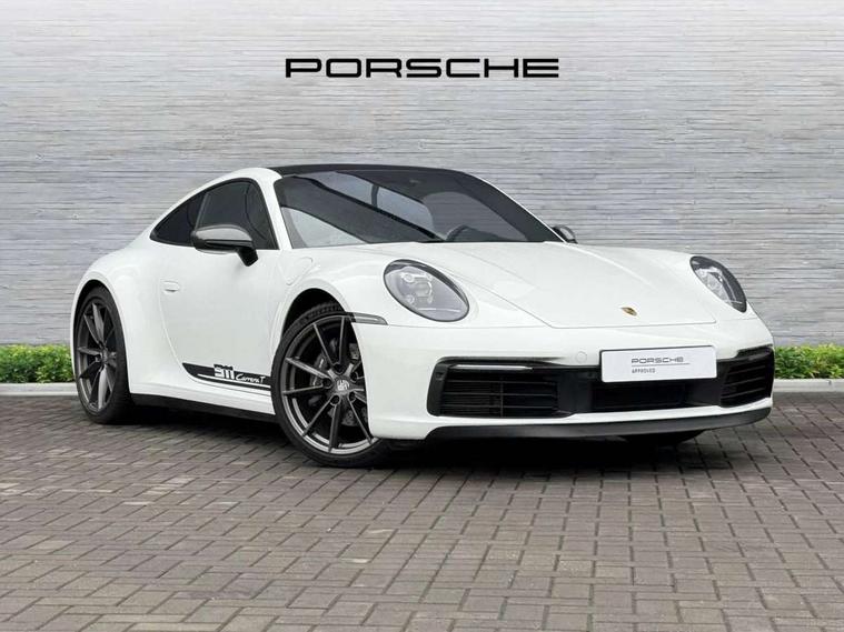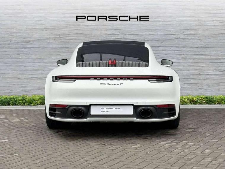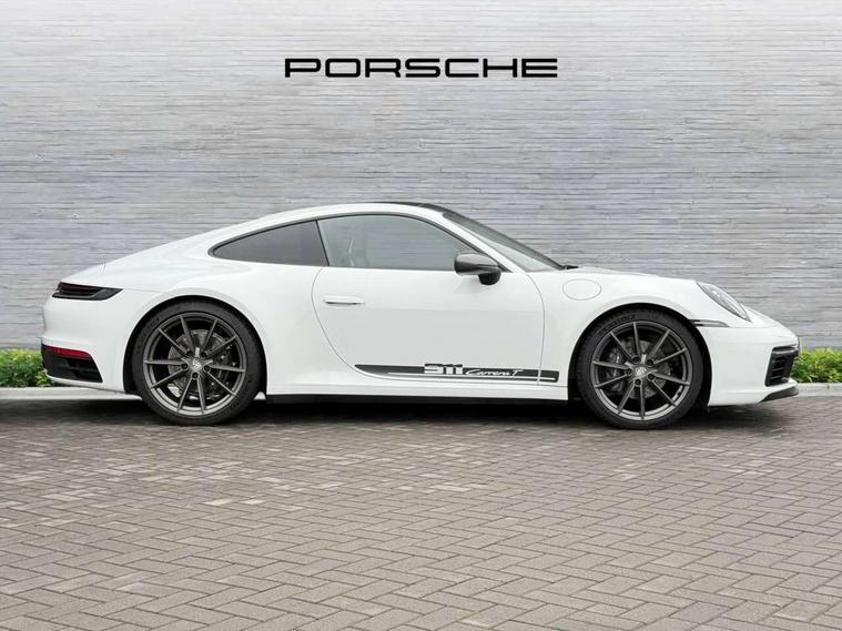 10.9 inch centre display, Automatic start/stop system, eCall emergency system, Gear indicator in rev counter, Instrument cluster with central analogue rev counter and two 7-inch TFT displays, Porsche Communication Management (PCM) including online navigation module, mobile phone preparation, audio interfaces and voice control system, Porsche WET Mode, Service indicator, Smartphone integration with Apple CarPlay and Android auto, Stationary management with HOLD function, Trip computer, Warn and brake assist including pedestrian protection, 8 Speed Porsche Doppelkupplung (PDK), Aluminium block and cylinder heads, Direct fuel injection (DFI), Expansion intake manifold, Four valve per cylinder, Integrated dry-sump lubrication with an on-demand oil pump, McPherson front axle with anti roll bar, Multi-link suspension with anti-roll bar at rear, PASM sport suspension 10mm lowered with helper springs added to rear, Porsche Stability Management (PSM), ABS with extended brake functions, Rear wheel drive, Twin turbocharger intercooled, Two gasoline particulate filter, Two three-way catalytic converters and on-board diagnostics for monitoring emission control system, VarioCam Plus variable valve timing and switchable valve lift, Water cooled with thermal management, 2 USB-C connectivity and charge ports in the centre console storage compartment, DAB Digital radio, "PORSCHE" lettering integrated in taillight strip, 911 Carrera T decorative side logo in agate grey, Auto deploying rear spoiler, Automatic headlight activation including welcome home lighting, Automatically dimming interior and exterior mirrors with integrated rain sensor, Black trim strips, Body coloured bumpers, Electrically adjustable heated exterior mirrors on door waist rails, aspherical on driver's side, Green tinted thermally insulated glass, Heated rear windscreen, Intelligent lightweight body in Aluminium/Steel composite construction, LED auxiliary light units in the front end with position lights, direction indicators and side indicators, Power windows with one touch operation and door seal protection, Rear boot, Retractable door handles, Side air intakes at front with active cooling flaps and air blades, Side skirts trim in black, Slat Inlays on rear lid painted in in high gloss agate grey, Sports exhaust system tailpipes in black, Taillight strip including integral parking lights and rear fog light, Trims on sideskirts in black, Windscreen washer system with aero wiper blades and washer jets, 12V socket in front passenger footwell, 2-zone automatic climate control with separate temperature settings for driver and front passenger, Ascending centre console with storage compartment, Clothes hooks on seat backrests, Driver and front passenger illuminated vanity mirrors, Embossed leather on front center seat, side bolsters and front seat headrests, Front head restraints, Heated front seats, ISOFIX child seat mounting points on passenger seat, Leather headrests embroidered with 911 logo in black, LED door lights, LED footwell lights, LED glove compartment lighting, LED ignition light, LED luggage compartment lighting, LED orientation light, LED reading lights, Lockable glove compartment, Luggage compartment at front, Luggage compartment lid release, Particle/pollen filter with active carbon filter, PDK gear selector with automatic mode, manual gear selection via shift paddles on the steering wheel, Single front passenger seat, Smooth finish leather on steering wheel rim, door handles, door panel armrests and centre console storage compartment lid, Split folding rear seats, Storage compartments in each doors, Two individual cupholders 1x as inlet in centre console and 1x passenger side, 4 piston aluminium monobloc fixed + brake calipers at front and rear + brake calipers with black finish, Brake discs with 330mm diameter at front and rear, internally vented and cross-drilled, Electric parking brake, Electromechanical power brake, Full size two stage airbags for driver and front passenger, Porsche side impact protection system includes side impact protection in doors, curtain, head/thorax airbags for driver/front passenger in each door, Tyre pressure monitoring system, Dashcam prep, Engine immobiliser with remote central locking and alarm system with ultrasonic sound based interior surveillance, Porsche vehicle tracking system (PVTS Plus), Tyre repair kit with sealing compound and electric air compressor,
