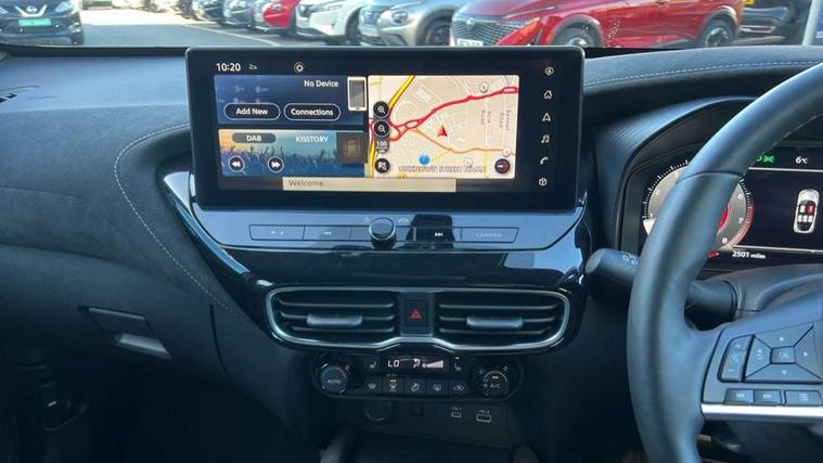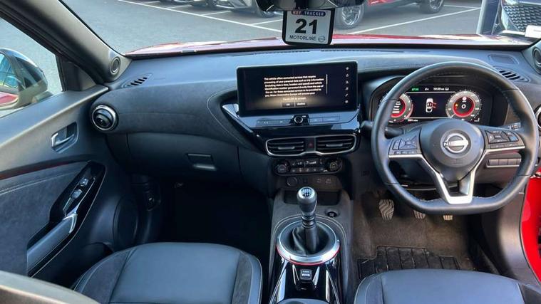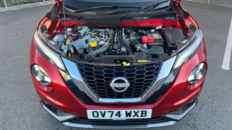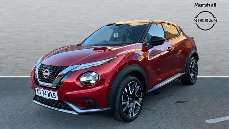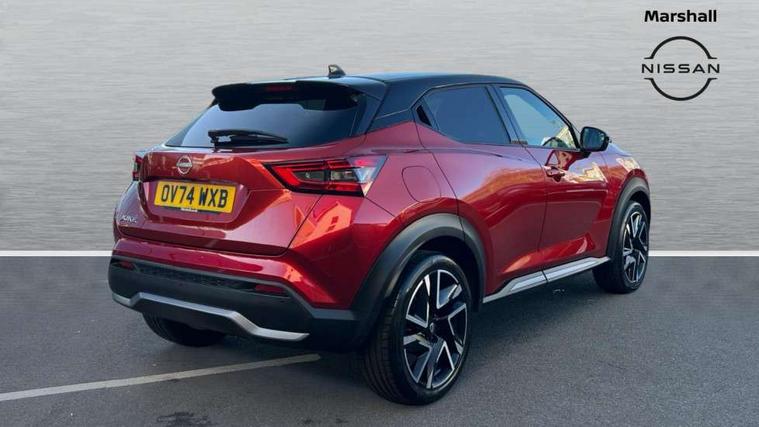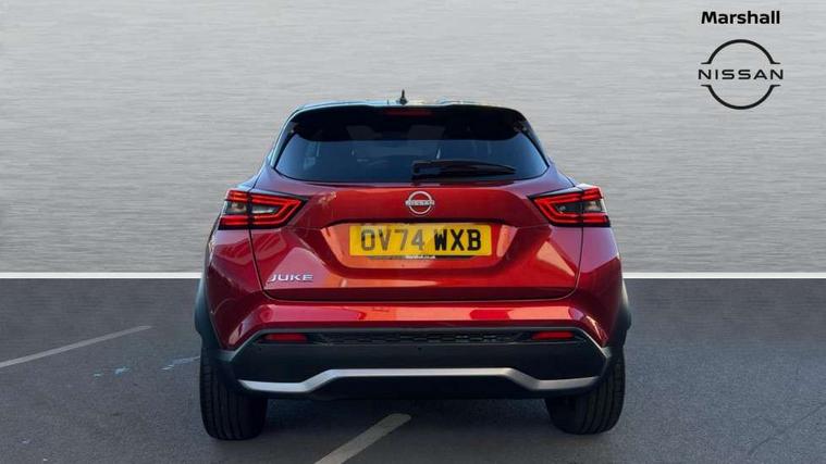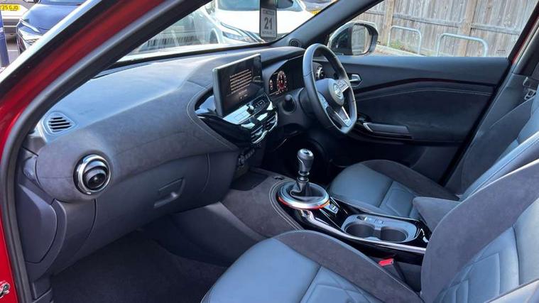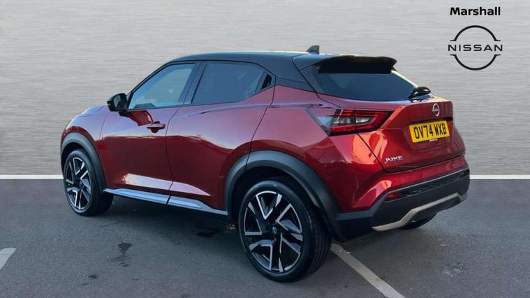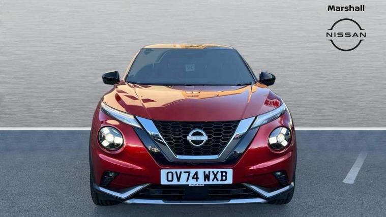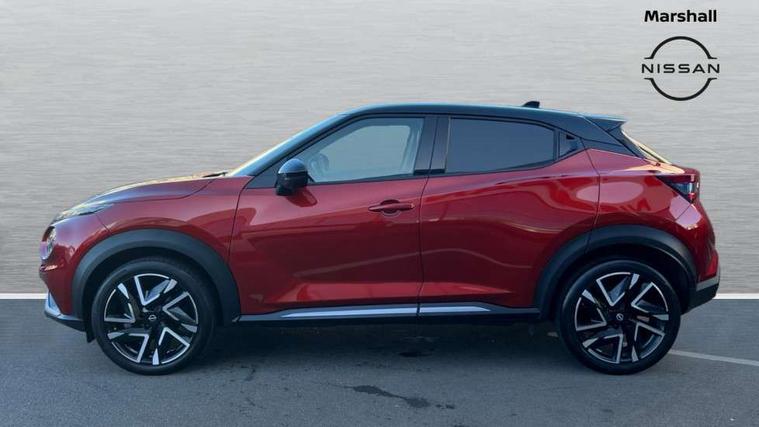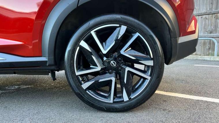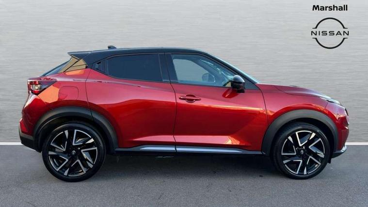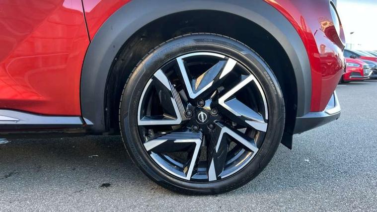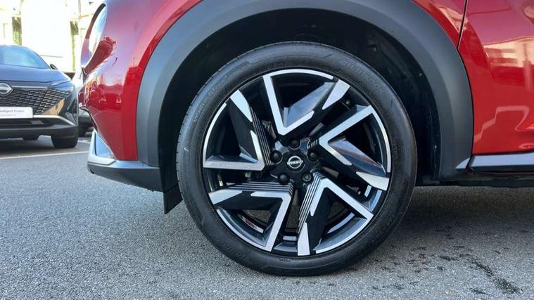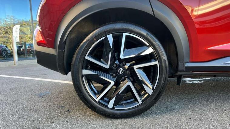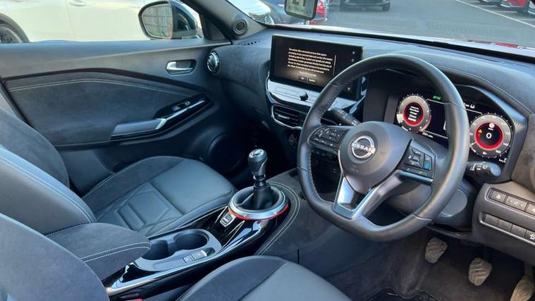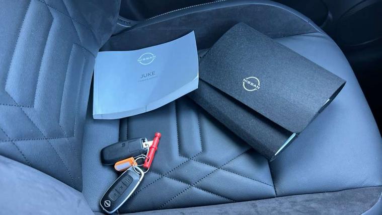 12.3" full colour TFT screen combimeter, Drive modes select (Eco, normal and sport), Emergency and breakdown call, Front parking sensor, Idle start/stop system, Intelligent driver alert system, Intelligent lane intervention, Lane departure warning system, Nissan connect 12.3" touch screen entertainment system, Nissan connect nav with TomTom traffic, Nissan connect services, Outside temperature sensor, Power Steering, Rear parking sensor, Stop/start button, Traffic sign recognition, Trip computer, Voice recognition, WiFi connectivity, Wireless Apple CarPlay and Google Android auto, Wireless Smartphone charger, 10 Bose speakers 6 speakers and 2 headrest speakers for driver/passenger seats, 2 X Rear console USB port, Bluetooth system, USB, Aux-in and 12V socket, Bose personal sound stage control, DAB Digital radio, Auto dimming frameless rear view mirror, Automatic hazard signal with emergency stop signal, Body colour door handles, Electrically adjustable door mirrors with integrated indicators, Follow me home headlights, Front and rear electric window with one touch driver window, Heated and auto folding door mirrors, High beam assist, LED 3rd brake light, LED daytime running lights, LED front fog lights, LED headlamps, LED rear fog lamp, LED rear lamps, One touch passenger window, Rain sensor windscreen wipers, Rear privacy glass, Rear side wing doors, Rear wiper, Roof spoiler, Shark fin roof antenna in solid Black, Three blink turn signal, 3 height adjustable rear headrests, 3 seat bench in 2nd row, 60/40 split folding rear seat, Automatic climate control, Card holder on driver sunvisor, Door ambient lighting, Driver seat back pocket, Driver side rear coat hanger, Driver/passenger sunvisors and vanity mirrors, Front and rear cabin lights, Front armrest, Front door pockets with bottle holders, Front head restraints, Front/rear passenger grab handles, Gear console ambient circle lighting, Height adjustable driver's seat, Internal chrome door handles, Leather gearshift knob, Luggage board, Luggage space lighting, Monoform sporty seats, Multifunction steering wheel, Passenger seat back pocket, Rear door bottle holders, Single front passenger seat, Smooth synthetic leather steering wheel, Synthetic leather kneepad, Telescopic steering wheel adjustment, Two cupholders in front centre console, Two rear isofix child seat anchorage points with top tether, Welcome light and console tray ambient lighting, Advanced safety shield pack - Juke Manual, Heat pack with height adjustable passenger seats - Juke, Interior personalisation pack - Juke, Satin grey exterior personalisation pack - Juke, ABS with EBD and brake assist, Active ride control, Active Trace Control, Driver and passenger airbags, Driver and passenger side airbags, Electric handbrake with auto hold function, Electronic Stability Programme (ESP), Front and rear curtain airbags, Height adjustable seatbelts, Hill start assist, Intelligent emergency braking with pedestrian and cyclist recognition, Rear door child safety locks, Seatbelt reminder for driver/front passenger and rear seats, Three 3 point rear seatbelts, Traction control, Tyre pressure monitoring system, VDC Dynamic Vehicle Control, Alarm, Immobiliser, Intelligent key and start push button with walk away lock and approach unlock functions, Remote central locking, 19" Alloy wheels with deep 3D effect, Tyre puncture repair kit,