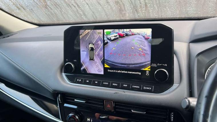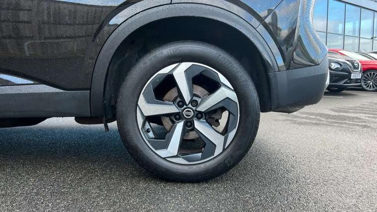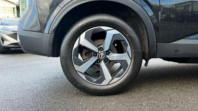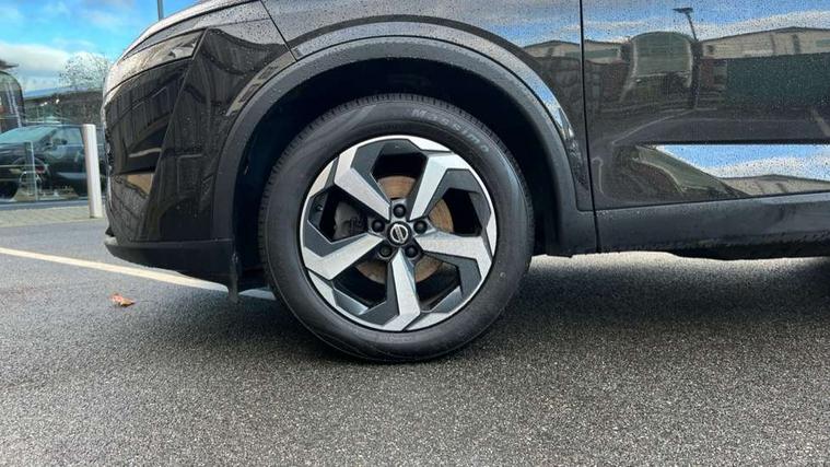 Android auto/Apple CarPlay (Wired), Blind spot warning, Drive modes (sport, normal, eco), Electric speed sensitive power steering, Emergency and breakdown call, Front and rear parking sensors, Full Digital 12.3" TFT Digital Combimeter, Google maps services - search, weather, 3D maps and Google street view, Idle stop/start system, Intelligent around view monitor, Intelligent Cruise control (ICC), Intelligent driver alert system, Intelligent forward collision warning, Intelligent lane intervention, Lane departure prevention, Lane departure warning system, Maximum speed limiter, Moving object detection, Nissan connect 12.3 inch touchscreen infotainment system, Nissan connect navigation, Push button starter, Rear cross traffic alert, Rear view camera, Remote control services - door locks, lights, horn and car locator, Telematics - notifications and connectivity services, TomTom live traffic services, Traffic sign recognition with legal speed adjustment, Trip computer, Virtual personal assistant and firmware over the air capability, Wireless apple carplay, 6 speakers, AM/FM audio system with DAB, Bluetooth audio streaming, Front USB connections (Type-A and Type-C), Rear USB charging only ports (Type-A and Type-C), Auto dimming rear view mirror, Auto rear wiper when reversing, Automatic hazard signal with emergency stop signal, Body colour mirror caps, Body coloured door handles, Bodyside mouldings, Chrome side window finisher, Door handle with button, Dusk sensor, Electric auto folding door mirrors, Electrically adjustable and heated door mirrors with LED turn indicator, Follow me home headlights, High beam assist, Intelligent auto headlights, LED daytime running lights, LED Headlights, LED rear lights, One touch front and rear electric windows with remote opening and closing, Partially body coloured bumpers, Privacy glass, Rear bumper with graphite insert, Rear reversing light (bulb lighting), Rear roof spoiler, Rear side wing doors, Rear styling plate, Shark fin antenna, Splash free rain sensing wipers, Super UV and infrared cut glass, Three blink turn signal, 12v power socket in dashboard and luggage, 2 way electrical driver lumbar adjustment, 2x Rear coat hooks, 3 bench rear seats in 2nd row, 3 rear headrests, 4 folding assist grip, 6 Luggage hooks - 4 on floor, 2 on side, 6-way manually adjustable driver's seat, 60/40 split folding rear seat bench, Ambient lighting around centre console, Centre console storage tray, Chrome interior door handles, Cloth monoform upholstery, Driver and front passenger sunvisors with illuminated vanity mirrors, Driver seat back pocket, Dual zone automatic climate control with pollen filter, Front and rear door storage, Front centre console and armrest, Front cupholders x 2, Front door with bottle holders, Glovebox with light, Hard trunk cover, Height adjustable front headrests, Height adjustable passenger seat, Leather shift knob, Leather steering wheel, Luggage board system, Luggage space lighting, Manually adjustable passenger (slide recline + lifter), Multifunction steering wheel, Passenger seat back pocket, Rear armrest with 2 cupholders, Rear door bottle holders, Single front passenger seat, Soft PVC kneepad, Steering wheel switches, Sunglasses holder, Tilt/telescopic adjustable steering wheel, Two rear isofix child seat anchorage points with top tether, Welcome light and console tray ambient lighting, 3x3 point rear seatbelt pretensioners + load limiters, ABS with EBD and brake assist, Active brake limited slip, Auto hold function, Child locks on rear doors, Curtain and front side, far side airbags, Driver and passenger airbags, Driver, passenger and 2nd row rear seat belt reminder, Electronic parking brake, Front seatbelt pretensioners + load limiters, Height adjustable front seatbelts, Hill start assist, Intelligent blind spot intervention, Intelligent front emergency braking with pedestrian, cyclist recognition and junction assist, Intelligent rear automatic braking, Tyre pressure monitoring system, Vehicle dynamic control, Capless fuel filler, Engine immobiliser, Nissan i-key, Remote central door locking with deadlocking, Thatcham Cat.1 alarm, Interior instrumental panel B finisher, 18" Diamond cut alloy wheels, Tyre puncture repair kit,