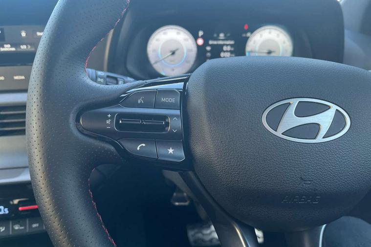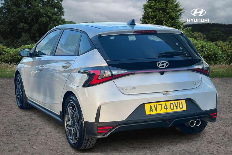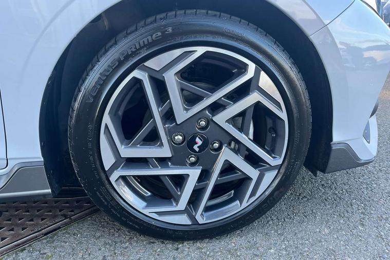 10.25" Touchscreen satellite navigation including mapcare and live services, 2nd Gen eCall, 8" Touchscreen DAB Radio with android auto and apple carplay, Apple car play/Android Auto, Driver's supervision instrument cluster with 10.25" LCD display, E-call, Forward collision assist with car, pedestrian and cycle detection, Front parking sensor, Intelligent speed assist, Lane follow assist, Lane keep assist, MAP OTA updates, PAS, Rear parking sensor, Rear view camera with dynamic guidelines, Wireless charging pad, Bose premium sound system, USB C and USB A ports in front, USB C Port in rear, Automatic defog system for front windscreen, Automatic dimming rear view mirror, Automatic headlights with dusk sensor, Automatic windscreen wipers, Body colour door handles, Electric front and rear windows, Front fog lights, Heated door mirrors with electric adjustment and power folding function, High beam assist, LED daytime running lights, LED Headlights, LED positioning lights, LED taillights, Privacy glass - Rear windows and tailgate, Rain sensor, Rear roof spoiler with integrated LED brake light, Rear side wing doors, Rear wiper, Repositioned flat metal hyundai emblem, Shark fin antenna, Windscreen with acoustic film, 3 seat bench in 2nd row, Adjustable head restraints, Air conditioning climate control, Automatic de-fog system for front windscreen, Cloth upholstery, Driver and passenger illuminated vanity mirrors with driver ticket holder, Floor mats, Front cup holder, Heated front seats, Heated steering wheel, Height adjustable driver's seat, Isofix, Leather wrapped steering wheel and gear knob, Luggage hooks, Multi colour ambient lighting, Rear Seats - Split Folding (60/40), Single front passenger seat, Sport metal pedals, Steering wheel remote controls, Tilt and telescopic steering wheel adjustment, 3x3 point rear seatbelts, Anti-lock brake system (ABS), Autonomous emergency braking, Child locks on rear doors, Driver and front passenger airbags, Rear seat alert, Side and Curtain airbags, Tyre pressure monitoring system, Immobiliser, Smart key with keyless entry and engine start/stop button, 17" N Line black alloy wheels, Tyre repair kit,