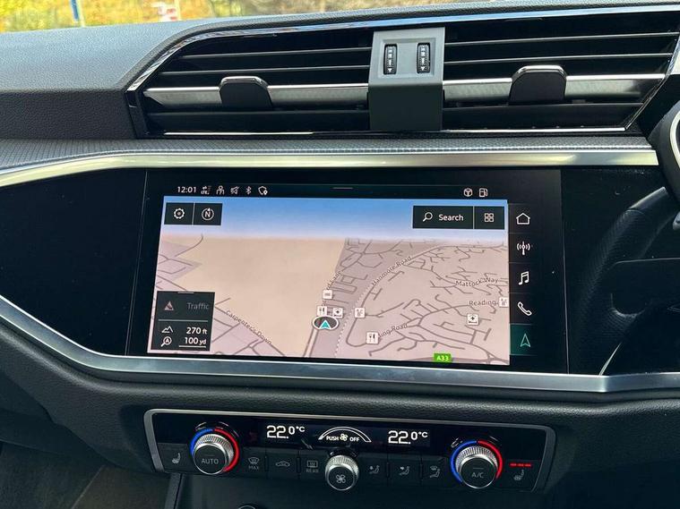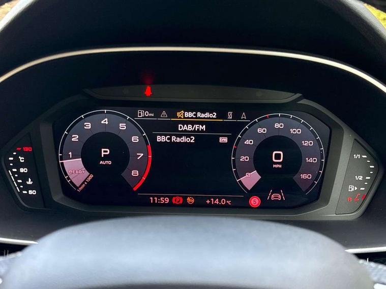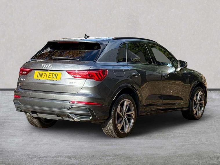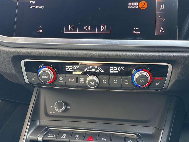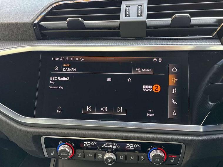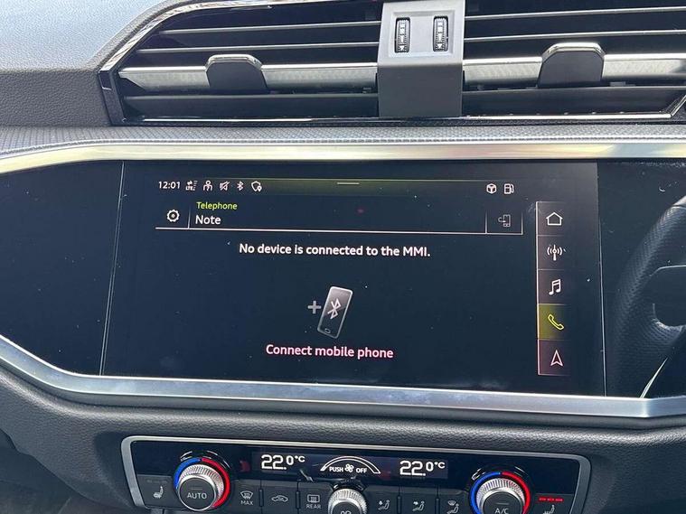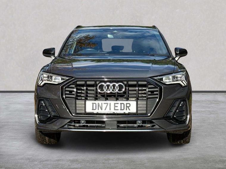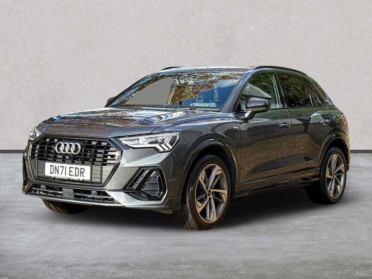Amazon alexa Integration, Audi connect safety and service (e-call), Audi drive select, Audi lane departure warning, Audi Virtual Cockpit - 10.25" display, Bluetooth interface, Camera based traffic sign recognition, Cruise control + speed limiter, MMI Navigation Plus with high resolution 10.1 inch touchscreen colour display, Power operated tailgate, Progressive steering, Rear parking sensors, Service interval indicator, Smartphone interface includes wireless Apple carplay/Android Auto, Start stop system with recuperation, Voice control system with natural language interaction, 48V Mild hybrid technology, Sports suspension, 2 USB-C ports with charge and data functions, 6 passive loudspeakers, DAB digital radio module, Acoustic windscreen, Auto dimming frameless rear view mirror, Black roof rails, Electrically folding, adjustable and heated door mirrors with integrated LED side indicators and kerb view function for passenger side, Front and rear electric windows, Front fog lights, Grille vertical bars in aluminium silver/Matt, High gloss black finish B and C pillars, LED headlights with LED daytime running lights and dynamic rear indicator, LED rear lights, Privacy glass dark tinted rear and rear-side windows (from B-pillar backwards), Rain and light sensors, Rear diffuser strip in matt titanium black, S line bumpers in contrasting Manhattan grey, 12V socket in rear centre console, 3 spoke flat bottomed high multi-function leather sport steering wheel with gearshift paddles, 40:20:40 folding with manual adjustment for 60:40 forwards/backwards position and backrest angle, Adjustable rear seat bench/backrest with centre armrest and cupholder, Black cloth headlining, Dual zone electronic climate control, Front and rear black floor mats with contrast stitching in rock grey, Front and rear headrests, Front and rear roof module including reading lights, Front centre armrest, Glove compartment lighting, Height and reach adjustable steering wheel, Illuminated door sill trims with S logo, ISOFIX child seat mounting for front passenger with airbag deactivation and outer rear seat including top tether attachment point for outer rear seats, Luggage compartment light, Manual front seats with height adjustment, Perforated leather gearknob, Stainless steel luggage compartment sill finisher, Stainless steel pedals, Black styling pack - Q3, Non smoking pack - Q3, 3x3 point rear seatbelts, 6 airbags - Driver, front passenger, curtain and side windows, Audi pre-sense front with pedestrain and cyclist recognition, Electrically operated child locks on rear doors, Electromechanical parking brake, Electronic stabilisation control including ABS, ASR and EDL, Hill descent control, Hill hold assist, Pre sense basic, Seatbelt monitoring, Tyre pressure warning, Warning triangle and first aid kit, Anti theft alarm, Anti theft wheel bolts, Remote central locking, Detail dashboard around MMI touch colour display in glass look, black with surround in aluminium look, Leatherette door armrest, Piano black inlay, Tool kit, Tyre repair kit,