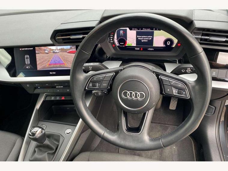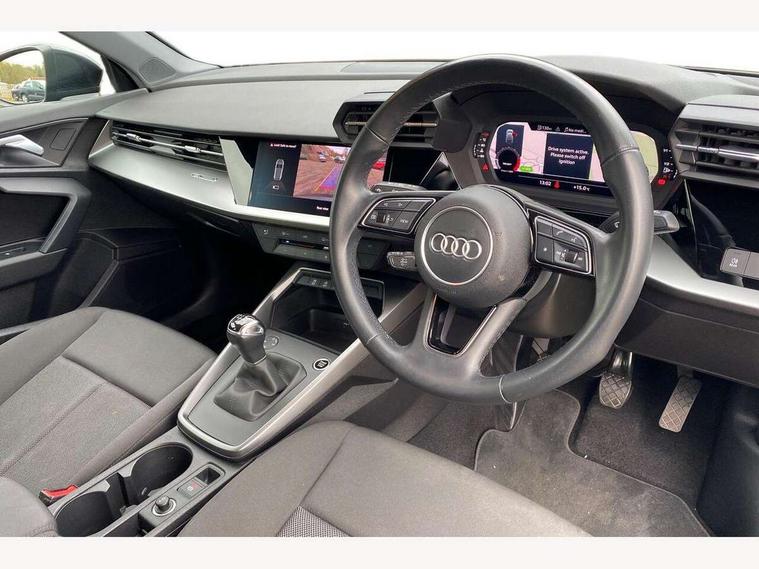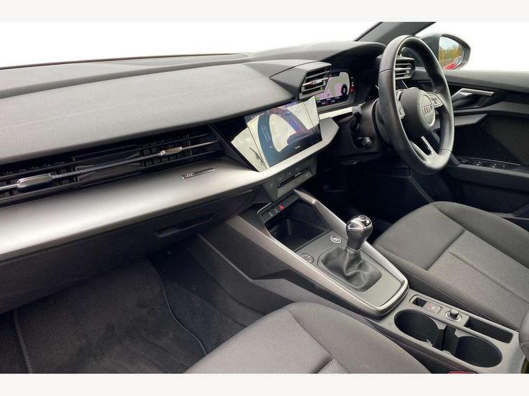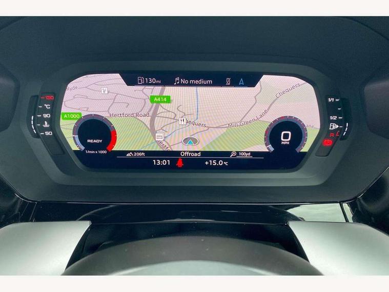 Audi smartphone interface, Audi Virtual Cockpit - 10.25" digital and colour instrument cluster, Automatic start/stop system with recuperation, Bluetooth interface, Collision avoidance assistant, Cruise control, e-Call (emergency call), Electromechanical power speed sensitive steering, Lane departure warning system, MMI Navigation Plus with high resolution 10.1" colour touch screen display, Rear parking sensors, Service indicator, Trip computer, Voice control system with natural language interaction, Standard suspension, 2xUSB-C connection with data and charging functions, 6 passive loudspeakers, DAB Digital radio, 3rd brake light, Acoustic glass windscreen, Auto dimming frameless rear view mirror, Body colour exterior mirrors, Body colour front spoiler blade, Body colour roof spoiler, Electrically adjustable/heated/folding/dimming door mirrors with kerb view includes integrated LED indications + kerb view function for passenger side, Front electric windows, LED daytime running lights, LED headlights and halogen rear lights, Light and rain sensors, Radiator grille and frame in grained matt black and honeycomb look, Rear diffuser in grained matt black, Rear electric windows, Rear side air outlets in grained matt black, Rear side wing doors, Rear window, rear door windows and rear side windows in clear glass, Rear wiper, Side air inlets in grained matt black, 12V socket and storage compartment in front centre console, 3 seat bench in 2nd row, 3 spoke leather multifunction steering wheel, 60/40 split folding rear seat, Front and rear headrests, Front centre armrest, Front/rear floor mats, Height and reach adjustable steering wheel, Interior lighting - Front and rear roof module including reading lights, glove compartment light and right hand side, Luggage compartment floor covering, Manual air conditioning, Manual boot compartment lid, Manually adjustable front seats, Seat side bolsters, Single front passenger seat, Steel grey cloth headlining, 3x3 point rear seat belts, Audi pre sense front, Driver and front passenger airbag with passenger airbag deactivation, Electronic Stabilisation Control (ESC) including ABS, ASR and EDL, First aid kit with warning triangle and 2 safety vests, Front side airbags with head airbags and interaction airbag, Hill hold assist, Pre-sense front with pedestrian and cyclist detection, Seatbelt monitoring, Tyre pressure loss indicator, Anti theft alarm, Anti-theft wheel bolts, Electronically operated child lock, Immobiliser, Remote control central locking, Black decorative window trim, Inlays with silk effect paint in platinum grey, 16" 5 double arm alloy wheels,