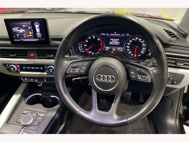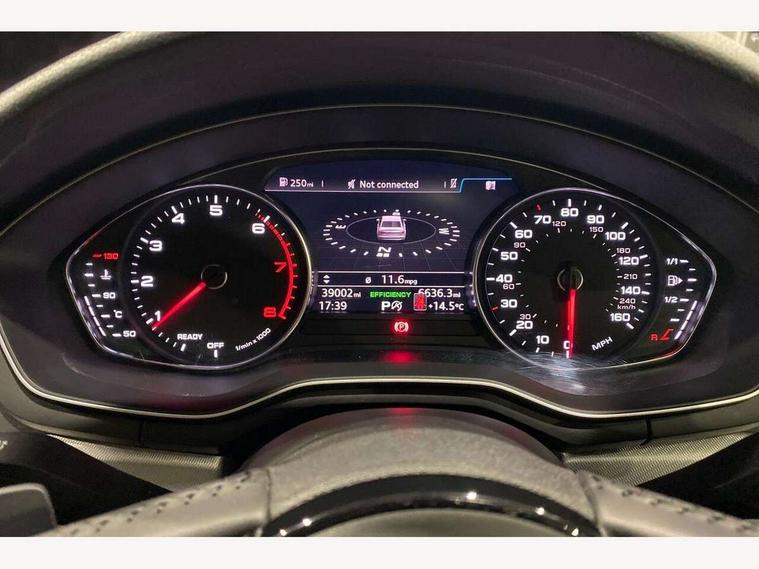 7" Colour driver information system, Audi connect safety and service (e-call), Audi drive select, Audi parking system plus with front and rear sensors, Audi Pre sense collision avoidance, Bluetooth interface, Driver information centre, Electric boot release, Electromechanical power steering, MMI SD card Navigation, Power boot opening and closing, Service interval indicator, Stop/start button, Voice control system, 54 litre fuel tank, 2 USB interfaces and Aux-In jack, DAB digital radio module, Acoustic windscreen, Air inlets in titan black with two horizontal inlays in chrome, Aluminium window trim, Auto dimming rear view mirror, Automatic headlights + automatic windscreen wipers, Body colour bumpers, Body colour door handles, Body colour door mirrors, Chrome diffuser clip, Chrome rolled exhaust, Chrome tailpipe finisher, Electric front windows, Electric rear windows, Headlight range control, High gloss black triangular aperture at rear door, LED indicators in door mirrors, Rain and light sensors, Rear diffuser in Twilight grey matt, Rear wiper, Twilight grey matt radiator grille with chrome inlay, 3 spoke high multi-function leather sports steering wheel with paddle shift, 3 zone climate control, 4 way electric lumbar support for driver and front passenger, 40/20/40 split folding rear seats with rear centre armrest, Aluminium door sill trims, Front centre armrest, Front headrests, Front/rear floor mats, Height and reach adjustable steering wheel with full size airbag, Isofix child seat preparation for front passenger/outer rear seats inc passenger airbag deactivation, Jack and tool kit, Luggage compartment carpet, Rear headrests, Sunvisors with vanity mirrors, Top tether anchor plate for isofix child seat, Non Smokers pack, 3 point seatbelts on all rear seats, Adaptive driver and front passenger airbags, Electromechanical parking brake, Electronic stabilisation control including ABS, ASR and EDL, Front head airbags, Front seatbelt pretensioners + load limiters, Front side airbags, Multi-Collision braking, Pop-up bonnet for pedestrian protection, Seatbelt warning, Traction control, Tyre pressure warning, Variable restraint system, Warning triangle and first aid kit, Anti theft alarm, Keyless Start, Locking wheel bolts, Remote central locking, Thatcham category 1 alarm + immobiliser, MMI radio plus with smartphone interface, Tyre repair kit,