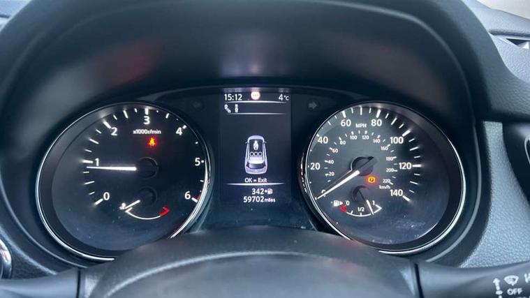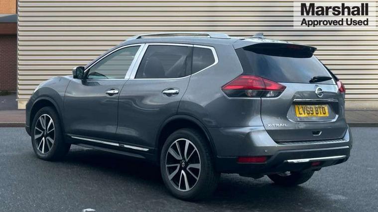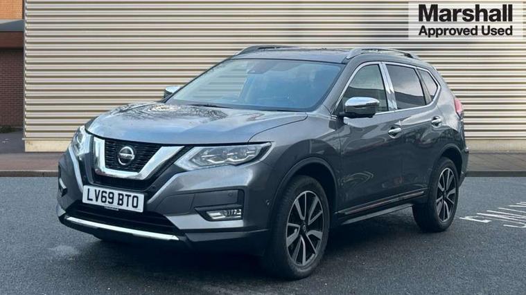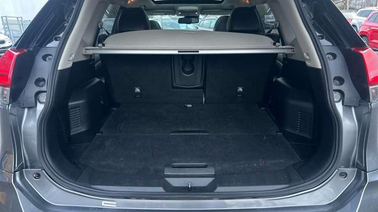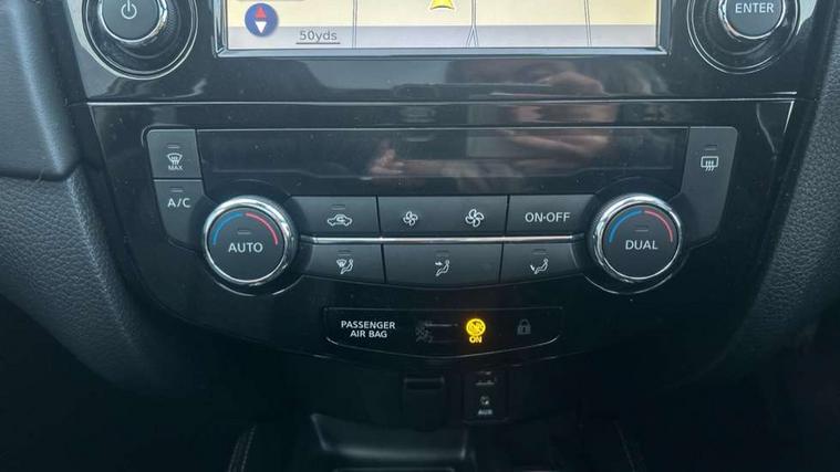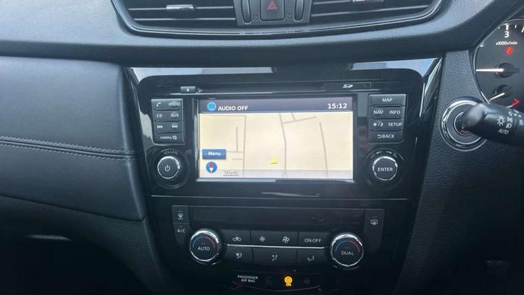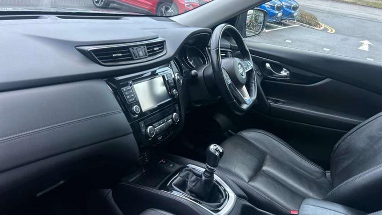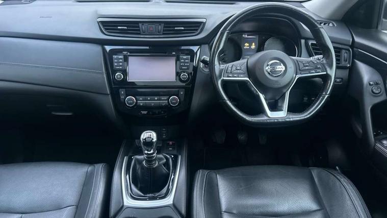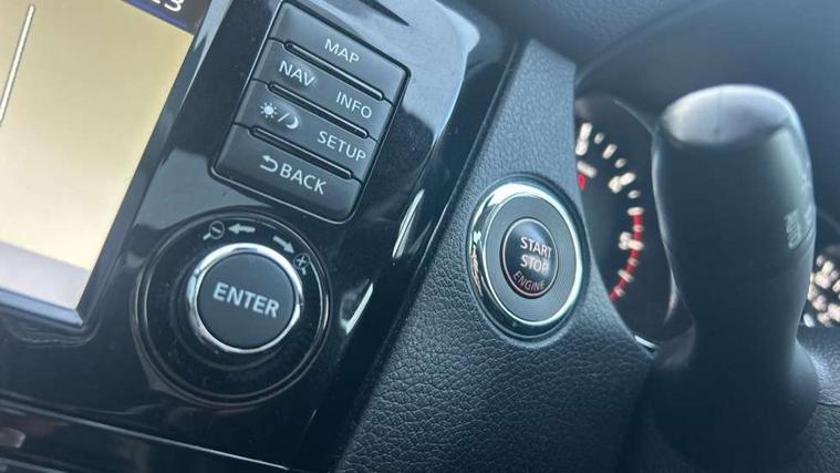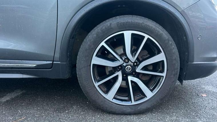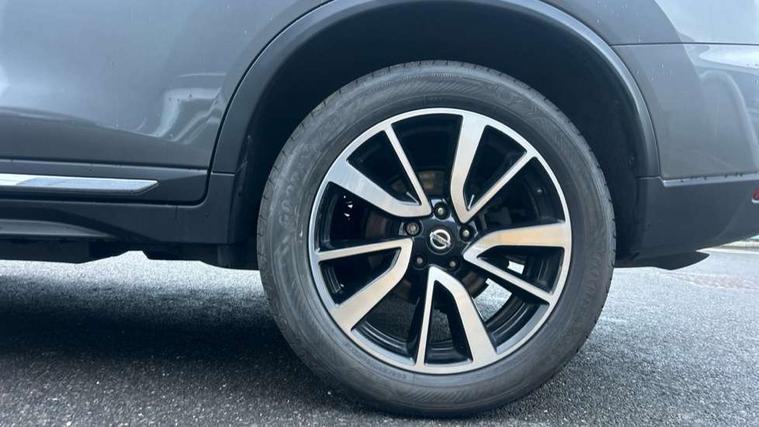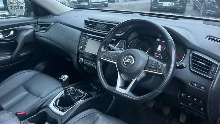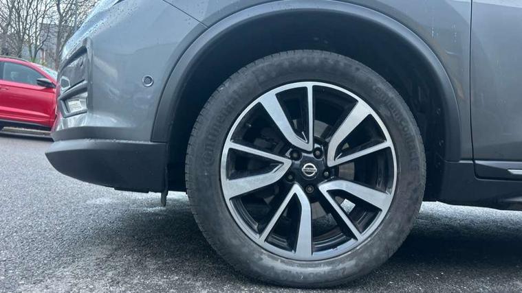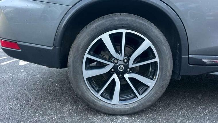 5" TFT driver information centre, Automatic tailgate opening, Blind spot monitoring, Bluetooth phone integration system, Cruise control + speed limiter, Driver attention alert system, Front and rear parking sensors, Intelligent around view monitor, Intelligent parking assist, Lane departure warning system, Moving object detection, Nissan connect evo 7" touchscreen navigation and entertainment system, PAS, Push button start, Stand still assist auto hold function, Traffic sign recognition, Trip computer, Nissan chassis control (intelligent ride control, intelligent trace control, intelligent engine brake), DAB Digital radio, Radio/CD, Smartphone apps, Steering wheel mounted audio controls, USB/aux input socket, Adaptive front lighting system, Anti dazzle rear view mirror, Automatic headlights, Automatic rain sensing wipers, Black honeycomb front grille, Body colour door mirrors, Chrome door handles, Chrome side mouldings, Chrome window surround, Electric folding door mirrors, Electric heated door mirrors, Front and rear electric windows, Front fog lights, LED daytime running lights, LED Headlights, Panoramic sunroof with one touch shade, Rear privacy glass, Satin silver roof rails, Shark fin roof aerial, 3 rear headrests, 60/40 split rear bench seat, Centre console storage box/armrest, Configurable luggage board system, Driver's electric lumbar adjustment, Dual zone climate control, Electric adjustable front seats including height adjust, Front and rear door pockets with bottle holders, Front cupholders, Front/rear armrests, Heated front seats, Heated rear seats, Height adjustable front headrests, Individual rear reading lights, Isofix child seat attachment, Leather D shaped steering wheel, Leather steering wheel and gear knob, Pollen filter, Tilt/telescopic adjustable steering wheel, 3 point seatbelts on all seats, 6 airbags - Driver, front passenger, curtain and side airbags, ABS, Child locks on rear doors, EBD + Brake Assist, Electric parking brake, ESP + traction control, Intelligent emergency braking with pedestrian recognition, Seatbelt warning, Tyre pressure monitoring system, Immobiliser, Intelligent Key, Remote central locking, Thatcham Cat.1 alarm, Full size spare wheel,