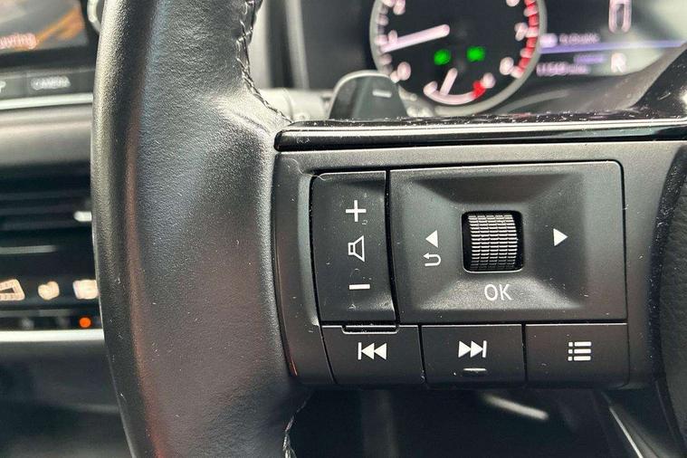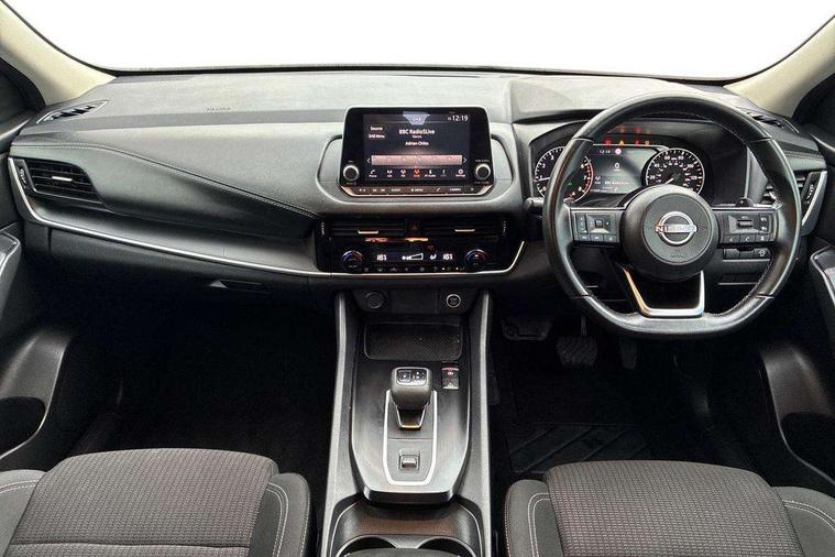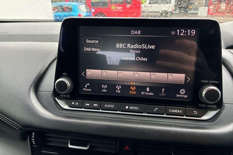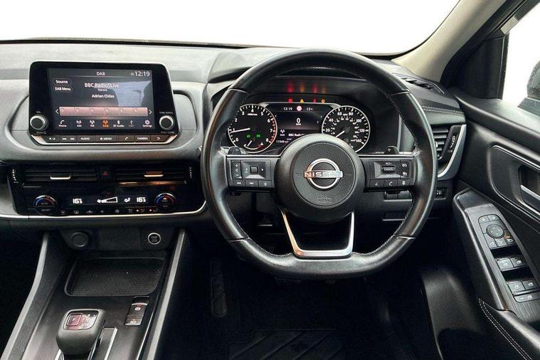 7" High definition full colour TFT screen combimeter, Android auto/Apple CarPlay (Wired), Blind spot warning, Drive modes (sport, normal, eco), Electric speed sensitive power steering, Emergency and breakdown call, Idle stop/start system, Intelligent Cruise control (ICC), Intelligent driver alert system, Intelligent forward collision warning, Intelligent lane intervention, Lane departure prevention, Lane departure warning system, Maximum speed limiter, Nissan connect 8" touchscreen infotainment system, Push button starter, Rear cross traffic alert, Rear parking sensors, Rear view camera, Traffic sign recognition with legal speed adjustment, Trip computer, 6 speakers, AM/FM audio system with DAB, Bluetooth audio streaming, Front USB connections (Type-A and Type-C), Auto dimming rear view mirror, Auto rear wiper when reversing, Automatic hazard signal with emergency stop signal, Body colour mirror caps, Body coloured door handles, Bodyside mouldings, Chrome side window finisher, Door handle with button, Electric auto folding door mirrors, Electrically adjustable and heated door mirrors with LED turn indicator, Follow me home headlights, High beam assist, Intelligent auto headlights, LED daytime running lights, LED Headlights, LED rear lights, One touch front and rear electric windows with remote opening and closing, Partially body coloured bumpers, Rear reversing light (bulb lighting), Rear roof spoiler, Rear side wing doors, Shark fin antenna, Splash free rain sensing wipers, Three blink turn signal, 12v power socket in dashboard and luggage, 2x Rear coat hooks, 3 bench rear seats in 2nd row, 3 rear headrests, 4 folding assist grip, 6-way manually adjustable driver's seat, 60/40 split folding rear seat bench, Centre console storage tray, Chrome interior door handles, Cloth monoform upholstery, Driver and front passenger sunvisors with illuminated vanity mirrors, Driver seat back pocket, Dual zone automatic climate control with pollen filter, Electrically adjustable lumbar support for driver, Front and rear door storage, Front centre console and armrest, Front cupholders x 2, Front door with bottle holders, Glovebox with light, Hard trunk cover, Height adjustable driver's seat, Height adjustable front headrests, Height adjustable passenger seat, Leather steering wheel, Luggage space lighting, Manually adjustable passenger (slide recline + lifter), Multifunction steering wheel, Passenger seat back pocket, Rear armrest with 2 cupholders, Rear door bottle holders, Single front passenger seat, Steering wheel gearshift paddles, Steering wheel switches, Sunglasses holder, Tilt/telescopic adjustable steering wheel, Two rear isofix child seat anchorage points with top tether, 3x3 point rear seatbelt pretensioners + load limiters, ABS with EBD and brake assist, Active brake limited slip, Auto hold function, Child locks on rear doors, Curtain and front side, far side airbags, Driver and passenger airbags, Driver, passenger and 2nd row rear seat belt reminder, Electronic parking brake, Front seatbelt pretensioners + load limiters, Height adjustable front seatbelts, Hill start assist, Intelligent blind spot intervention, Intelligent front emergency braking with pedestrian, cyclist recognition and junction assist, Intelligent rear automatic braking, Tyre pressure monitoring system, Vehicle dynamic control, Capless fuel filler, Engine immobiliser, Intelligent Key, Remote central door locking with deadlocking, Thatcham Cat.1 alarm, Interior instrumental panel A finisher, 17" Alloy wheels, Tyre puncture repair kit,