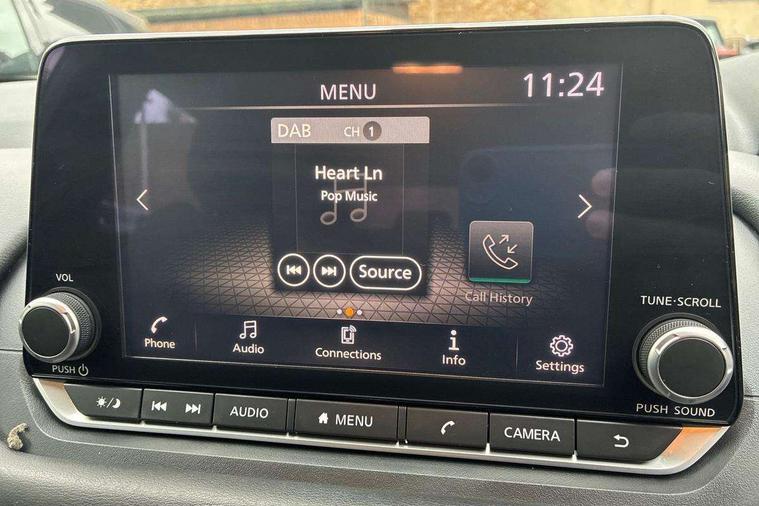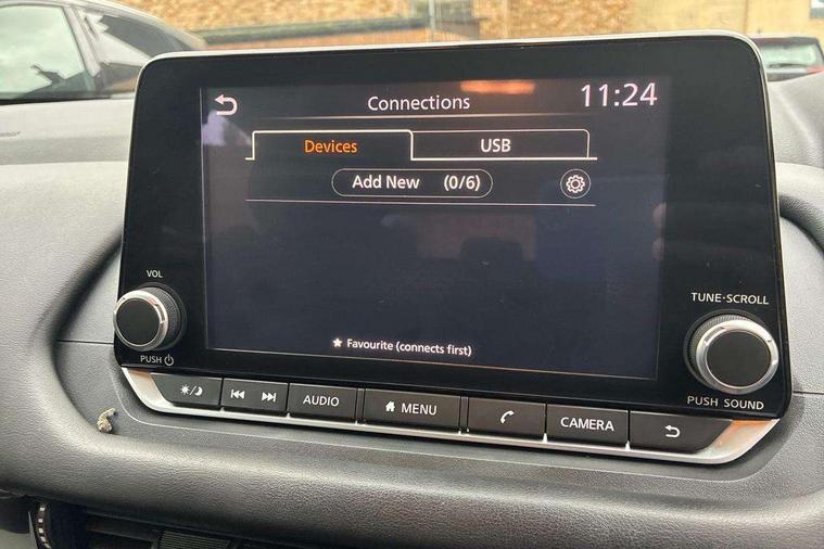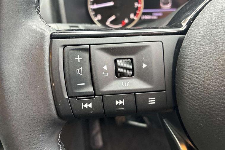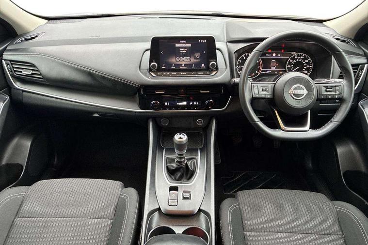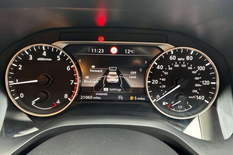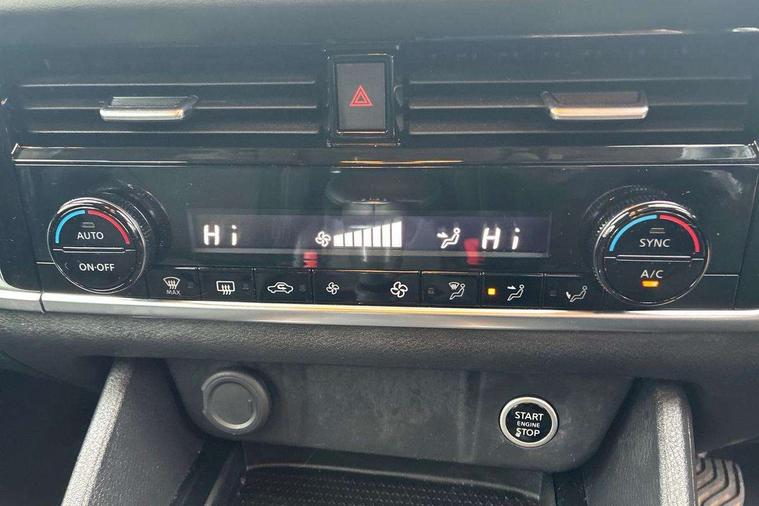 7" High definition full colour TFT screen combimeter, Android auto/Apple CarPlay (Wired), Blind spot warning, Drive modes (sport, normal, eco), Electric speed sensitive power steering, Emergency and breakdown call, Idle stop/start system, Intelligent Cruise control (ICC), Intelligent driver alert system, Intelligent forward collision warning, Intelligent lane intervention, Lane departure prevention, Lane departure warning system, Maximum speed limiter, Nissan connect 8" touchscreen infotainment system, Push button starter, Rear cross traffic alert, Rear parking sensors, Rear view camera, Traffic sign recognition with legal speed adjustment, Trip computer, 6 speakers, AM/FM audio system with DAB, Bluetooth audio streaming, Front USB connections (Type-A and Type-C), Auto dimming rear view mirror, Auto rear wiper when reversing, Automatic hazard signal with emergency stop signal, Body colour mirror caps, Body coloured door handles, Bodyside mouldings, Chrome side window finisher, Door handle with button, Electric auto folding door mirrors, Electrically adjustable and heated door mirrors with LED turn indicator, Follow me home headlights, High beam assist, Intelligent auto headlights, LED 3rd brake light, LED daytime running lights, LED Headlights, LED rear lights, One touch front and rear electric windows with remote opening and closing, Partially body coloured bumpers, Rear reversing light (bulb lighting), Rear roof spoiler, Rear side wing doors, Shark fin antenna, Splash free rain sensing wipers, Three blink turn signal, 12v power socket in dashboard and luggage, 2x Rear coat hooks, 3 bench rear seats in 2nd row, 3 rear headrests, 4 folding assist grip, 6-way manually adjustable driver's seat, 60/40 split folding rear seat bench, Centre console storage tray, Chrome interior door handles, Cloth monoform upholstery, Driver and front passenger sunvisors with illuminated vanity mirrors, Dual zone automatic climate control with pollen filter, Electrically adjustable lumbar support for driver, Front and rear door storage, Front centre console and armrest, Front cupholders x 2, Front door with bottle holders, Glovebox with light, Hard trunk cover, Height adjustable driver's seat, Height adjustable front headrests, Height adjustable passenger seat, Leather shift knob, Luggage space lighting, Manually adjustable passenger (slide recline + lifter), Multifunction steering wheel, Passenger seat back pocket, Rear armrest with 2 cupholders, Rear door bottle holders, Single front passenger seat, Steering wheel switches, Sunglasses holder, Tilt/telescopic adjustable steering wheel, Two rear isofix child seat anchorage points with top tether, 3x3 point rear seatbelt pretensioners + load limiters, ABS with EBD and brake assist, Active brake limited slip, Auto hold function, Child locks on rear doors, Curtain and front side, far side airbags, Driver and passenger airbags, Driver, passenger and 2nd row rear seat belt reminder, Electronic parking brake, Front seatbelt pretensioners + load limiters, Height adjustable front seatbelts, Hill start assist, Intelligent blind spot intervention, Intelligent front emergency braking with pedestrian, cyclist recognition and junction assist, Intelligent rear automatic braking, Tyre pressure monitoring system, Vehicle dynamic control, Capless fuel filler, Engine immobiliser, Intelligent Key, Remote central door locking with deadlocking, Thatcham Cat.1 alarm, Interior instrumental panel A finisher, 17" Alloy wheels, Tyre puncture repair kit,
