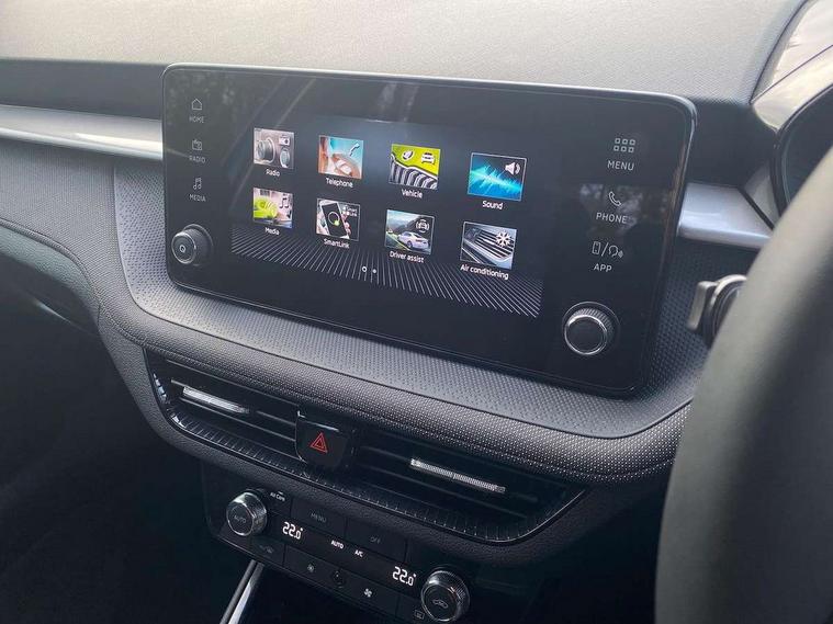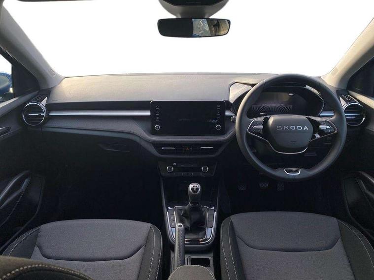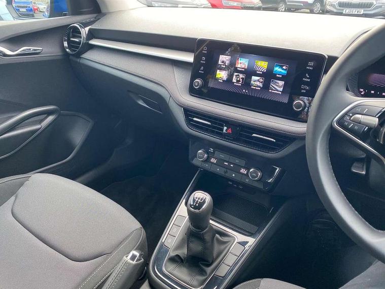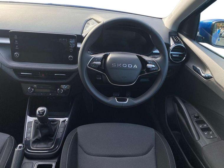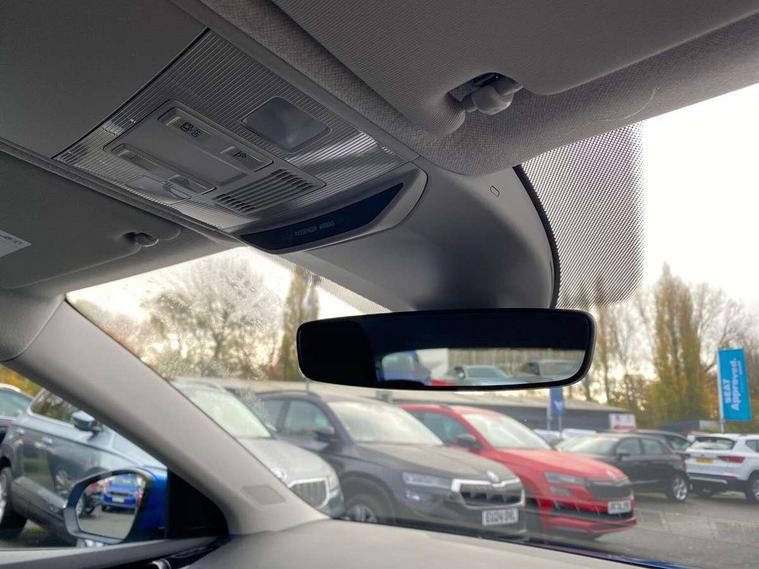 8" Digital instrument display, Advanced driver attention and drowsiness monitor, Bluetooth connection, Electromechanical power steering, Exterior temperature gauge, Service interval indicator, Traffic sign recognition, Wireless SmartLink for Apple CarPlay and Android Auto, 6 Speakers (4 in front and 2 in rear), 8.25" Skoda infotainment touchscreen display, Auxiliary socket for external MP3 player, DAB digital radio reception, Auto dimming rear view mirror, Body colour door mirrors, Body coloured bumpers, Door mirror integrated indicators, Front and rear electric windows, Front window wiper intermittent control, Headlight range control - Automatic, Ice scraper in fuel cap, LED 3rd brake light, LED daytime running lights with coming and leaving home feature, LED rear lights, Rear LED fog light, Rear side wing doors, Rear window wiper with washing nozzles, Roof mounted spoiler, SKODA tailgate lettering in chrome, Unique dark chrome design logo on alloy wheels, 2 reading lights in front and 2 reading lights in rear, 3 rear headrests, Backrest split and folding, Central console with removable cup holder and storage box, Chrome handbrake release button, Dual zone air conditioning with climatronic electronic control, Fabric upholstery, Front centre armrest, Gearshift knob/handle in leather, Grain satin black interior door handles, Hand brake lever handle in leather, Height adjustable front headrests, Height adjustable front seats, Height adjustable steering wheel, ISOFIX and TopTether anchorage points to the outer rear seats, ISOFIX and TopTether on the front passenger seat, Luggage compartment lighting, Manually adjustable lumbar support in front seats, Pollen filter, Rear seat bench unsplit, Single front passenger seat, Skoda lettering on steering wheel, Storm grey headlining, Sun visors with mirror and airbag label on passenger side, Textile floor mats, Ticket holder, Umbrella in drivers door, 3-point height adjustable front seats belts with pretensioner and force limiter, Automatic warning lights in case of crash, Driver and passengers airbag with switch off function, e-Call+, ESC including ABS, MSR, ASR, EDS, HBA and XDS, Front and rear seat belt warning, FRONT ASSIST (AEB City and AEB Inter Urban), Front side airbags, Head airbags, One tone horn, Pedestrian protection, Three rear 3-points safety seat belts with pretensioner and force limiter including stop function for outer rear seat belts, Tyre pressure monitoring system, Anti-theft alarm system including immobiliser, interior monitoring, backup horn, and towing protection, Central locking with radio remote control, interior controls, SAFE function and 2 foldable keys, Black painted air vents, Grain satin black central console cover, Metallic grey upper decorative trim, Satin black door and side trim panel in front, Textile Kota grey lower decorative inserts, Anti-theft wheel bolts protection, Super-low rolling resistance tyres,