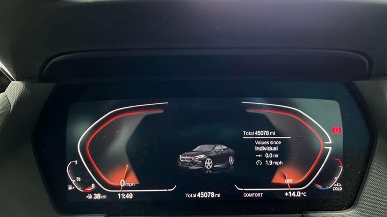 Active guard plus, Attentiveness assist, Auto start-stop, BMW Intelligent Personal Assistant, BMW Live Cockpit Professional with 10.25" high resolution instrument and control display, BMW Online services, BMW operating system with 7.0 mid interface, BMW Teleservices, Check Control warning system for monitoring of lights and door/luggage compartment open warning, Cruise control with braking function, iDrive controller with 7 short cut favourite buttons on centre console, Integrated navigation data with map data via USB +features such as 3D landmarks and micro city models, Integrated owners handbook, Intelligent voice assistant, Lane departure warning system, M Sports steering, On board computer - average speed+fuel consumption, service interval, clock/date, odometer/trip meter, outside temperature display and ice warning, Optimum shift indicator, Personal Profile, Pull away assistant, Speed limiting function, Aluminium lightweight construction, Balancer shaft, Double VANOS, Drive performance control with ECO PRO comfort + sport mode, Dual clutch automatic transmission, Electronic differential lock, High precision injection, M Sport suspension with stiffer spring/damper set-up and vehicle lowered by 10mm + twin tube gasfilled shock absorbers and Anti roll bars, Performance Control, Petrol Particulate Filter, VALVETRONIC engine management, 2x USB Type C ports (for charging and data transfer), 4G LTE Connectivity with hard wied 4G network sim card, DAB digital radio, MP3 players and RDS double tuner, Auto wipers, Automatic headlight beam throw control, Automatically dimming rear view mirror, Body colour door handles, Body colour mirror caps, Chrome 'M' logo side designation, Chrome exhaust single tailpipe, round, Direction indicator side lights integrated exterior mirrors, Electric windows - front and rear, with open/close fingertip control and trap release, Exterior mirrors - electrically folding with anti-dazzle, Fading support, Follow me home headlights, Front and rear bumper system with replaceable deformation elements, Front door sill finishers in black plastic with M designation in metallic look, Heated, electrically adjustable exterior mirror aspheric on driver side, convex on passenger side, High gloss black B pillar finish, High gloss shadow line exterior trim, High level third brake light, LED daytime running lights, LED front fog lights, LED Headlights, Lightweight engineering, Model designation on right side of tailgate, Preparation for high beam assistant, Rain sensor with automatic headlight activation, Rear boot, Rear fog lights, Rear side wing doors, Reversing light in rear light cluster, Welcome lighting, 12V power socket in centre console, 2 cupholders in front centre console, 3 rear seat head restraints, 3 rear seats, 3 spoke M sports design leather steering wheel finished in nappa leather with specific M badge, Anthracite finished floor mats with contrasting surround, Anthracite headlining, Automatic two zone climate control air conditioning, Child seat ISOFIX attachment for two outer rear seats and front passenger seat with anchorage points, Conditioned based service, Driver and front passenger seat heating, Front and rear door pockets including bottle trays, Front and rear side armrests integrated into door trim, Front armrest foldable with integrated storage compartment, Front centre interior light over interior mirror and rear centre automatic interior light when door is opened/ignition switched off or via remote key, Front head restraints, Front passenger seat, Front sports seats with electric side bolster adjustment, Glove compartment, Glovebox with light, Luggage compartment lighting, Manually adjustment steering wheel column, Multi-function controls for steering wheel, Sun visors with vanity mirrors and insert tab, Through loading system with 40/20/40 split folding rear seat, Two lashing eyes, Additional interior lighting pack - 2 Series Gran Coupe, Extended storage pack - 2 Series Gran Coupe, M Sport exterior styling aerodynamics pack - 2 Series Gran Coupe, 2 tone horn, Airbag - Front driver and passenger, front and rear head, front side, curtain head protection, manual deactivation of front passenger airbag possible, Anti lock braking system (ABS) with cornering brake control, BMW emergency call, Brake drying, Braking readiness, City braking function, Crash sensor activating of airbags, Unlocking doors, hazard warning lights, interior light, safety battery terminal, Dynamic stability control + (DSC+), Dynamic Traction Control - DTC, Electrically operated hand brake, Rear brake discs, Rear child proof door locks, Seat belt security check for driver and front passenger, Seatbelt warning, Side impact protection, Three point seat belts on all seats including front belt stopper, pyrotechnic belt tensioners and belt force limiters, Trailer stability control, Tyre pressure monitoring system, Ventilated front disc brakes, Warning triangle and first aid kit, Central locking switch for all doors, fuel filler cap and luggage compartment, Deadlocking function system to all doors, Drive away locking system on all doors and luggage compartment, Locking wheel bolts, Start/Stop button (illuminated) in centre console with keyless engine start and Auto Start-Stop deactivation button, Thatcham Cat.1 alarm and immobiliser, Two remote control key with integrated key - open/close doors/fuel flap/tailgate +1 button for unlock compartment with M design high gloss black inlay, Contrast stitching on instrument panel, 18" Burnished M double spoke bi-colour alloy wheels finished in orbit grey - style 819M, Reduced rolling resistance tyres,