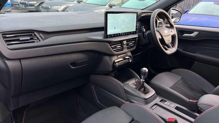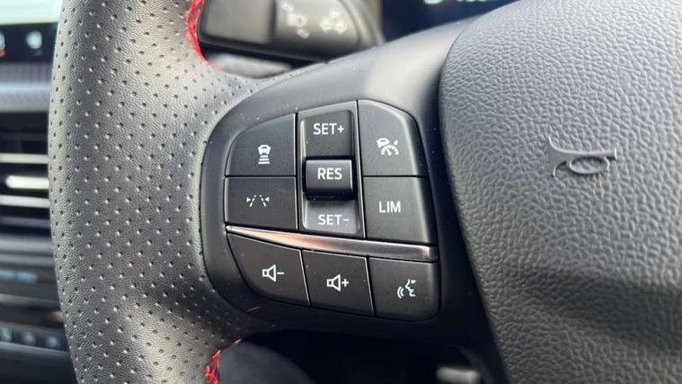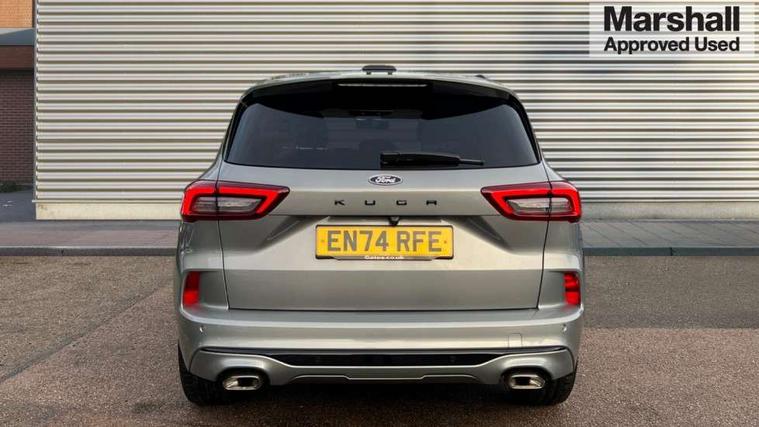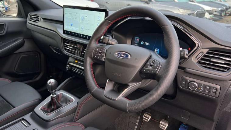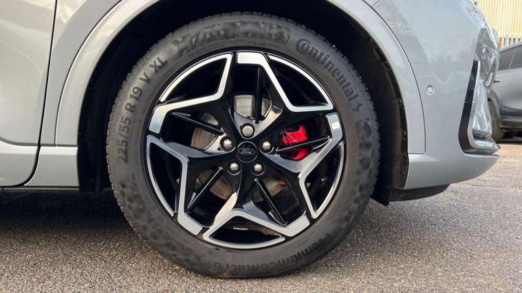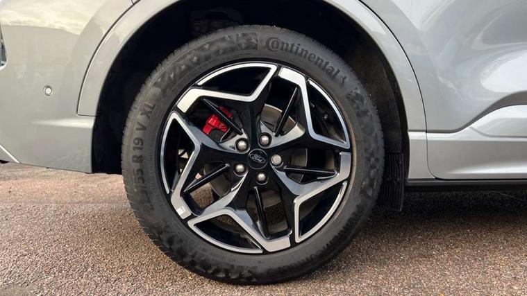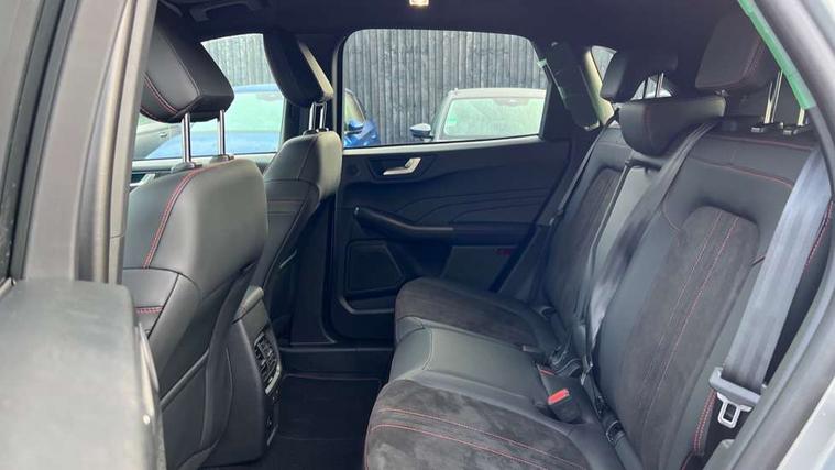 12.3" digital colour instrument cluster, 360 degree camera, e-Call (emergency call), Ford easy fuel, Ford SYNC 4 Navigation with 13" touchscreen, DAB radio, emergency assistance, Andriod Auto/Apple CarPlay, 5G modem & Ford Pass connect, Front and rear parking sensors, Hands free power tailgate, Lane keeping aid with lane departure warning, Power assist steering, Selectable drive modes, Service interval indicator, Sports suspension, Twist beam rear suspension, B&O premium audio system with 10 speakers, subwoofer and 2 USB ports, Auto headlamps with high and low beam, Black roof rails, Body colour bumpers, Front LED fog lamps, Large rear spoiler, LED daytime running lights, LED rear lights, Pop out door edge protectors, Power front/rear windows with global close, Power heated folding door mirrors with puddle lights, memory function and camera, Power opening panoramic roof, Quickclear heated windscreen, Rain sensing wipers, Rear privacy glass, Rear side wing doors, Rear wiper, ST-Line body styling kit, Third brake light, 12 way ergonomic power adjust driver's seat with memory (AGR certified), 12 way ergonomic power adjust passenger seat (AGR certified), 2nd row sliding seats, Electronic automatic temperature control (EATC), Front and rear head restraints, Partial premium touch sensico upholstery, Rear centre head restraint, Single front passenger seat, Sports seats, Driver assistance pack with intelligent adaptive cruise control - Kuga, Winter pack - Kuga, 3x3 point rear seatbelts, Airbags - front driver/passenger, front and rear curtain, Drivers knee airbag, Dynamic brake support, Electronic stability control (ESC) and ABS, Evasive steering assist, Ford MyKey Gen 2 safety system, Manual child proof rear door locks, Pre collision assist with autonomous emergency braking, Rear seat Occupancy alert, Red brake calipers, Tyre pressure monitoring system, Engine immobiliser, Keyless entry and Ford power start button (Keyless start), Locking wheel nuts, Remote powered central double locking doors, Thatcham category 1 alarm,