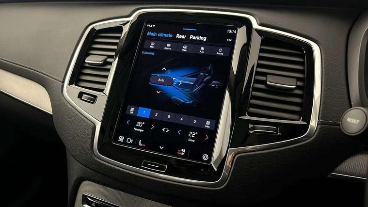 12.3" Progressive Driver Display, 360 degree surround view parking camera with side proximity sensors, 9" centre console portrait touch screen, Adjustable steering wheel force, Bluetooth hands free telephone connection, Driver alert control with lane keeping aid, Driver assistance (pilot assist and adaptive cruise control), Driver awareness - Blind spot information system with steer assist, cross traffic alert with autobrake and rear collision warning and mitigation, Emergency call service, Front and rear park assist, Google Automotive Services - Navigation with Voice recoginition and google assistant, Handsfree power tailgate opening and closing, Oncoming Lane Mitigation, Power operated tailgate, Service interval indicator, Speed limiter, Speed sensitive steering, Trip computer, Volvo on call, Wireless Mobile Phone Charger, 8 speed automatic transmission with start/stop + manual change functions, Touring chassis, DAB Radio (Digital Audio Broadcasting), Premium Sound by Harman Kardon, dirac unison, dolby pro logic II surround sound, 13 speakers/600W output and fresh air subwoofer, Steering wheel remote infotainment controls, Active bending headlights with adaptive shadow technology, Adaptive brake lights with high level LED brake lights, Auto dimming interior + exterior mirrors, Auto folding and heated power door mirrors, Automatic headlight levelling system, Automatic LED Headlights + Active high beam incorporating daytime running lights, Body colour bumpers, Front and rear power windows, Headlight cleaning system, Heated front windscreen, High gloss black door mirrors and window surround, High gloss black front and rear bumper deco, High gloss black mesh front grille with surround, Home safe and approach lighting, Integrated roof rails in high gloss black, LED front fog lights with cornering light function, Power glass tilt and slide panoramic sunroof with sun curtain, Puddle lights, Rain sensor with automatic windscreen wiper activation, Rear side wing doors, Rear wash/wipe with intermittent wipe setting, Roof antenna, Roof spoiler, Visible VIN plate, 12V socket front tunnel console, rear passenger compartment and cargo area, 2 seat bench in 3rd row, 2nd Row centre armrest with and cupholders, 3 seat bench in 2nd row, 4 zone electronic climate control with Clean zone air quality system + pollen filter, A-pillar parking ticket holder, Advanced interior air cleaner PM2.5, Air conditioning for 3rd row of seats, Ambient door and instrument panel lighting, B Pillar ventilation, Bright metal luggage threshold, Centre console cupholders and storage, Floor mats, Front and rear door pocket and front cupholder illumination, Front and rear reading lights, Theatre lighting and centre armrest storage illumination, Front footwell and side step illumination, Front headrests, Front seat cushion extensions, Heated front seats, Heated rear seats, Heated steering wheel, Height/reach adjustable steering column, Illuminated front and rear tread plates, Illuminated luggage compartment, Illuminated tailgate, Illuminated vanity mirrors + ticket holder, Illumination lockable glovebox compartment, Integrated sun curtains in rear doors, Isofix outer rear child seat preparation in 2nd row, Load protection net, Luggage compartment divider with grocery bag holder, Outboard armrest with cupholder and storage for third row passengers, Power driver seat with multi directional lumbar support and memory for seat and exterior mirrors, Power folding 2nd row headrests, Power passenger seat with multi directional lumbar support and memory, Rear footwell and side step illumination, Rear headrests, Semi automatic load cover, Single front passenger seat, Underfloor luggage compartment storage, 7 three point seatbelts, City safety with steering support includes pedestrian, cyclist and large animal detection and front collision warning with full auto brake, Drivers knee airbag, Dual stage driver/passenger airbags, First aid kit, Front seats SIPS airbags, Hill descent control - off drive mode, Hill start assist, IC (Inflatable Curtains) - Full Length, Passenger airbag cut-off switch, Power child locks on rear doors, Power parking brake with auto hold function, Road sign information display, Run off Road Mitigation, Run off Road Protection, Seatbelt reminder and pretensioners for all seats, SIPS (Side Impact Protection System), Slippery road and hazard light alert, Stability and Traction Control with Spin control, Engine Drag Control and Corner Traction Control, Tyre pressure monitoring system, Vehicle deceleration control with Anti-lock Brake System, Electronic Brake Distribution and Emergency Brake Assist, Warning triangle, WHIPS whiplash protection system - front, Anti-theft alarm including immobiliser/volume sensor + level sensor, Care key with user defined top speed, Key integrated remote control central locking + fuel flap with deadlocking system and auto open/close power windows, Keyless drive includes keyless entry and keyless start, Locking wheel nuts, Private locking for glovebox and tailgate, Tailored Instrument Panel and Door Tops with Contrast Stitching, Tempa spare wheel and jack,